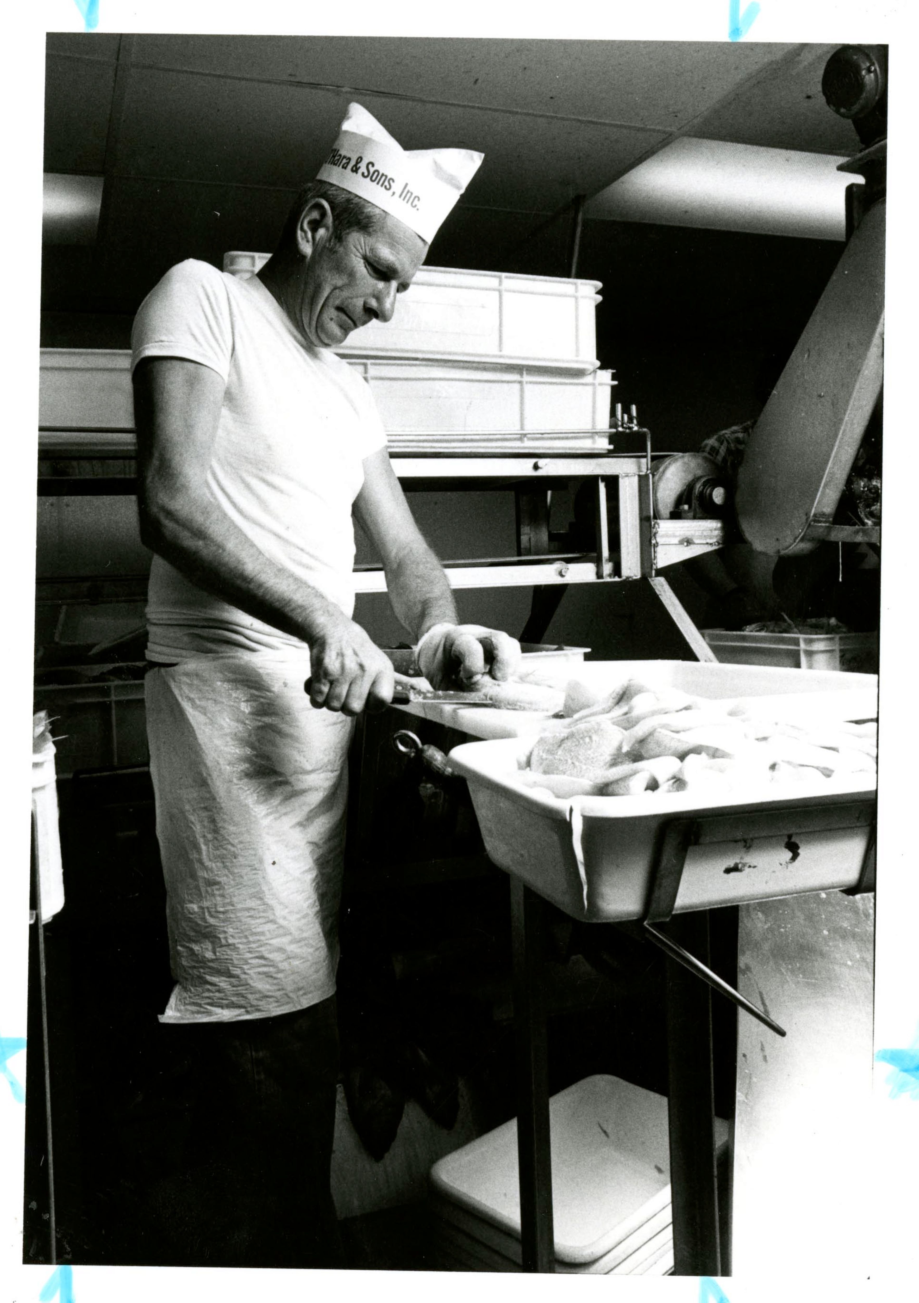 Lynn Kippax Jr. captures photographs of Norman Collins, a workers at O'Hara Fish Corporation.