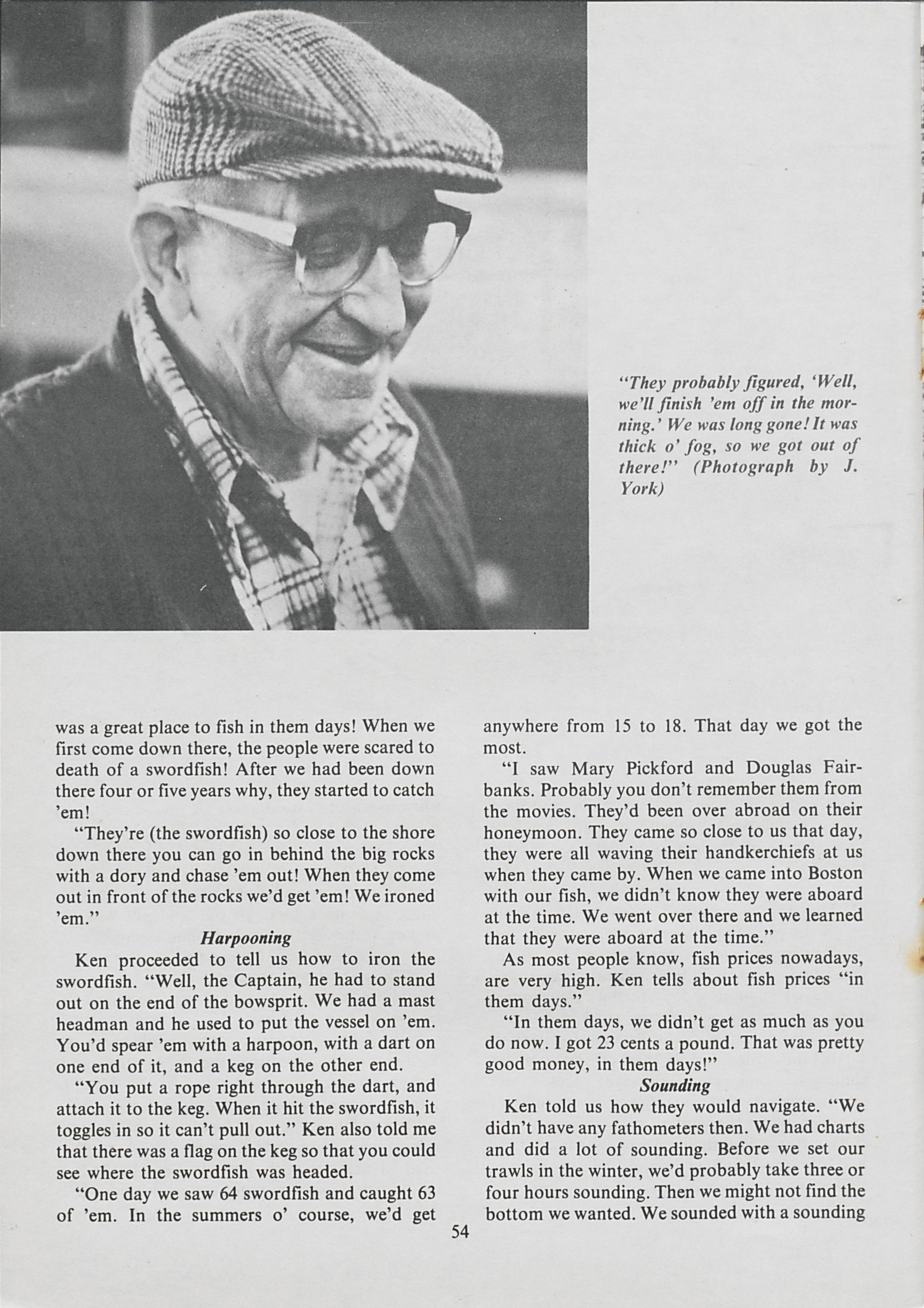 As a fisherman who sailed off of sailing vessels in the early 1900's, Kenneth Hutchins has many stories about the old days of fishing. Fran Ober speaks to Hutchins about his experiences sailing in the early 1900's.