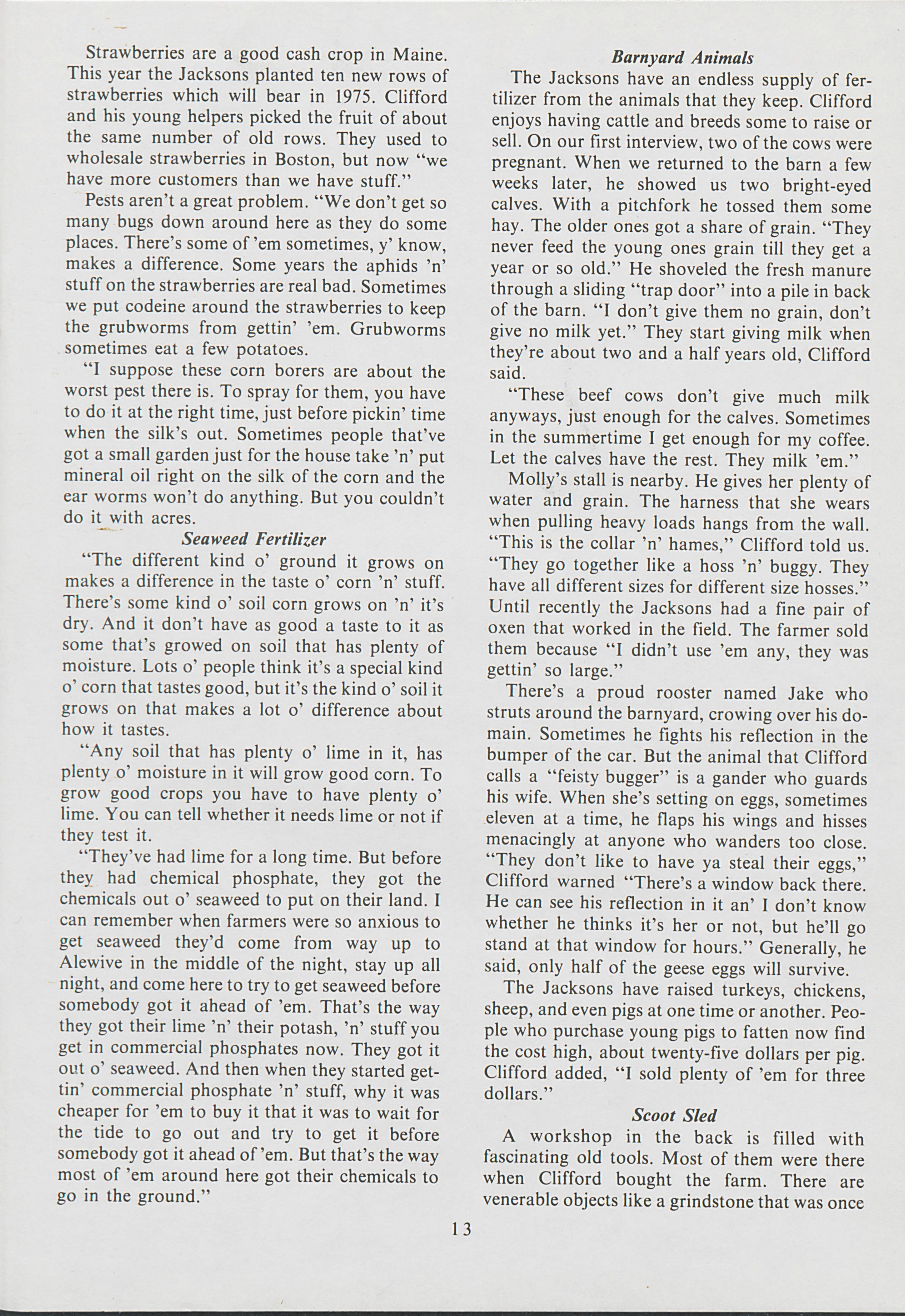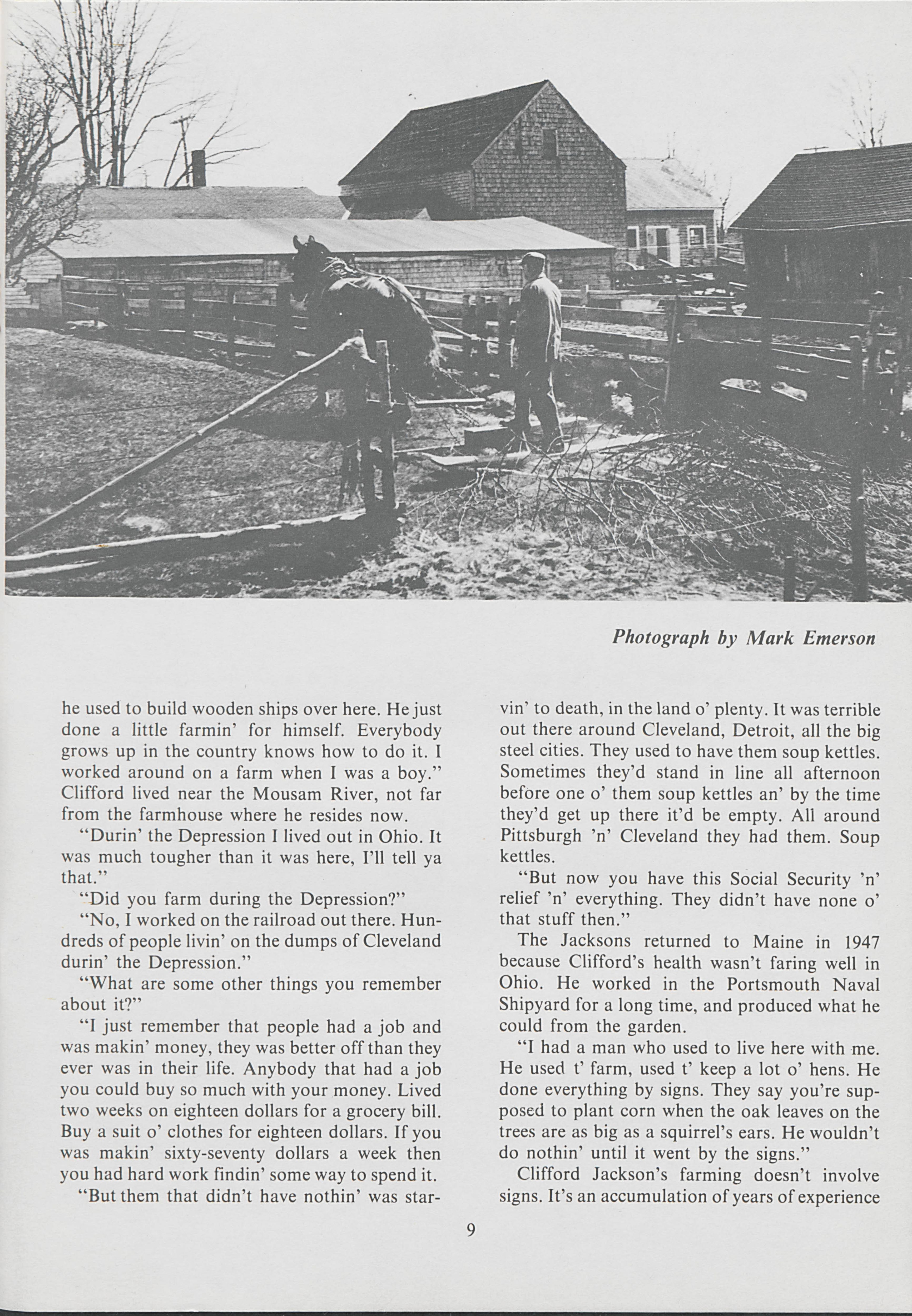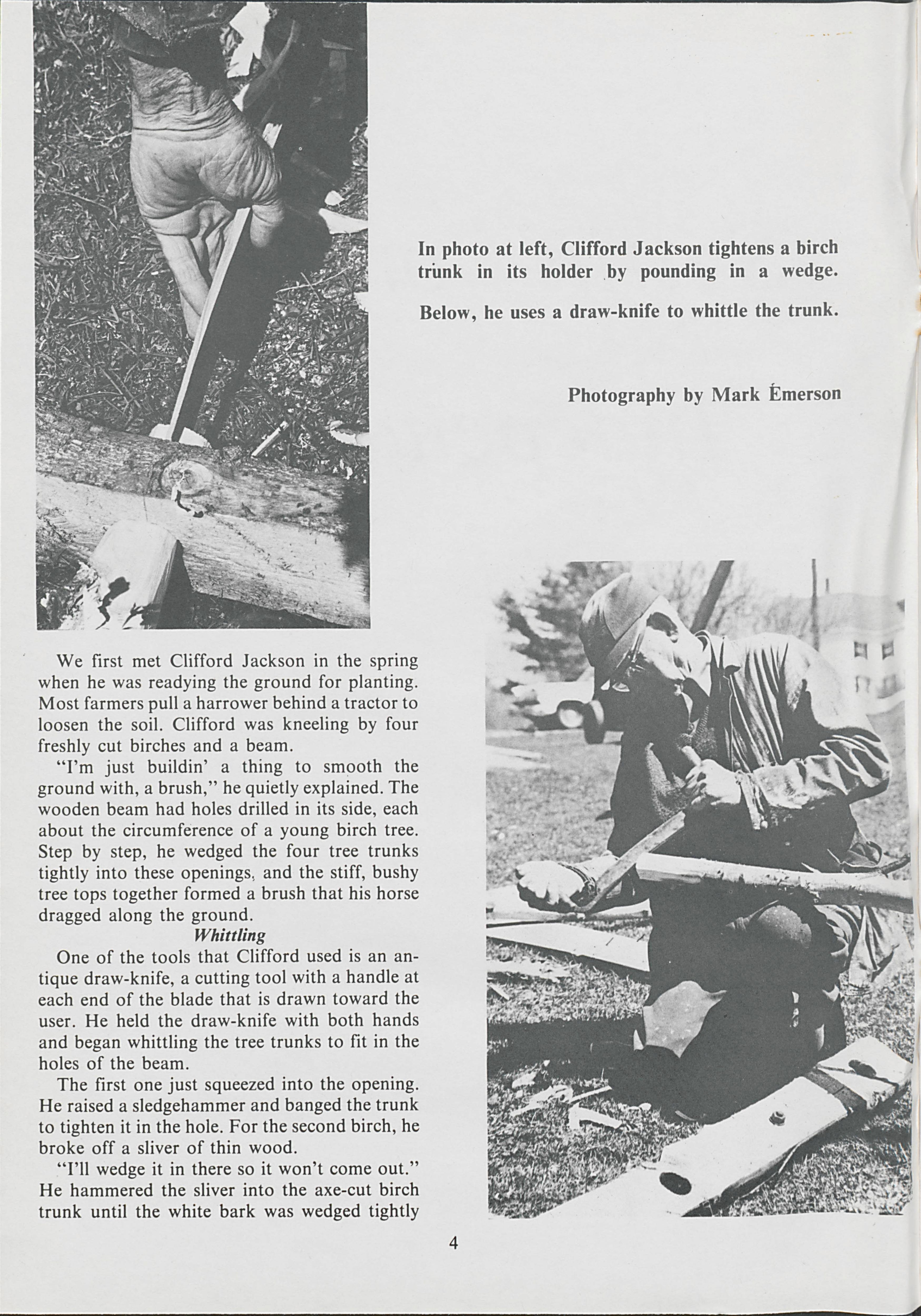 Following a tradition of farm work before mechanized farming, Clifford and Belle Jackson continue to farm the old way. Kim Lovejoy documents the activities that the Jackson's perform on their farm to retain old farming habits.