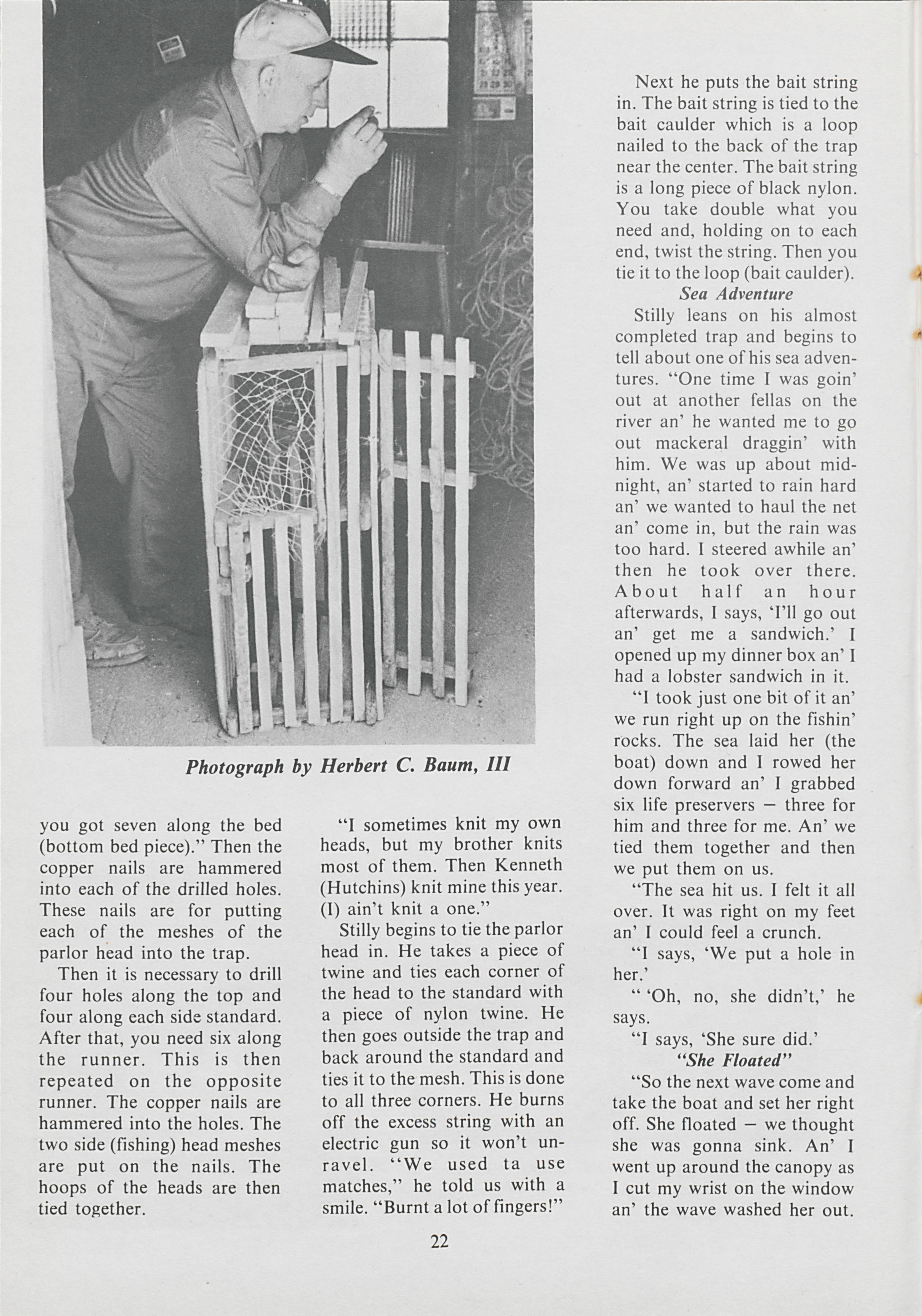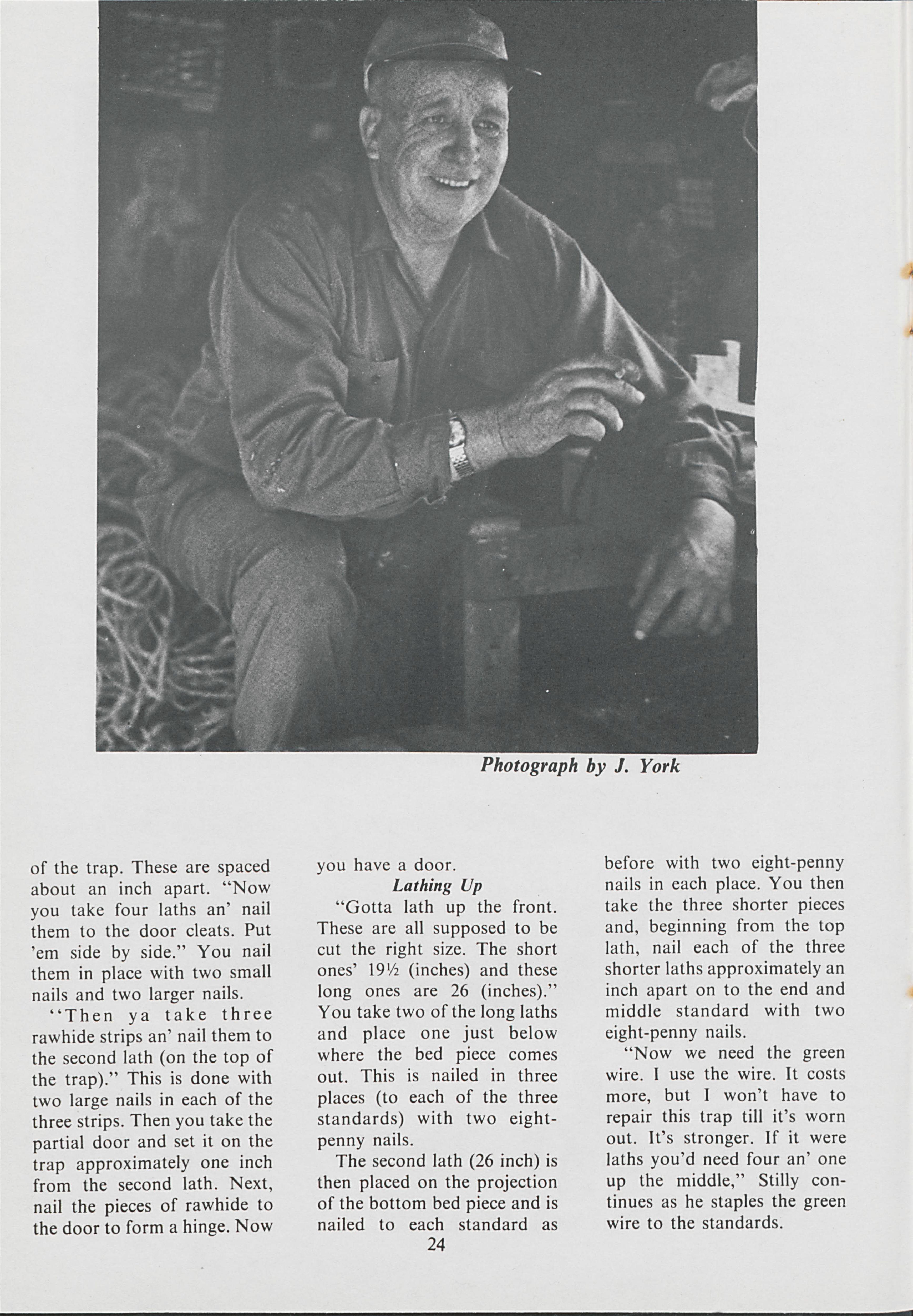 Crafting a lobster trap requires precision, as demonstrated by Stilly Griffin. Elizabeth Tanner speaks to Griffin about the proper way to make lobster traps.