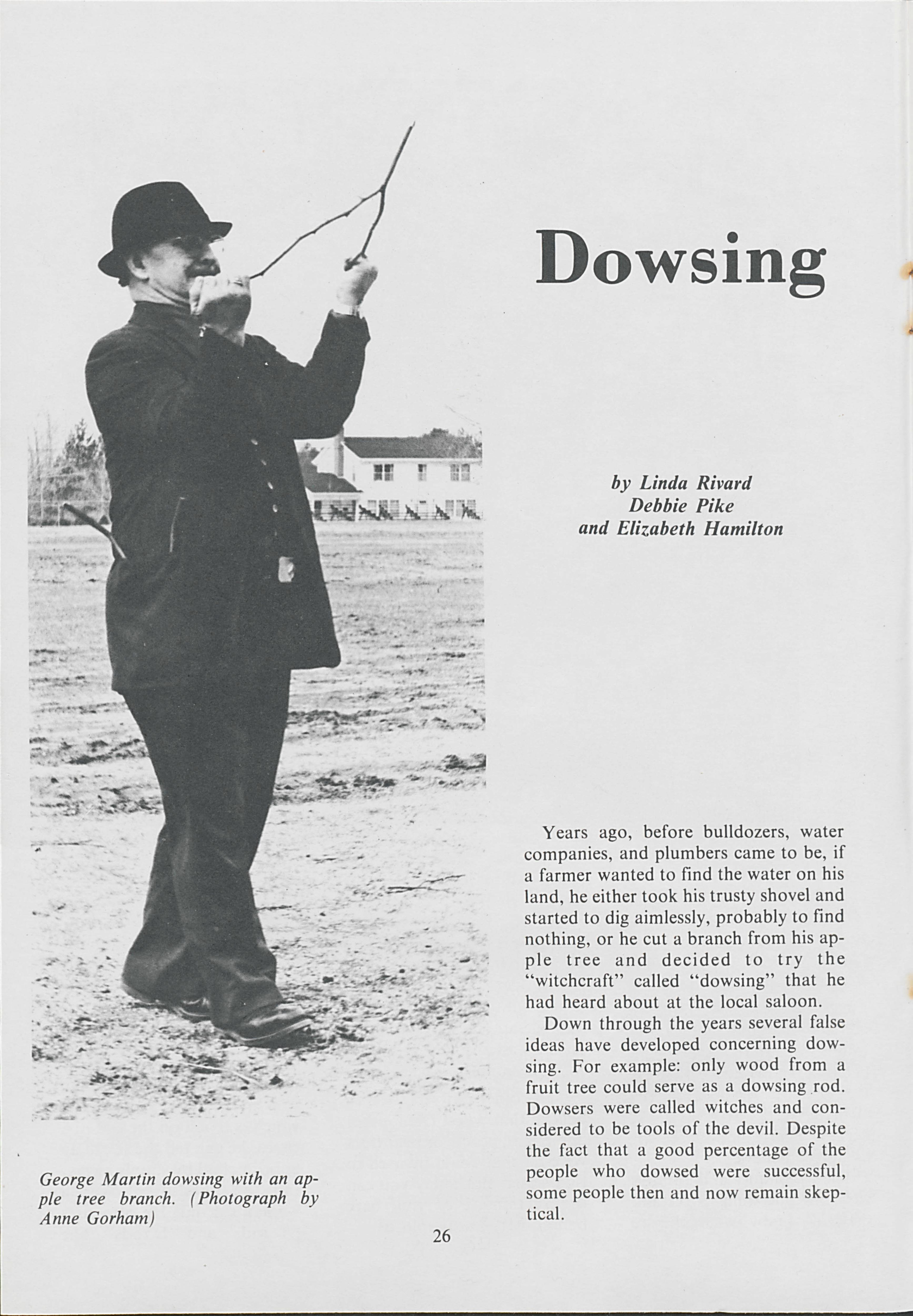 Years before bulldozers and water companies, individuals would perform the act of dowsing in order to find water underground. Linda Rivard and others speak to dowsers to learn about their craft and the other things dowsers can read.