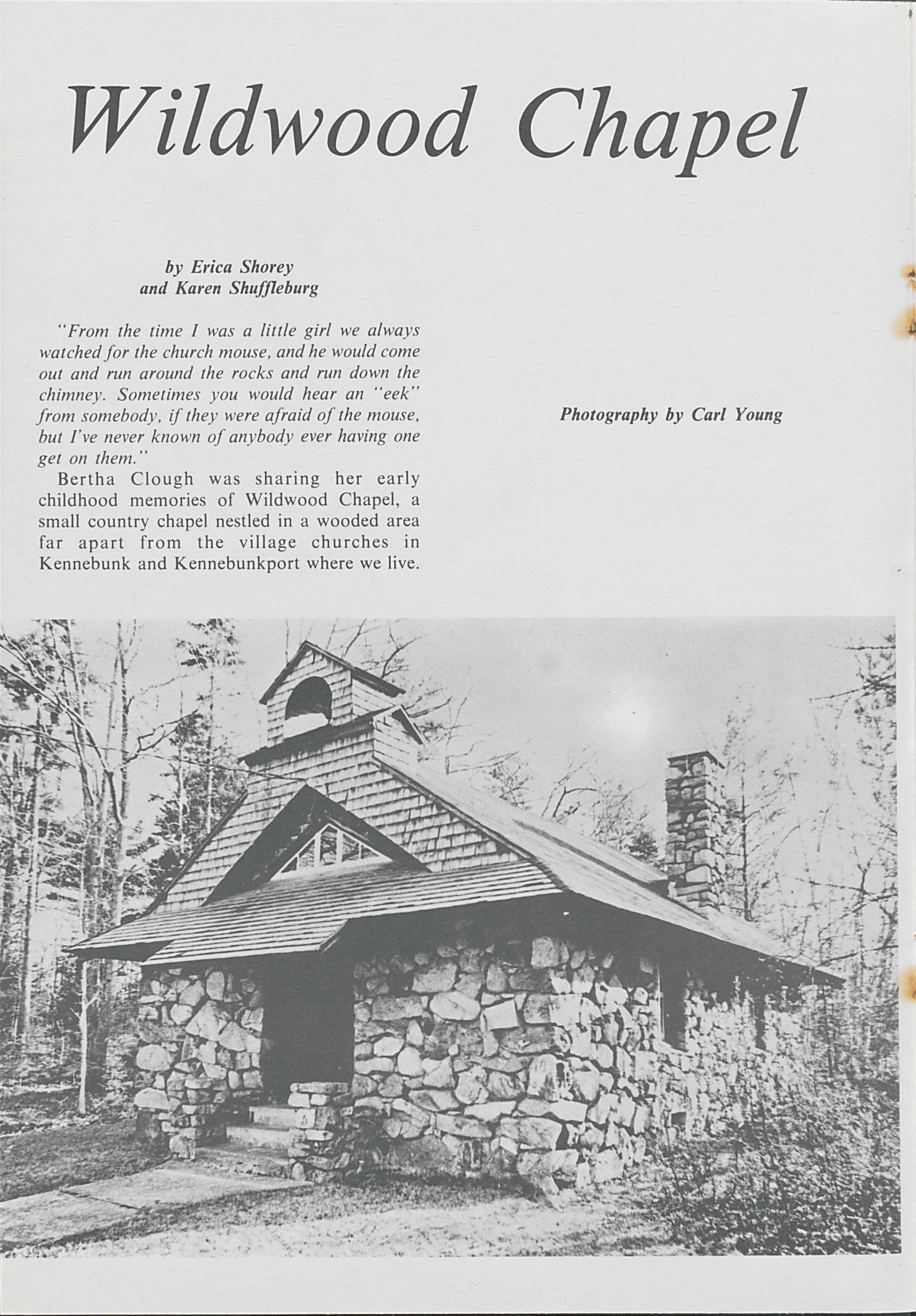 In a wooded area far apart from the village churches in Kennebunk and Kennebunkport, the Wildwood Chapel resides. Erica Shorey and Karen Shuffleburg speak to individuals in the church community about their experiences at the chapel.