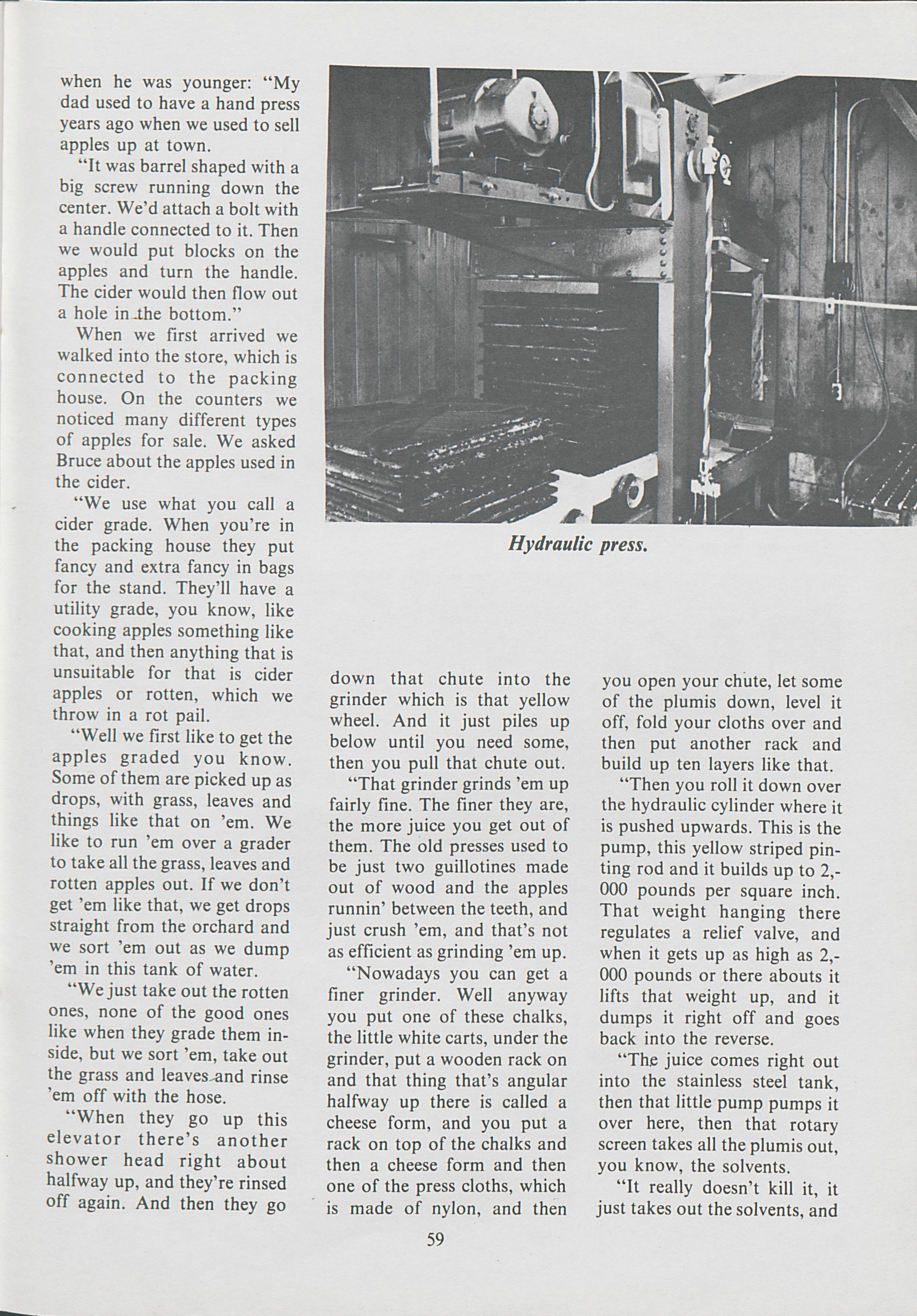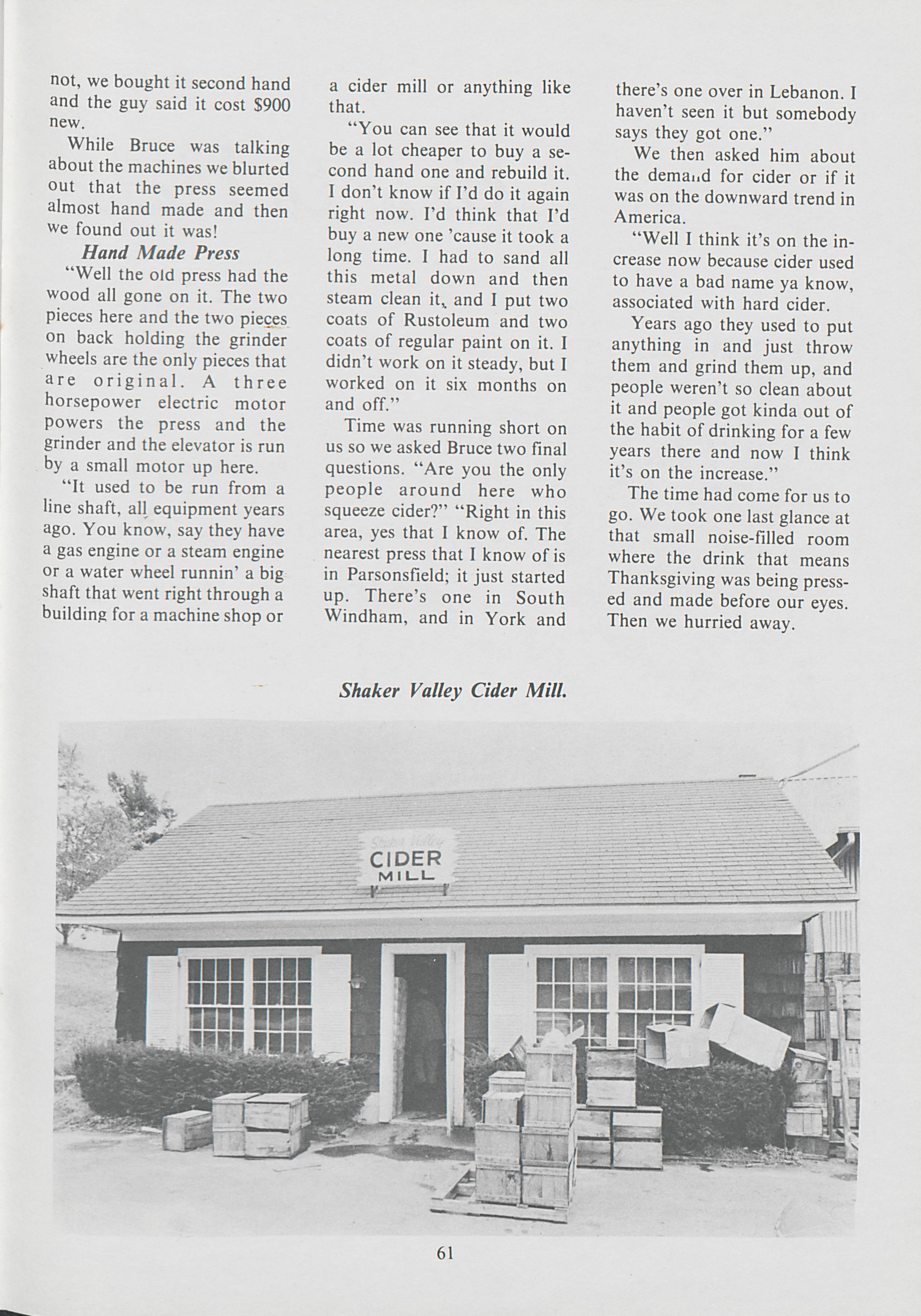 Heading to Giles Family Farm in Alfred, Mark Baker and others go to learn about cider production. Baker and other Salt students speak to Bruce Gile about the squeezing process and the work that goes into the production.