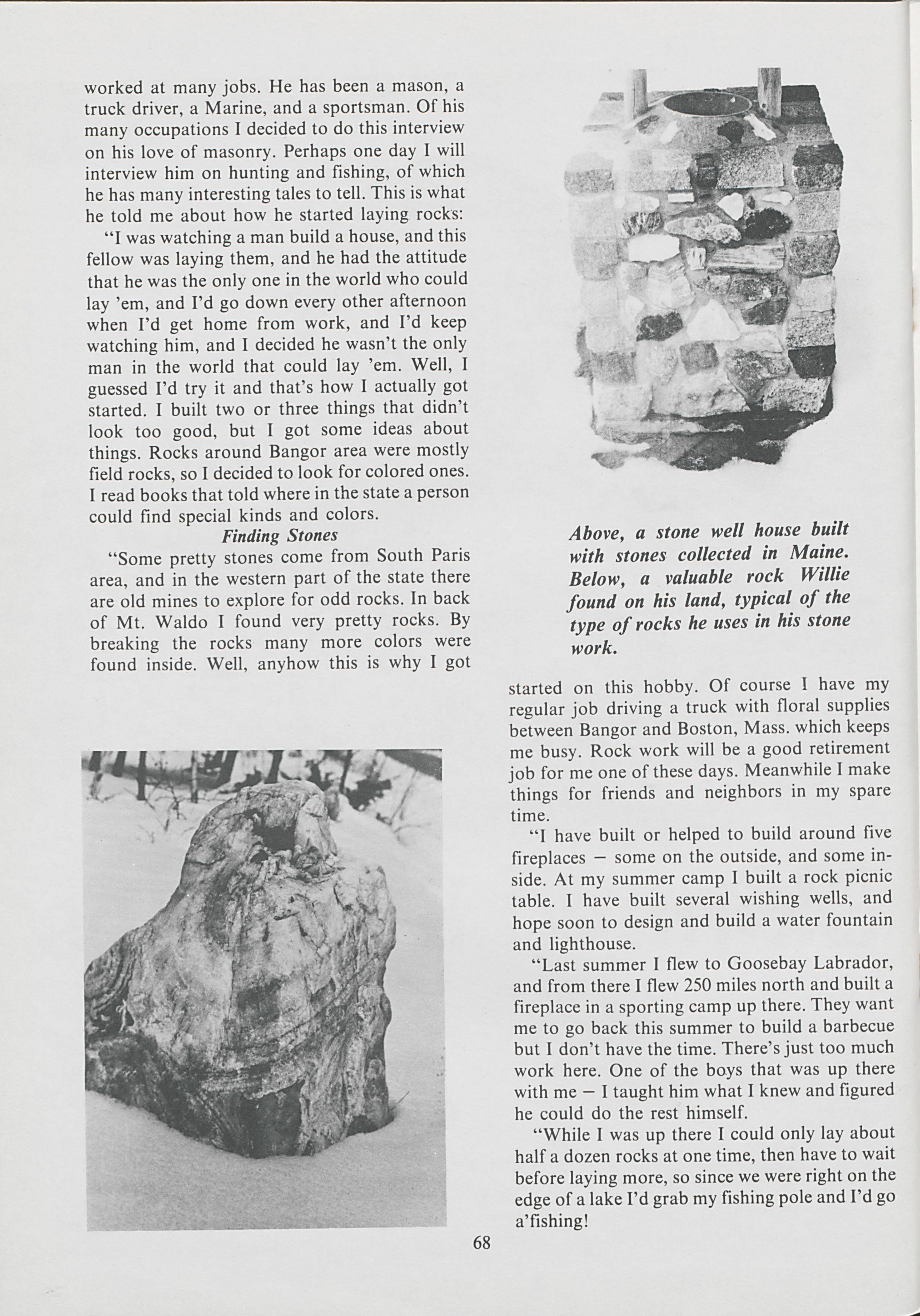 A man with many stories, Wilfred Grendell shares a story about collecting rocks. John Nest documents how Grendell uses his rocks to build things around his home.