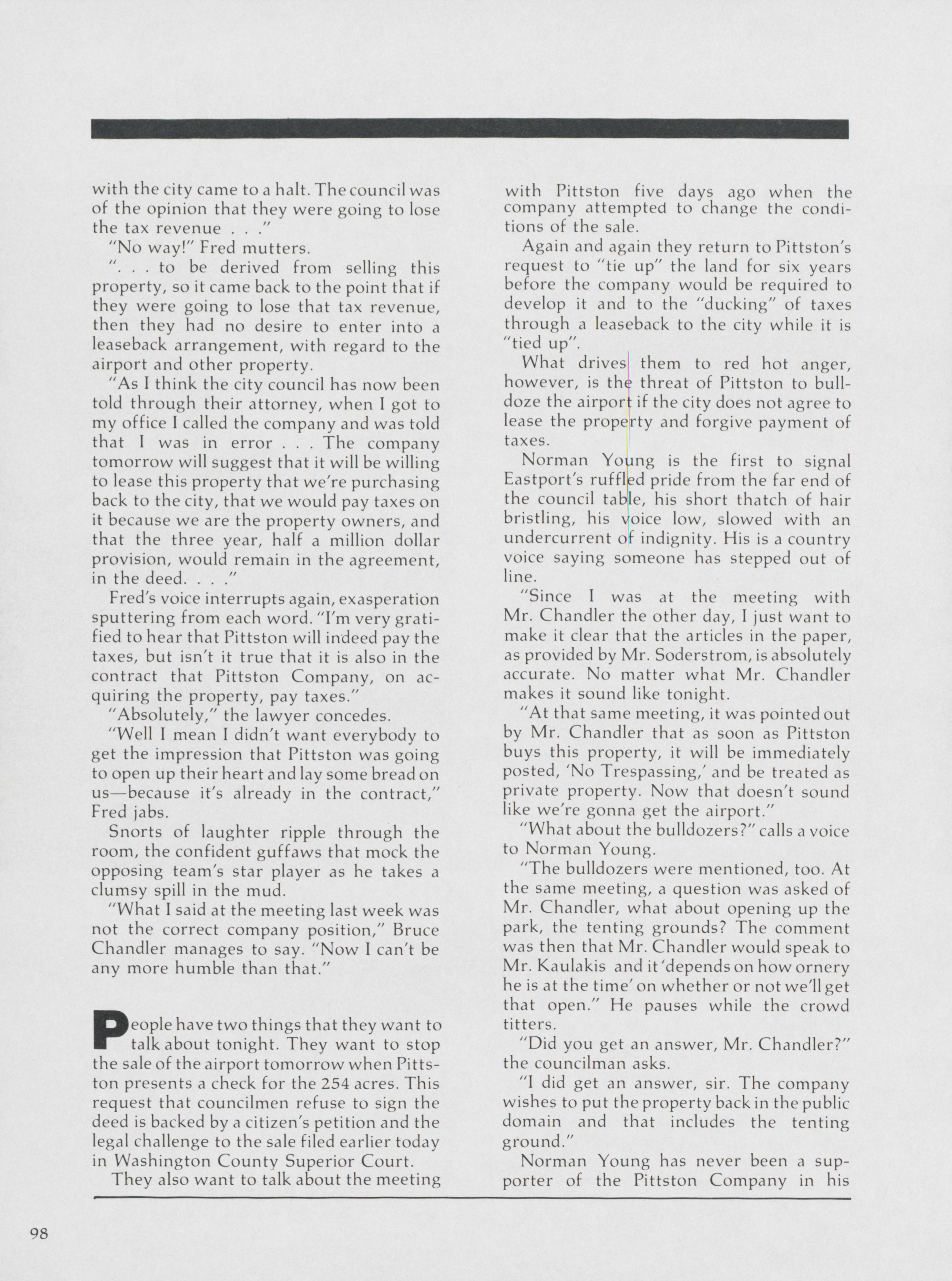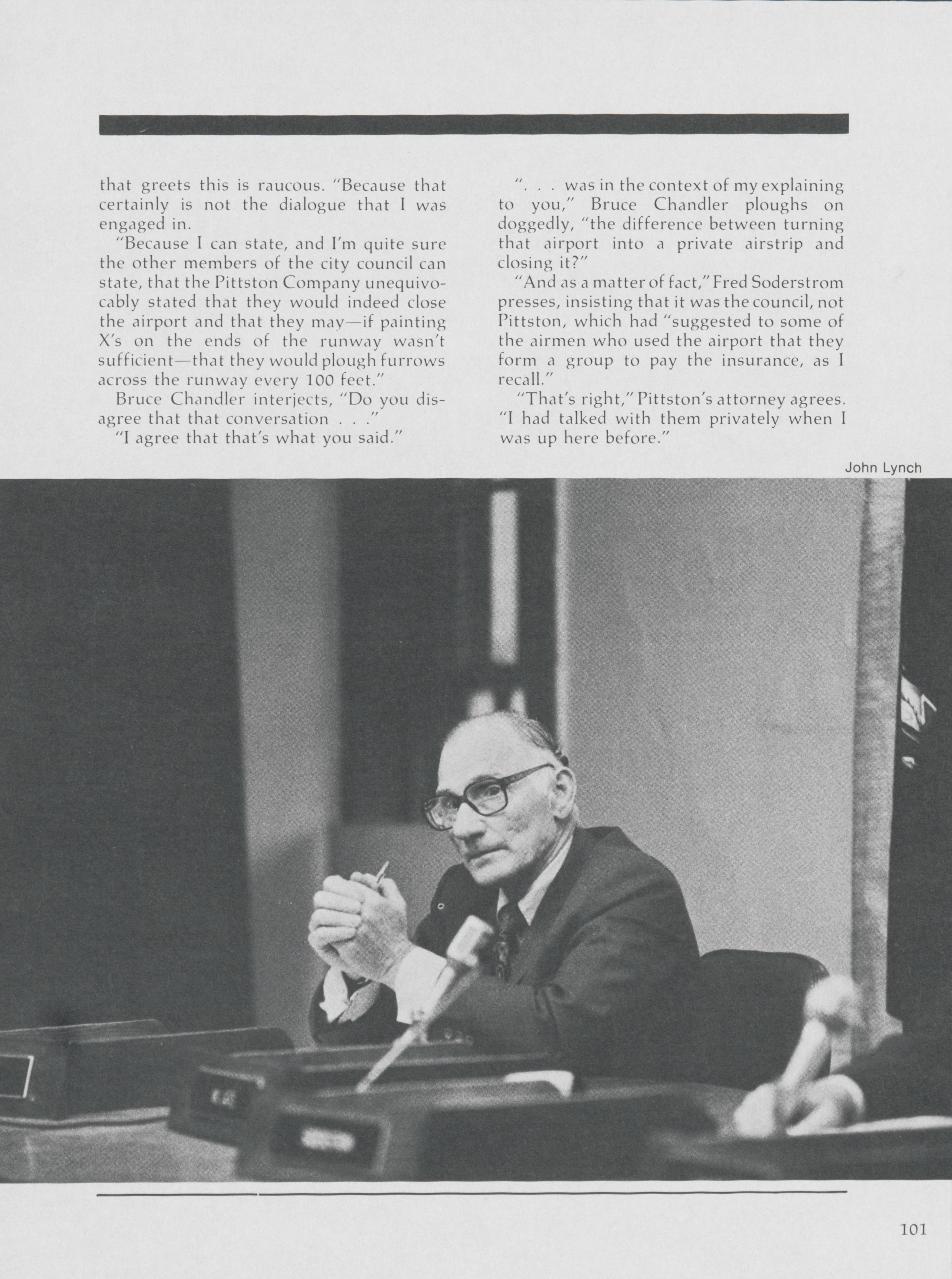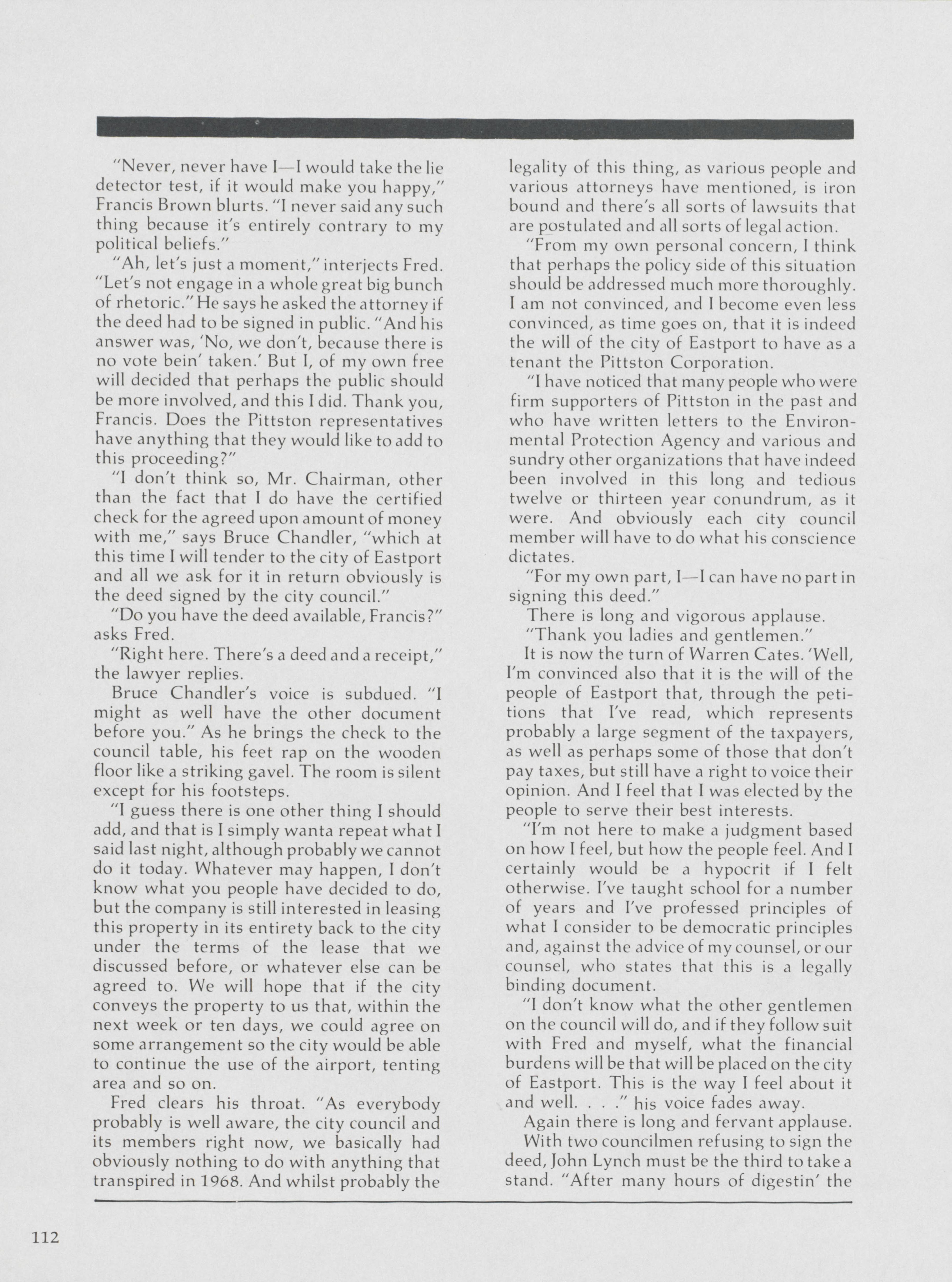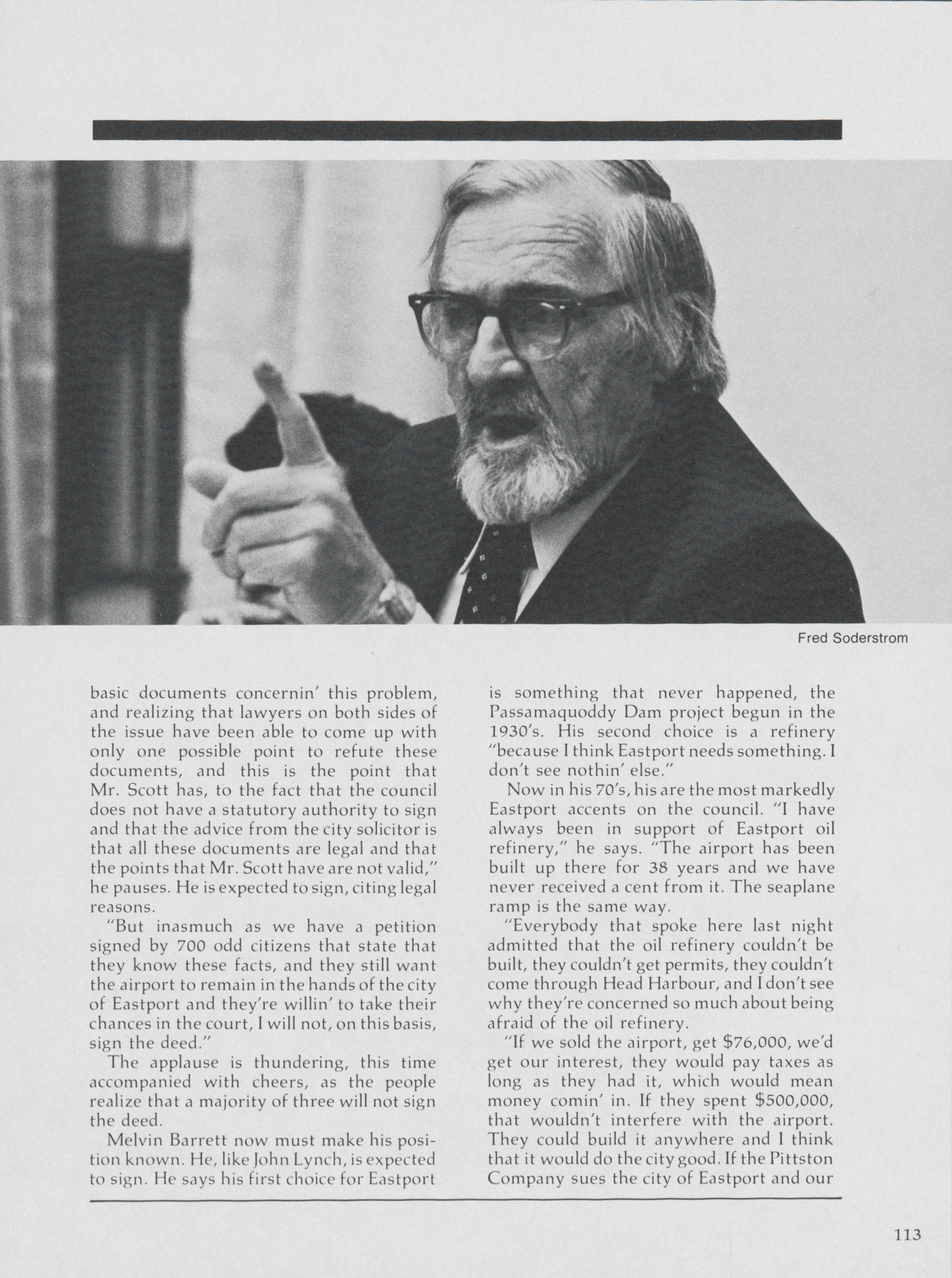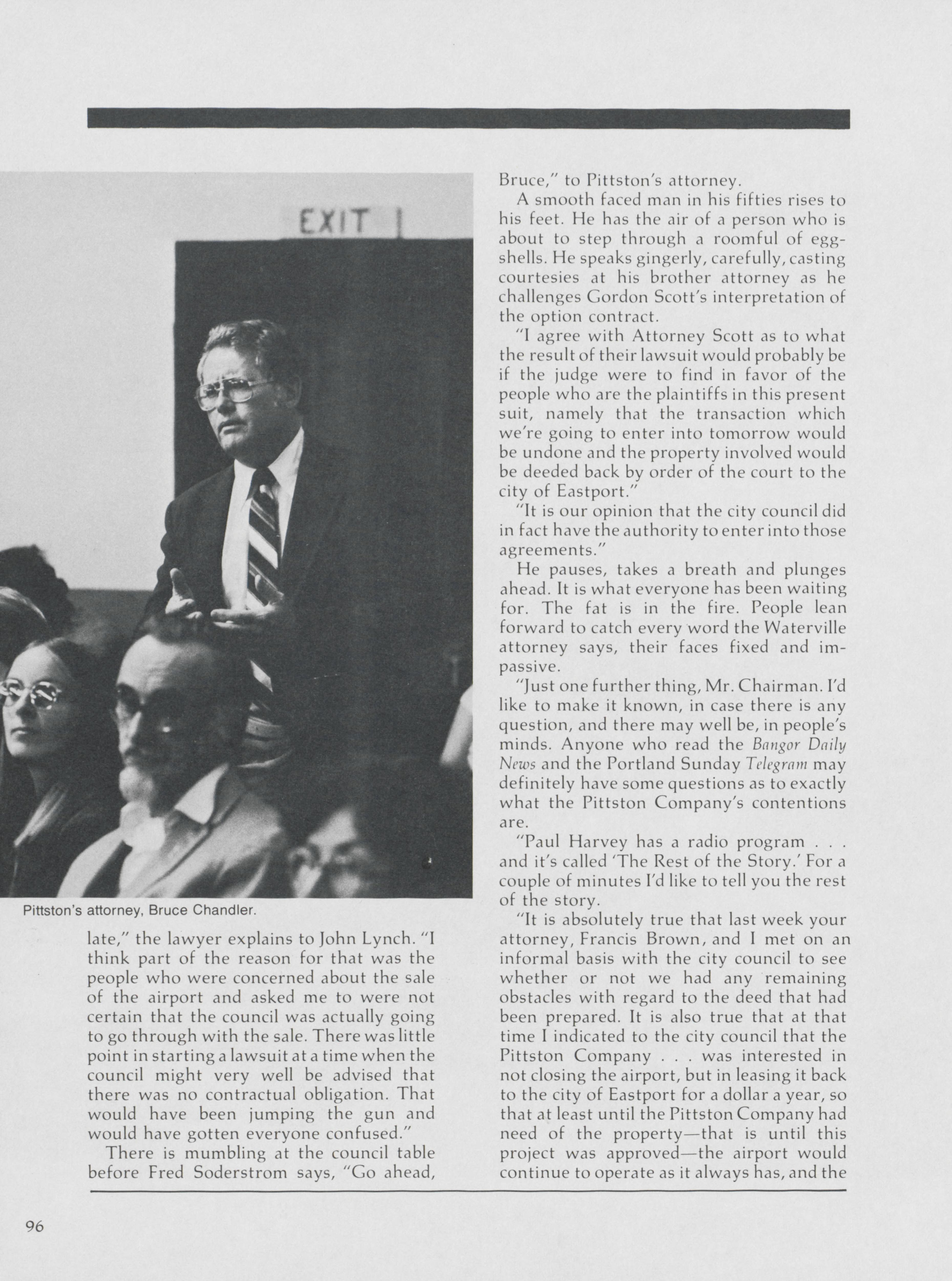 Coming together for a public meeting to discuss the Pittston Company, members of the community are at odds regarding their situation. Pamela Wood documents the tension regarding Eastport's civil war over oil.