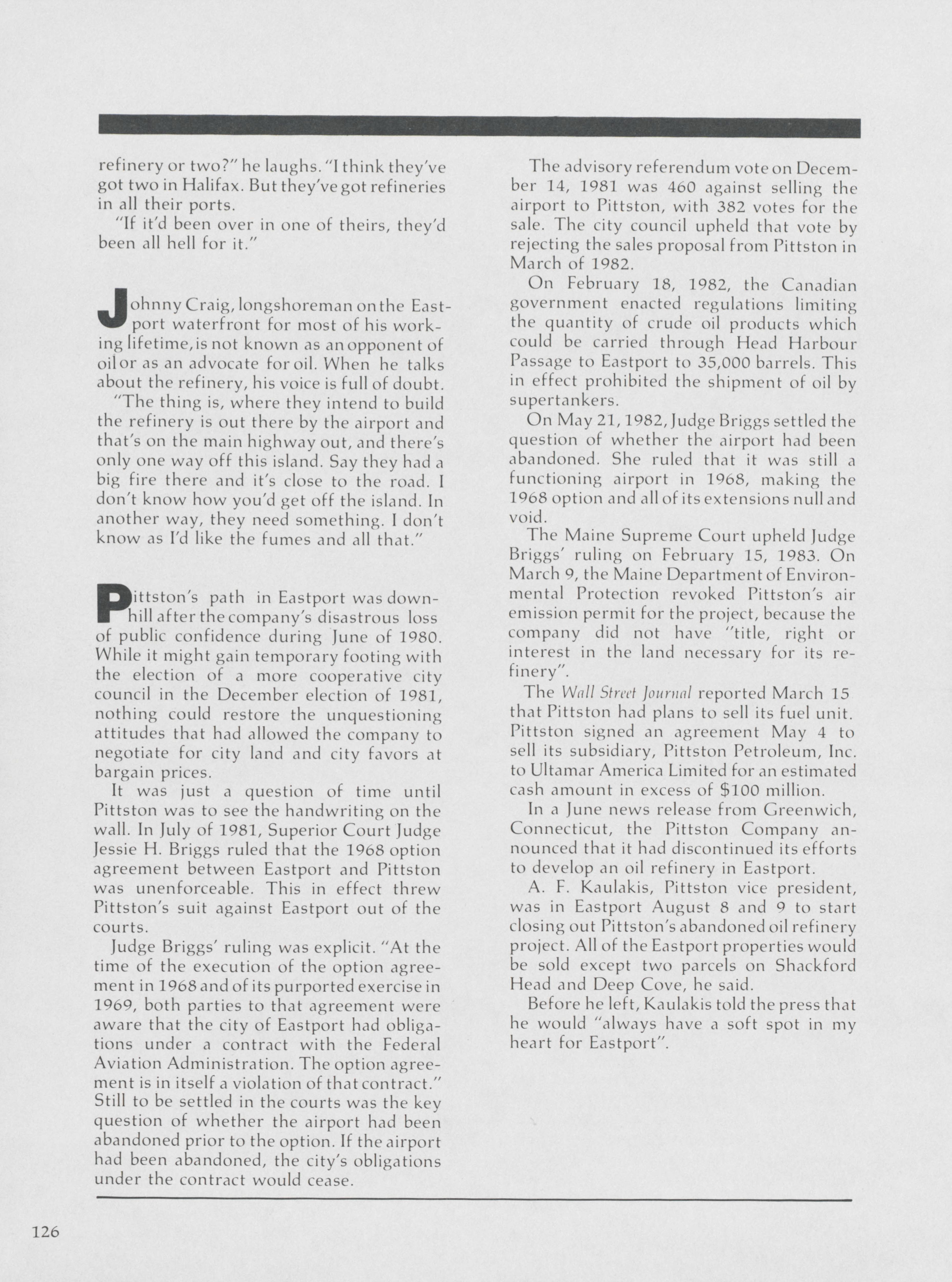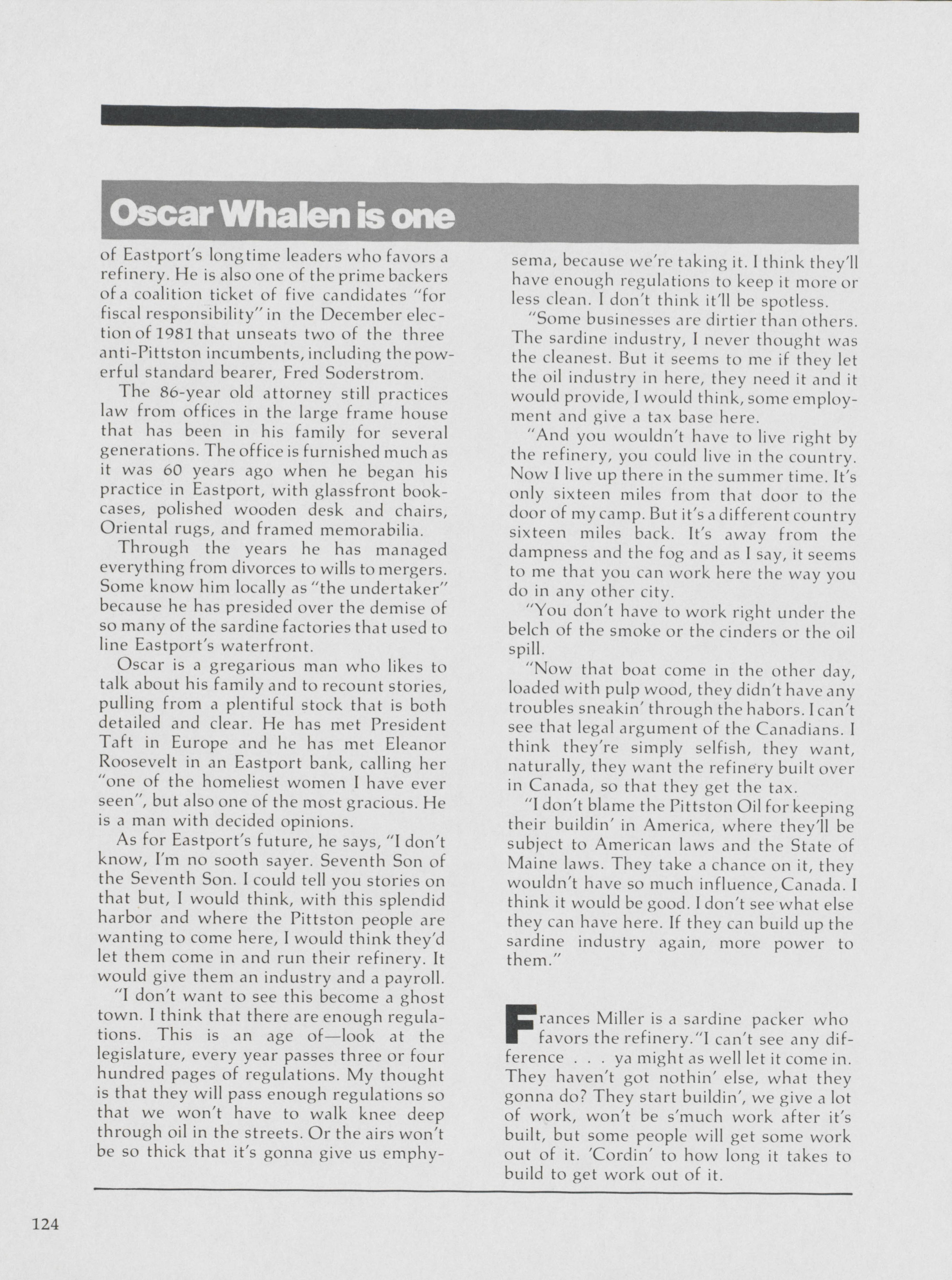 Pamela Wood documents the opinions of other towns people regarding the Pittston Company refinery.