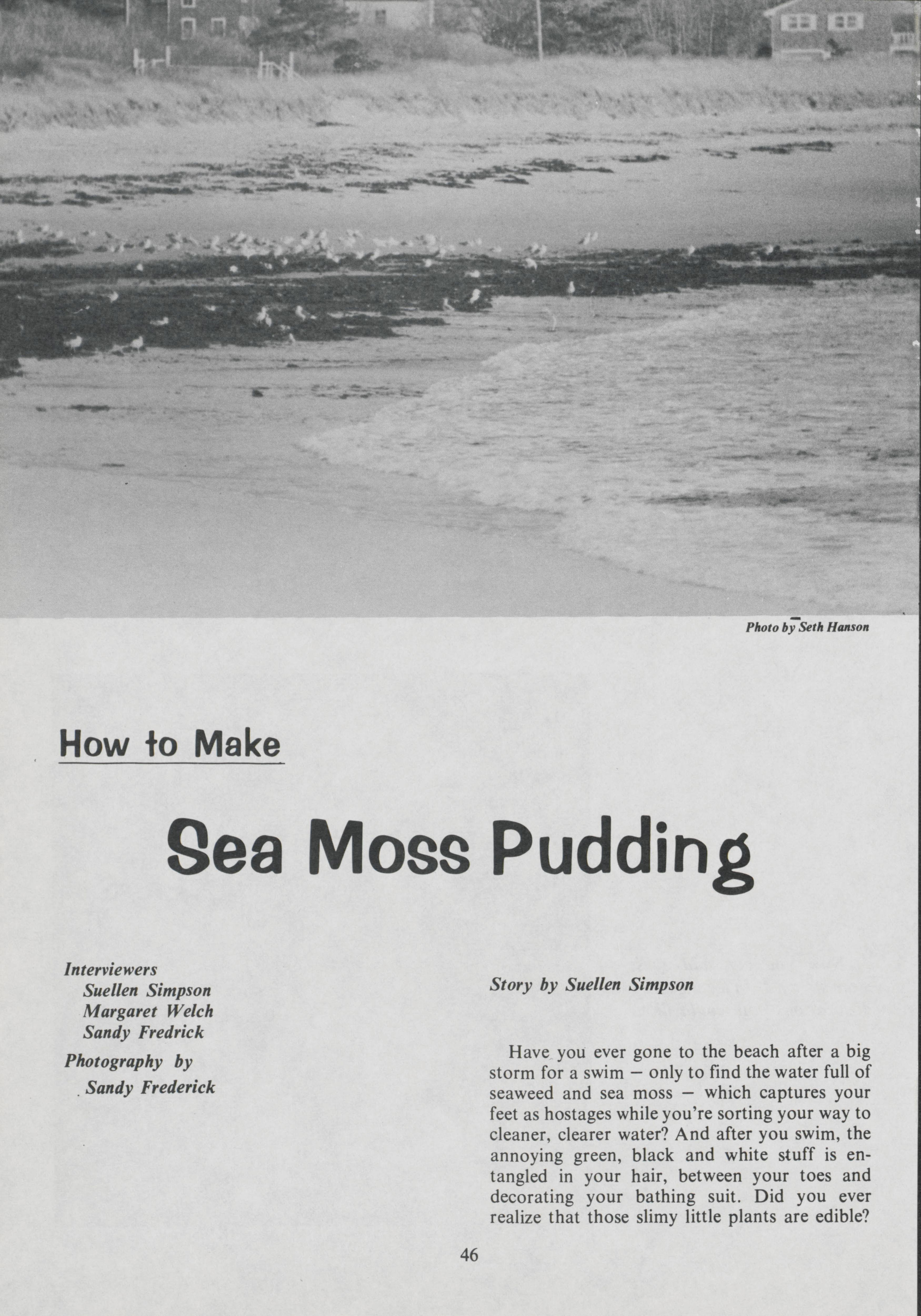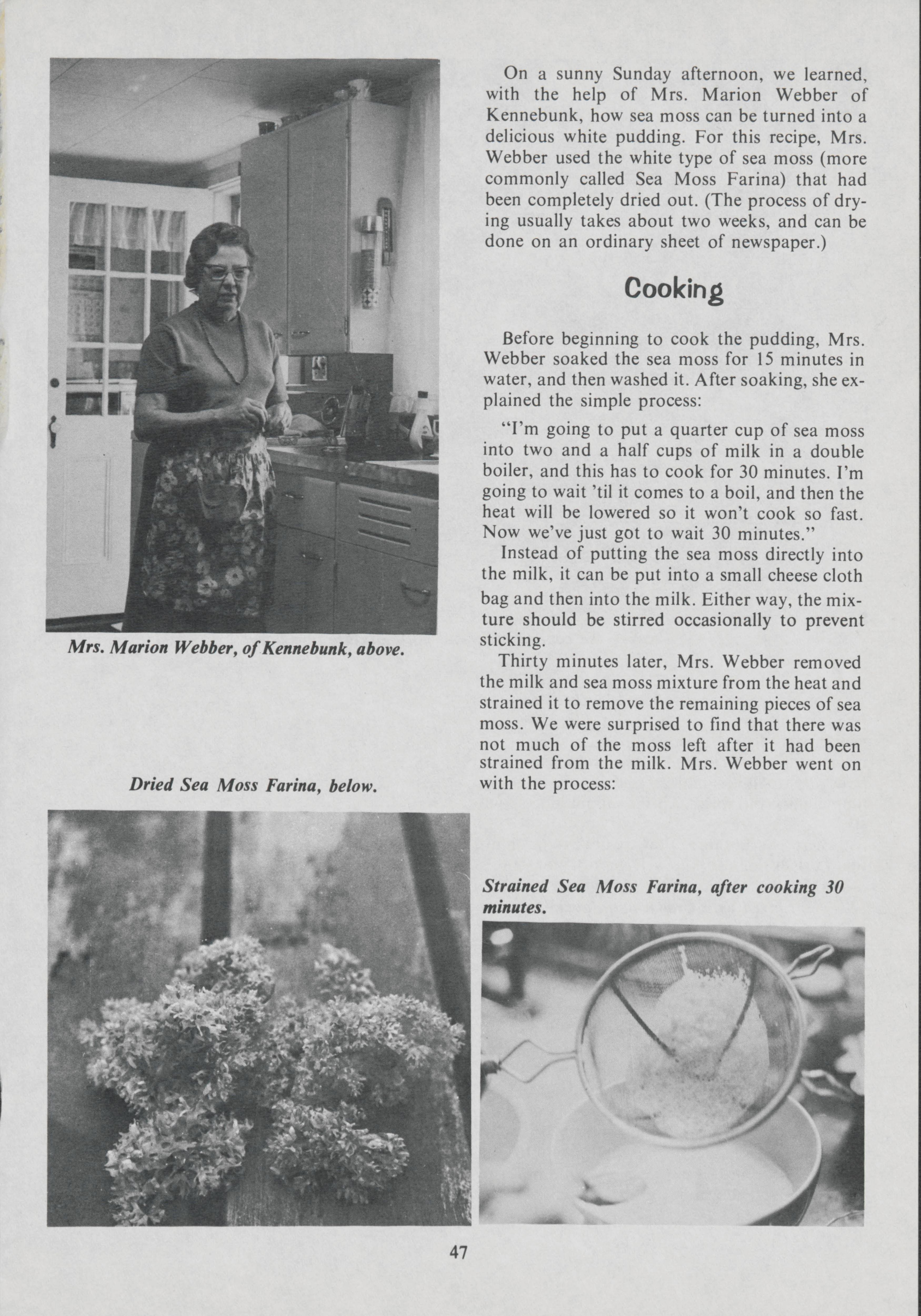 For years, people along the coast of Maine have used sea moss to make pudding. Suellen Simpson and others speak to Marion Webber of Kennebunk to learn how the pudding is made.