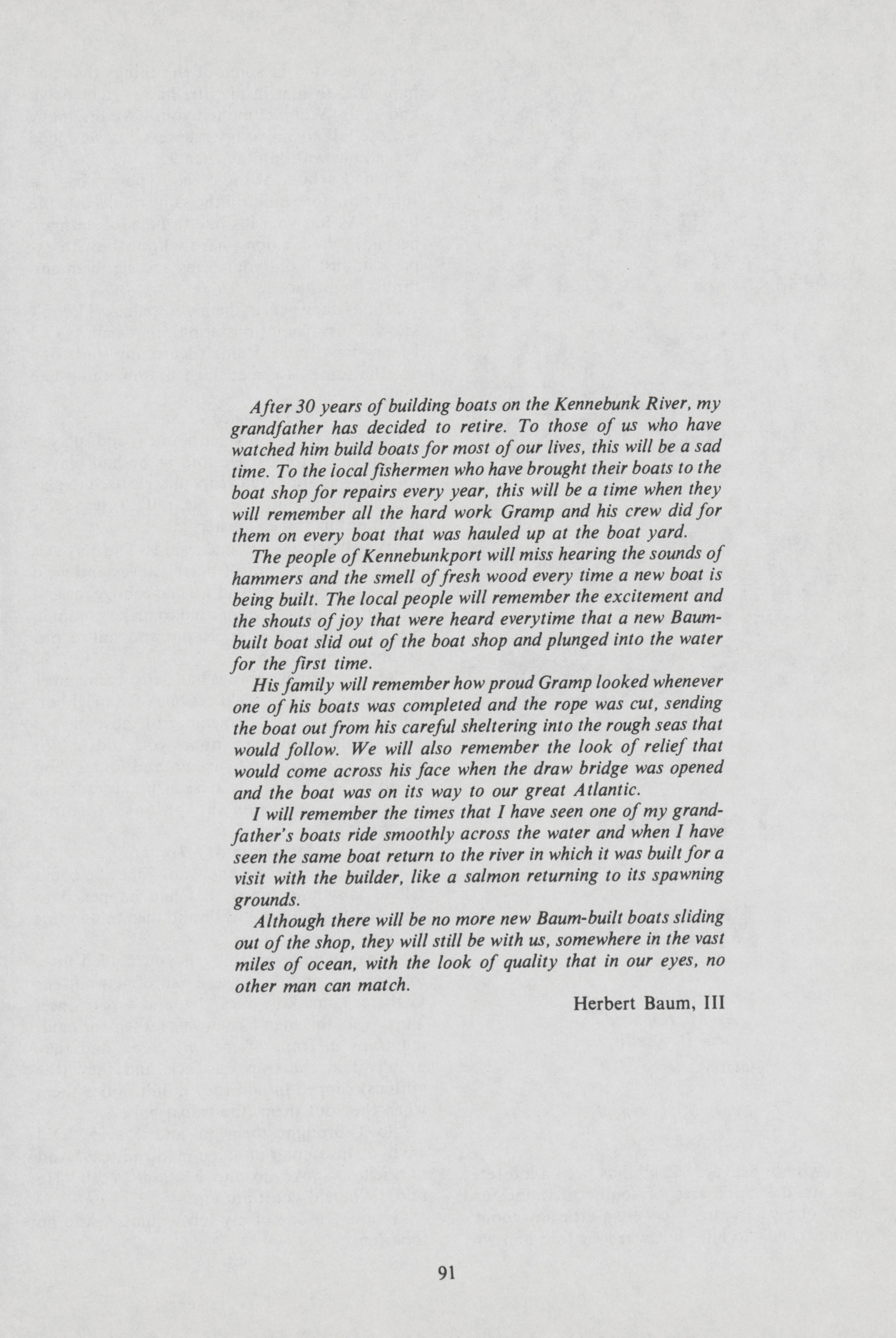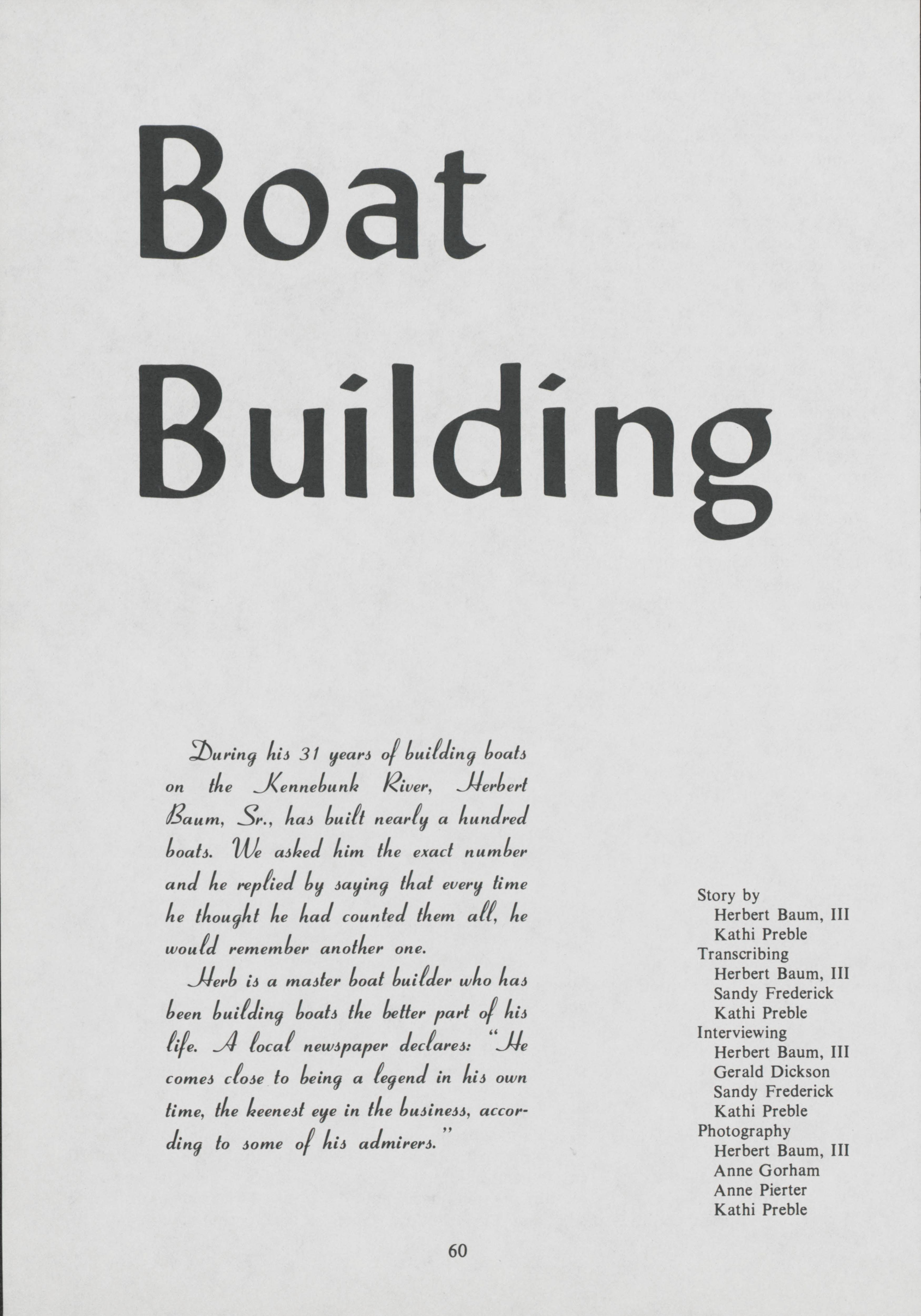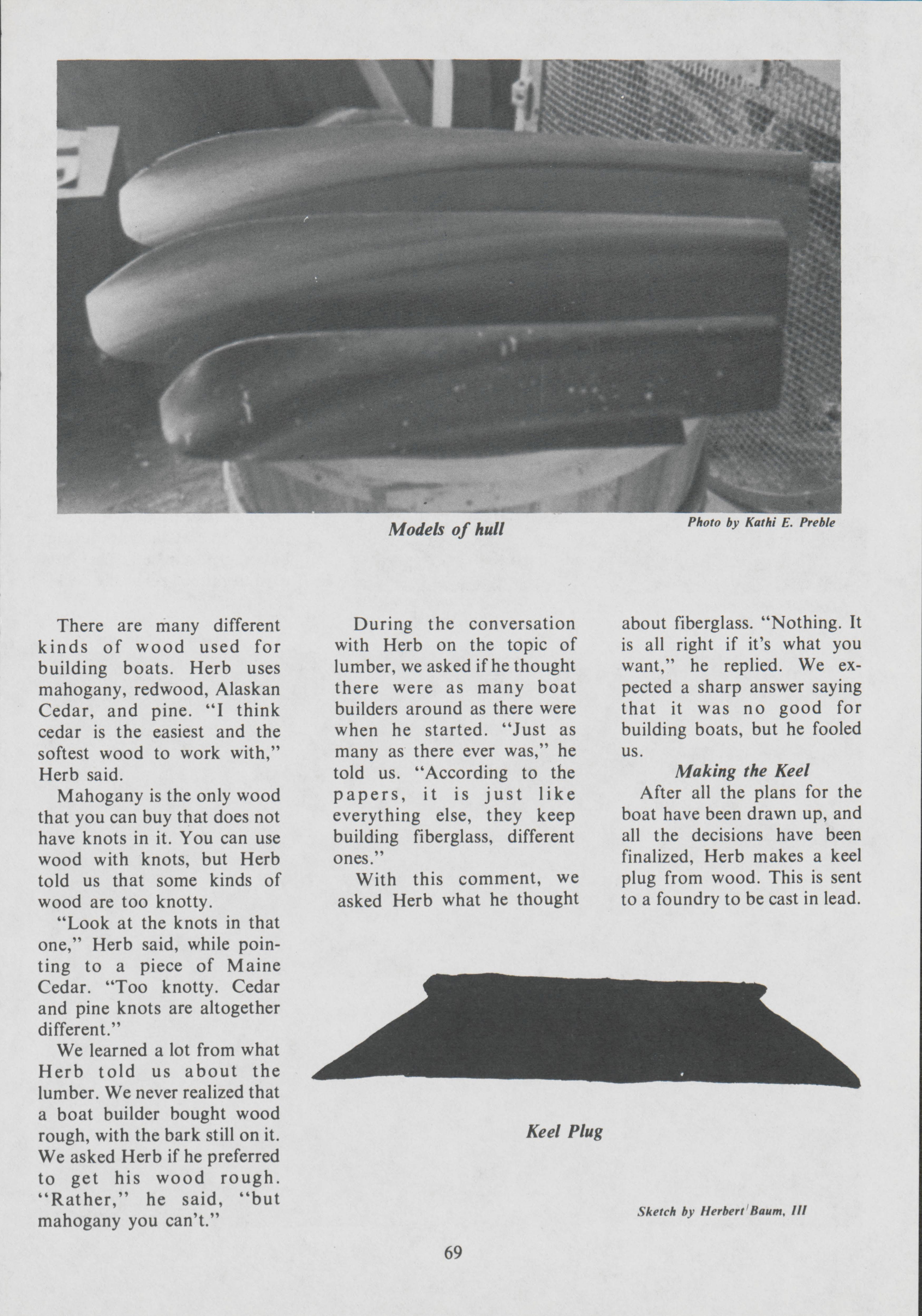 As a master boat builder, Herb Baum, Sr. understands the intricacies of building a boat. Herb Baum III and Kathi Preble document the work that goes into designing and building a boat.