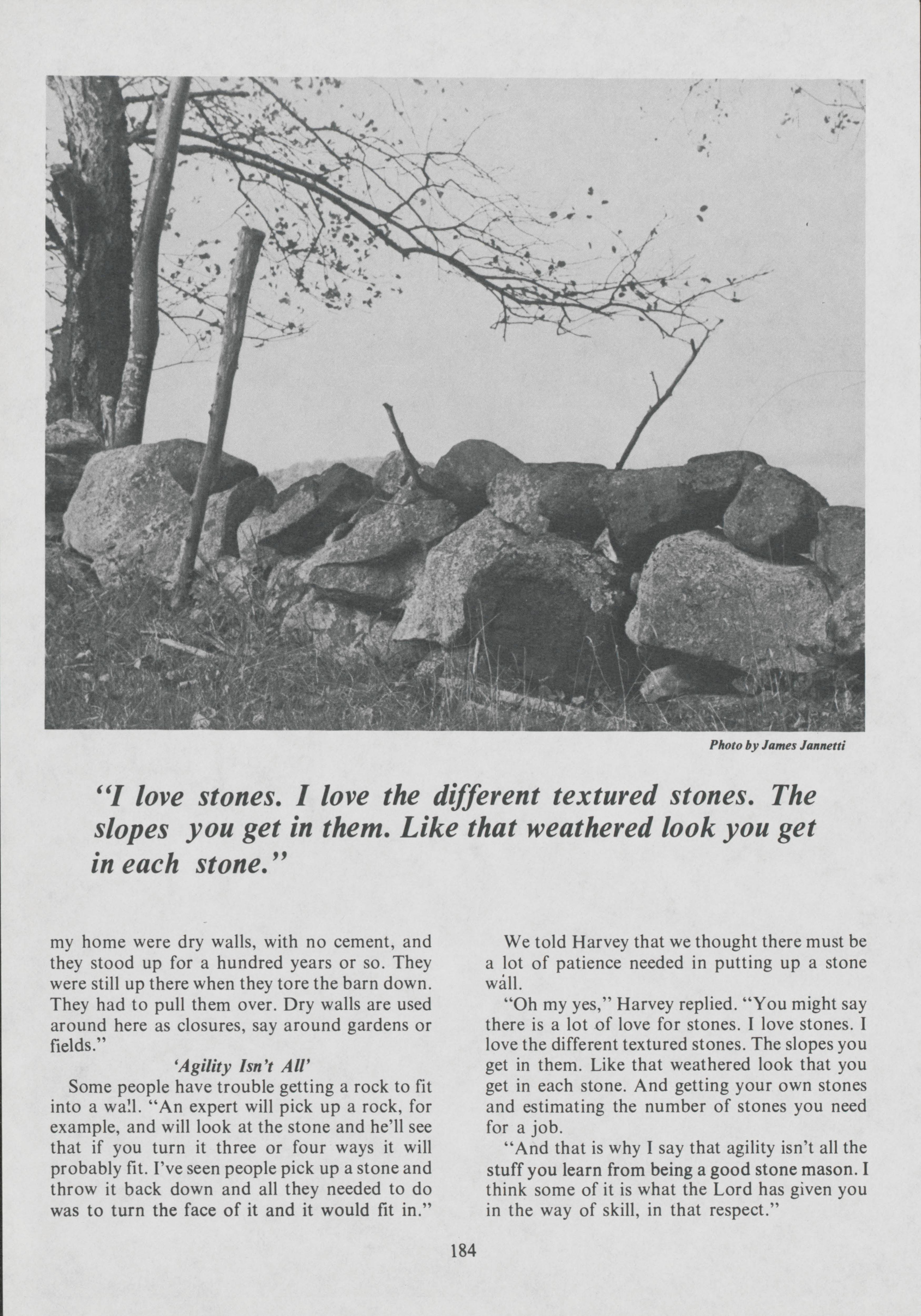 Harvey Bixby is a skilled artisan who builds stone walls. Mark Serreze visits Bixby to learn about his craft and the work that goes into it.