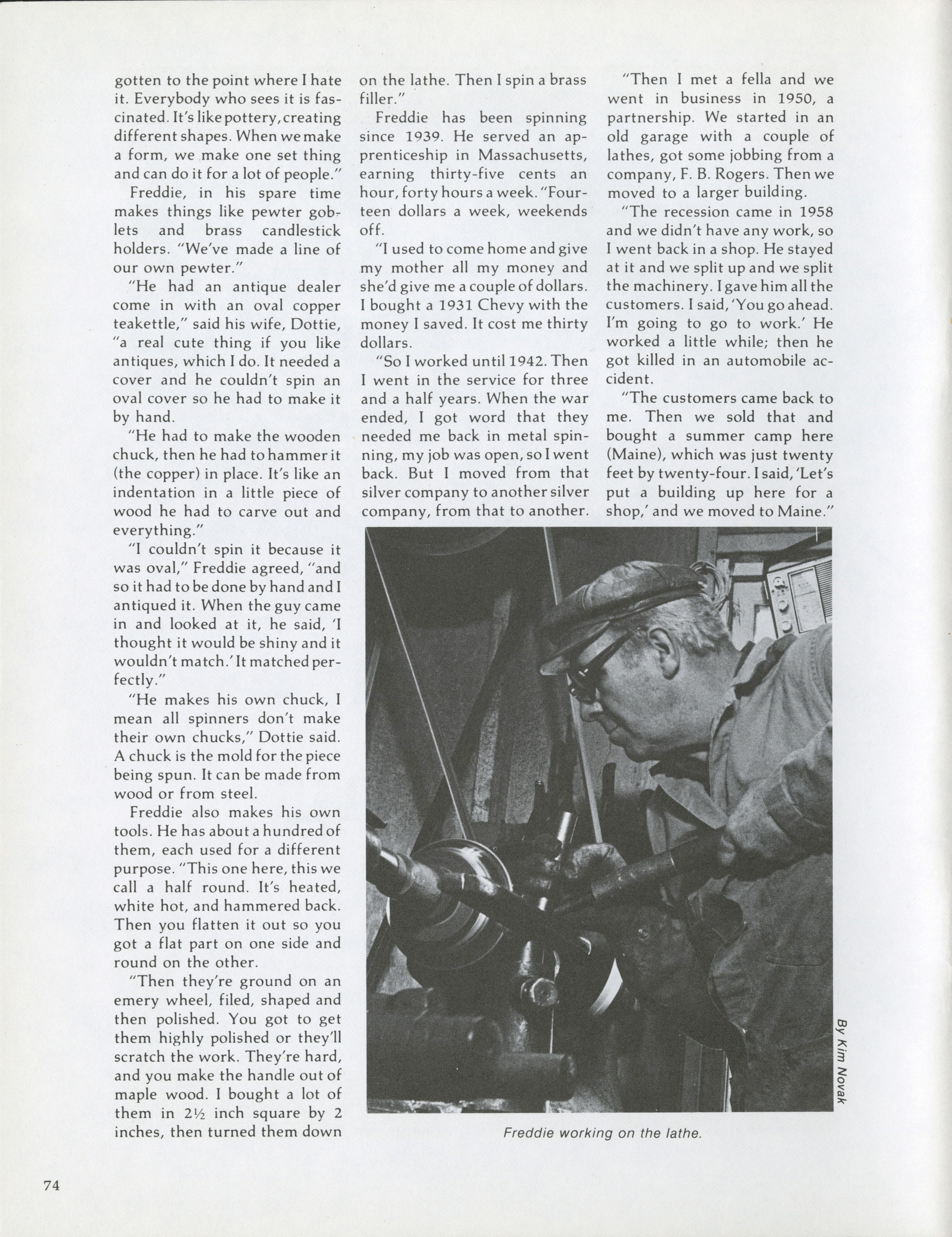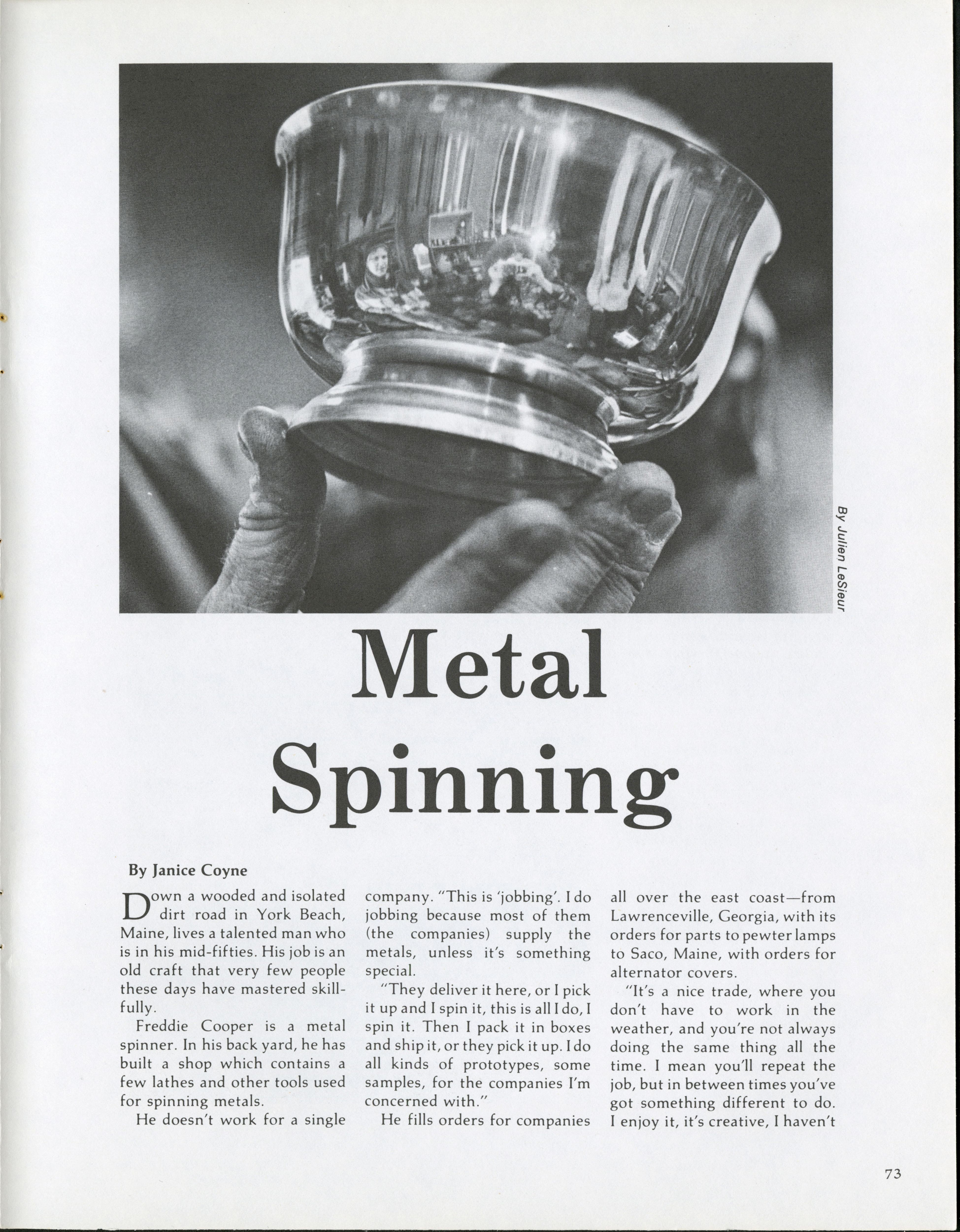 In Kittery, Freddie Cooper practices the dying art of spinning pewter. Janice Coyne visits Cooper to learn about his craft of metal spinning.