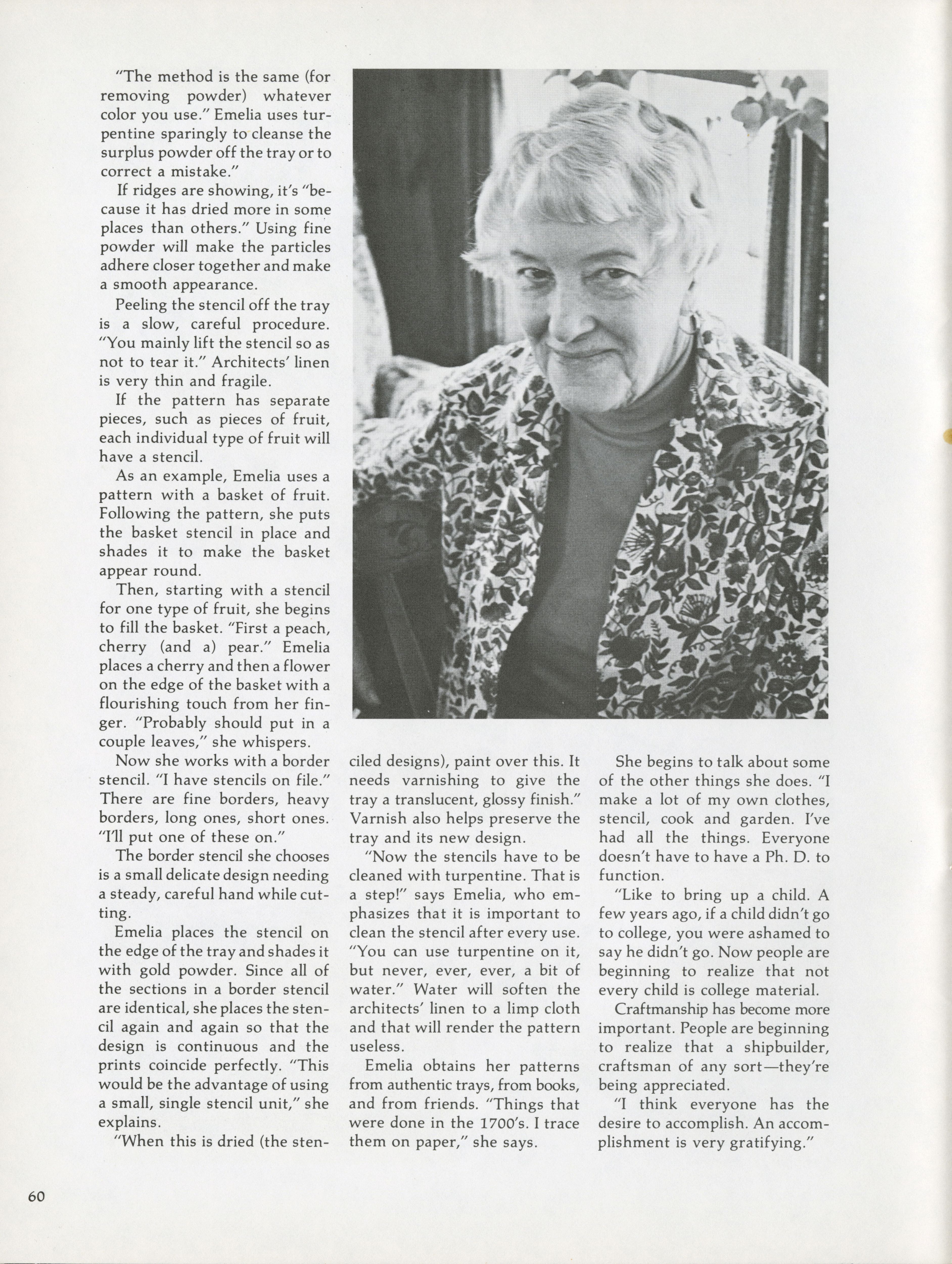 Emelia Wallace spends most of her time stenciling trays and antique chairs. E.J. Blake speaks to Wallace about her hobby and the work that goes into stenciling.