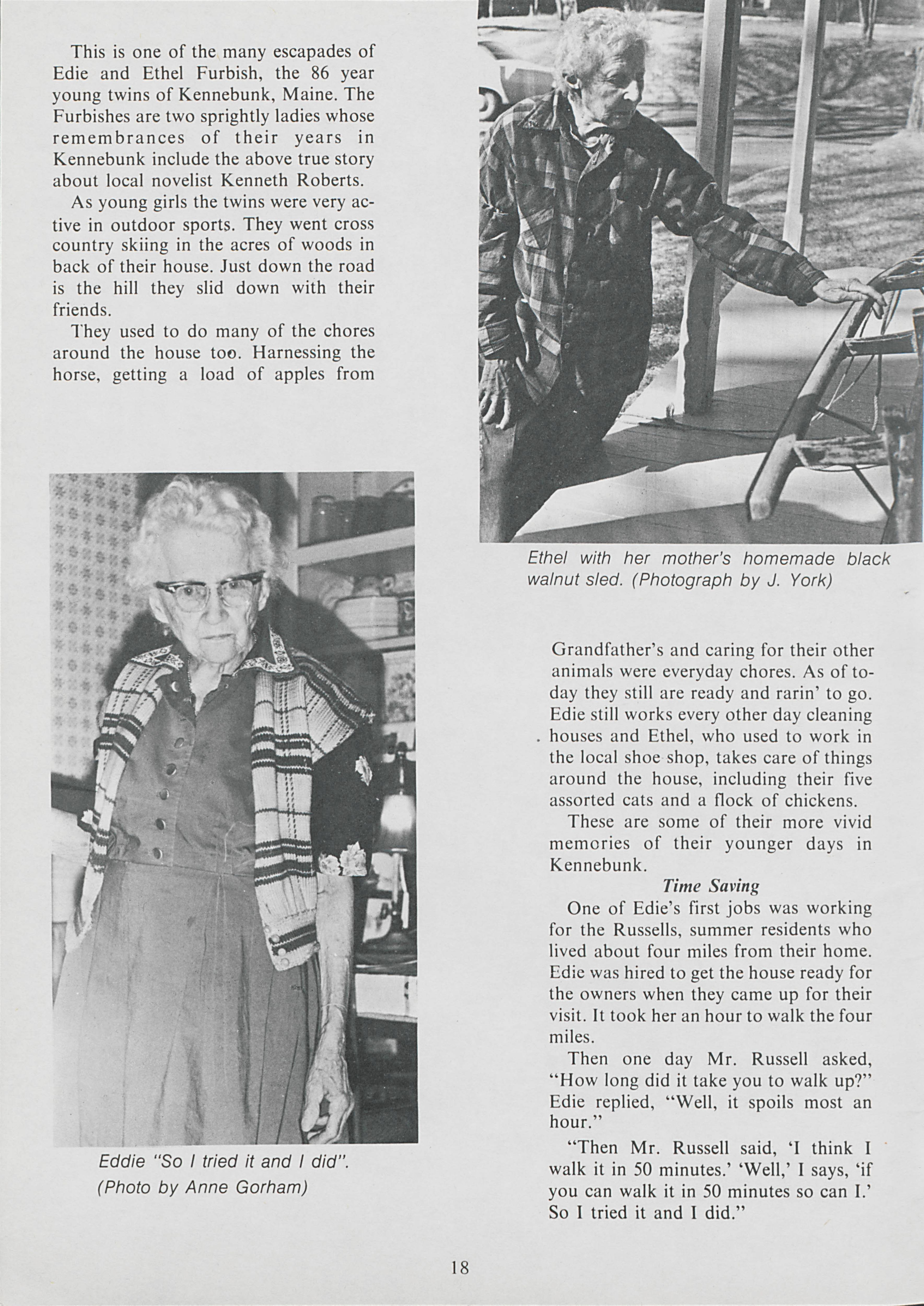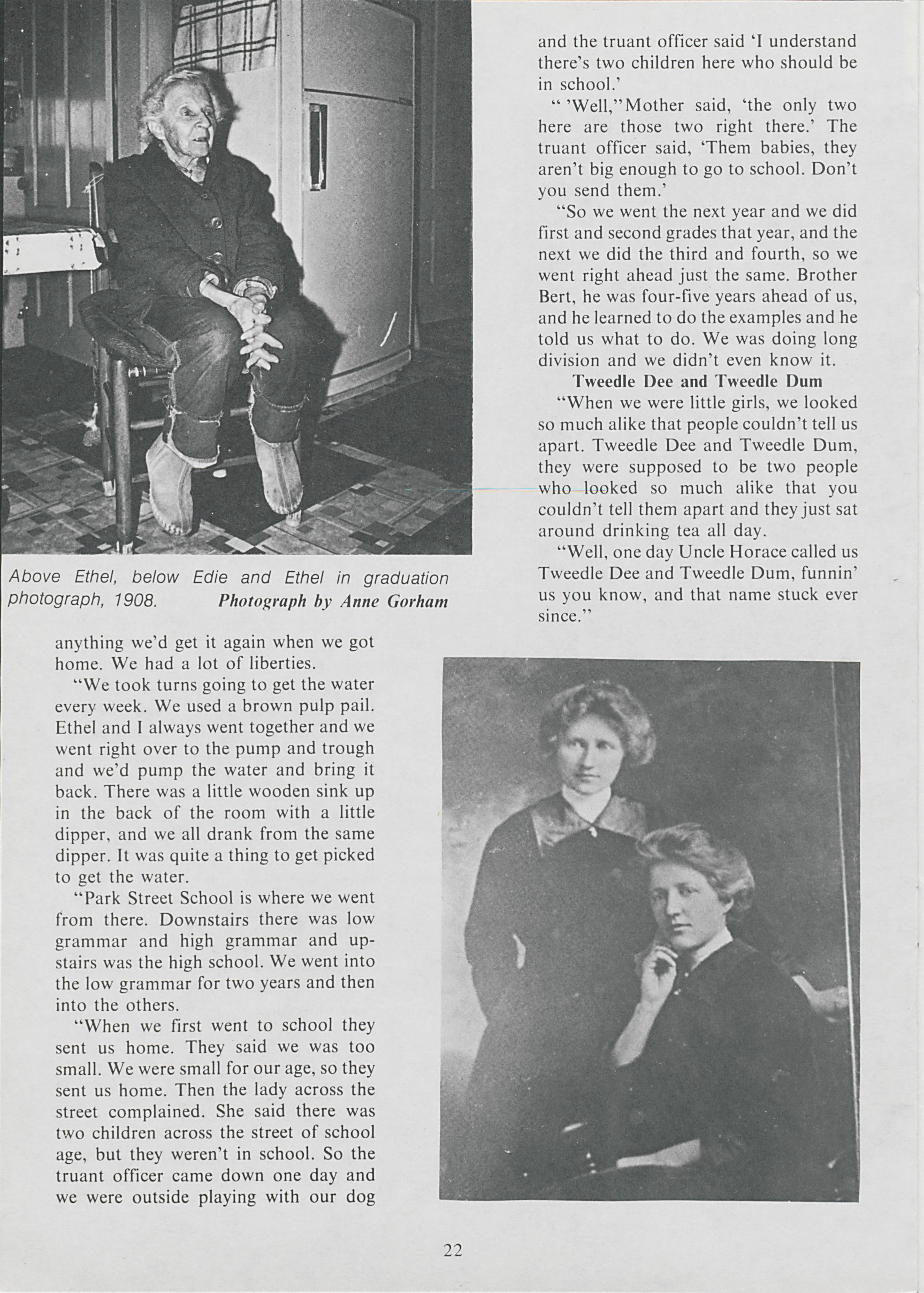 At the age of 86, the Furbish twins, Ethel and Edie, have many interesting stories from their childhoods. Anne Gorham and Sherri Jones speak to the twins about their experiences.