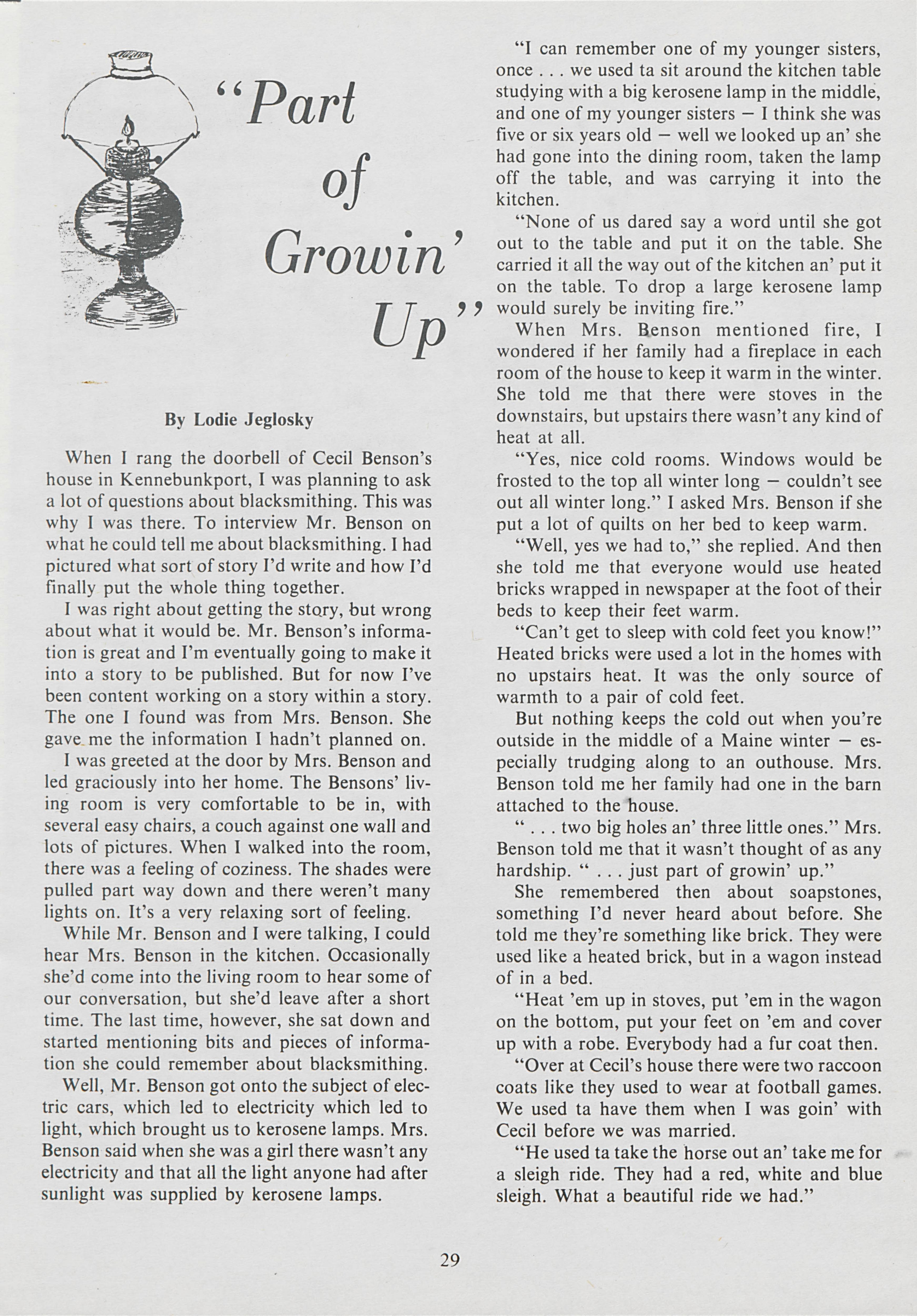 When Lodie Jeglosky went to visit Cecil Benson to do a story on blacksmithing, she found another story. Jeglosky speaks to Benson's wife about growing up without heat.