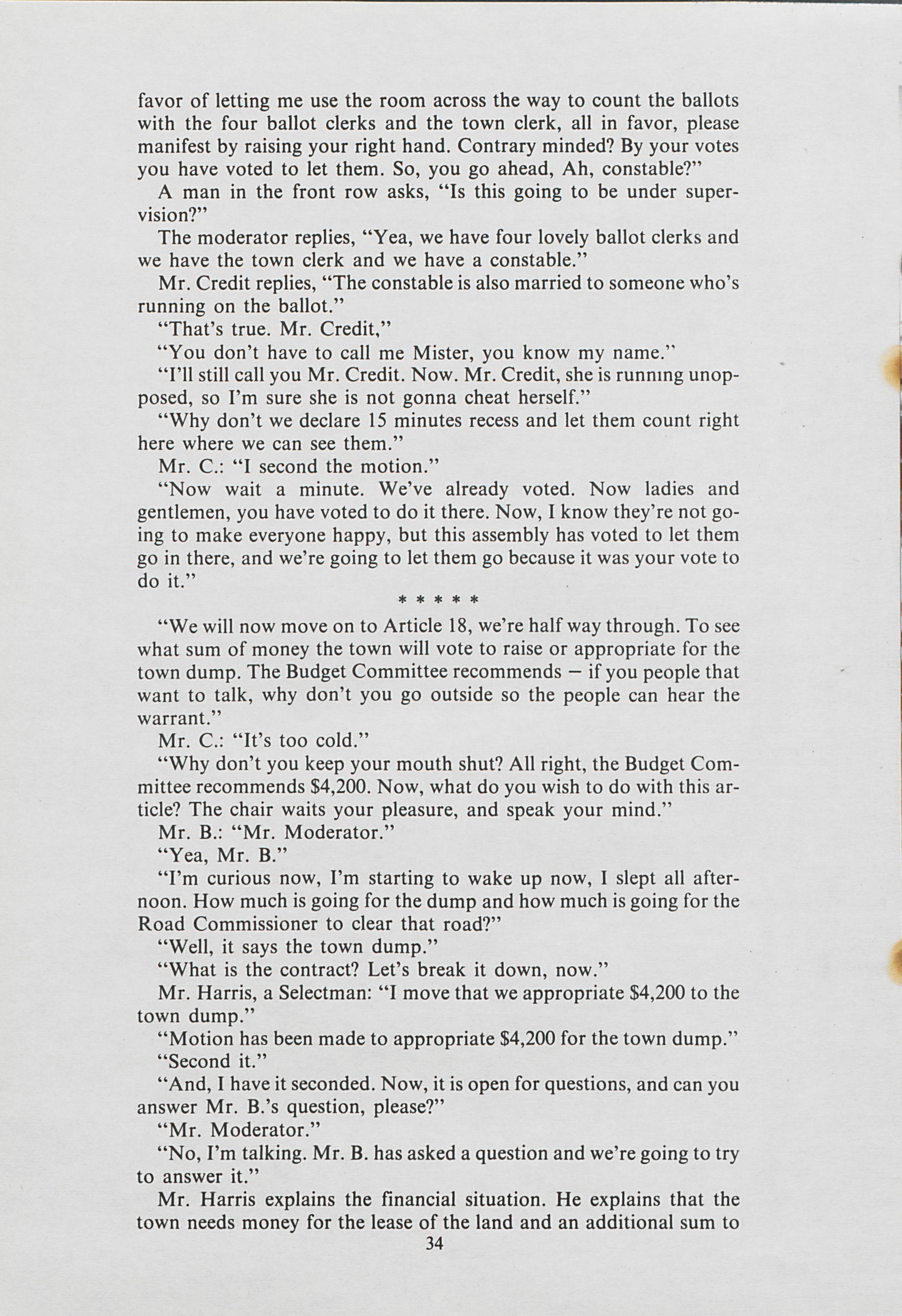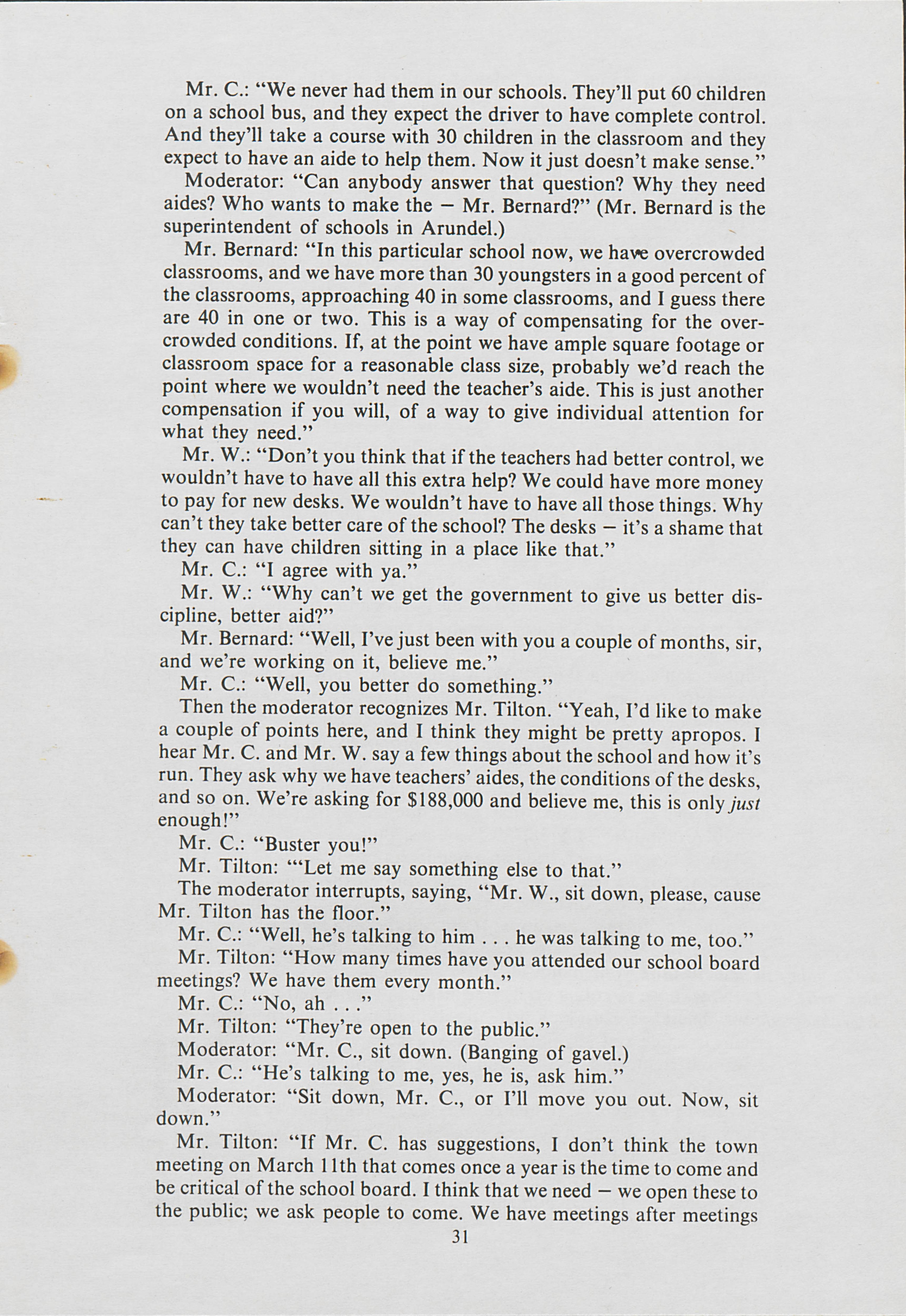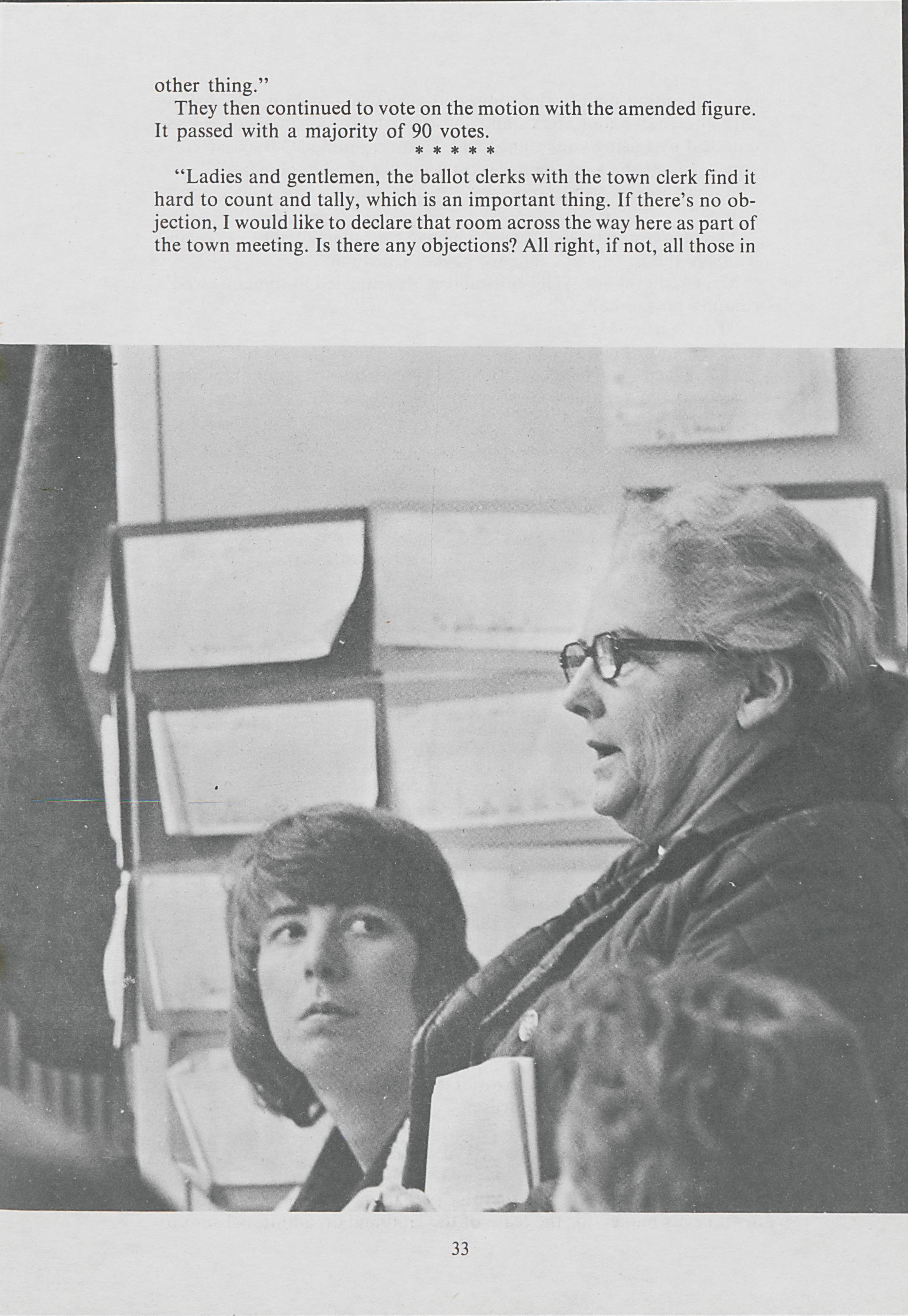 Heading to Arundel to hear old time democracy, Valerie Gould and Anne Pierter go to a town meeting. Gould and Pierter document the meeting and the issues that were discussed.