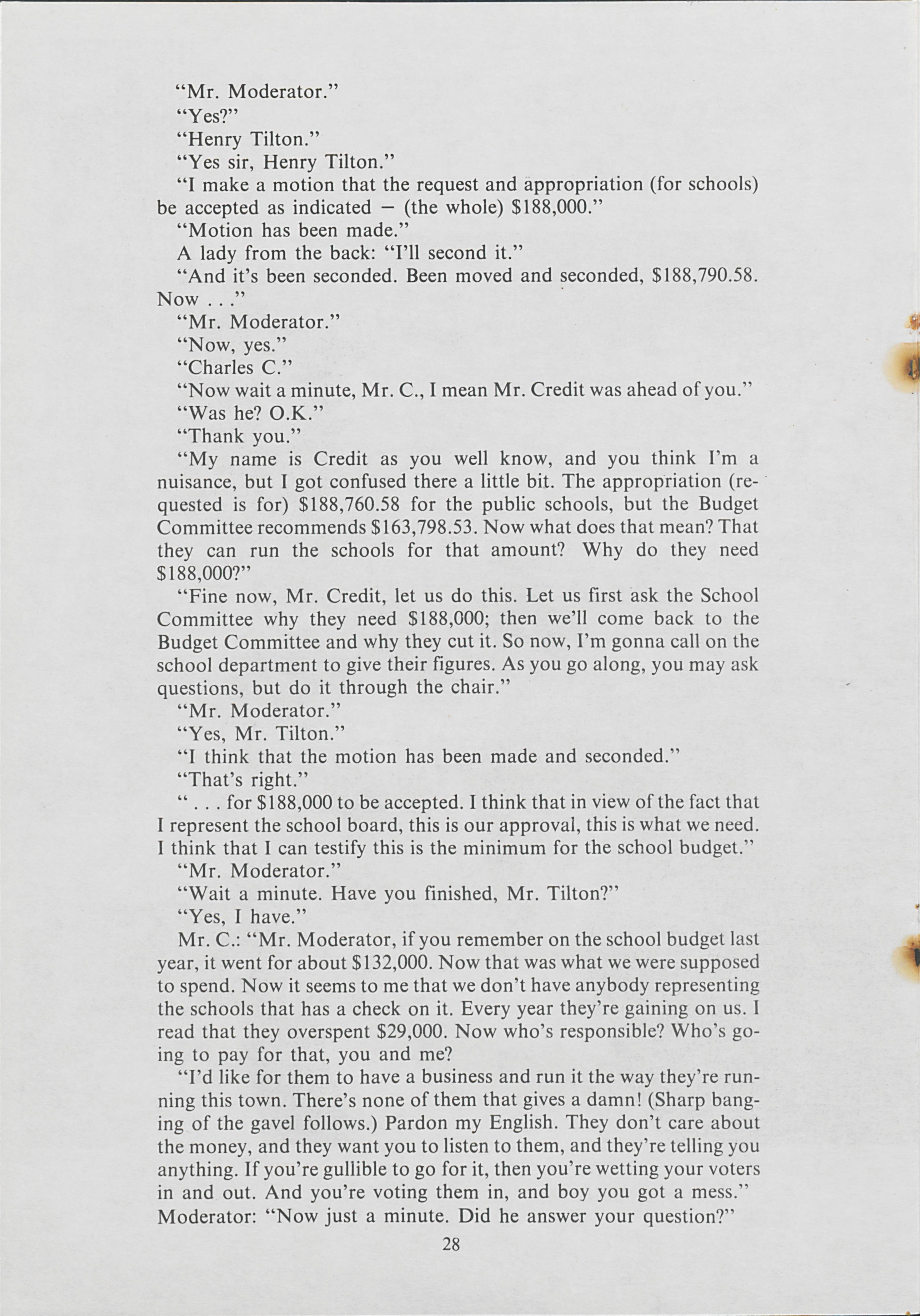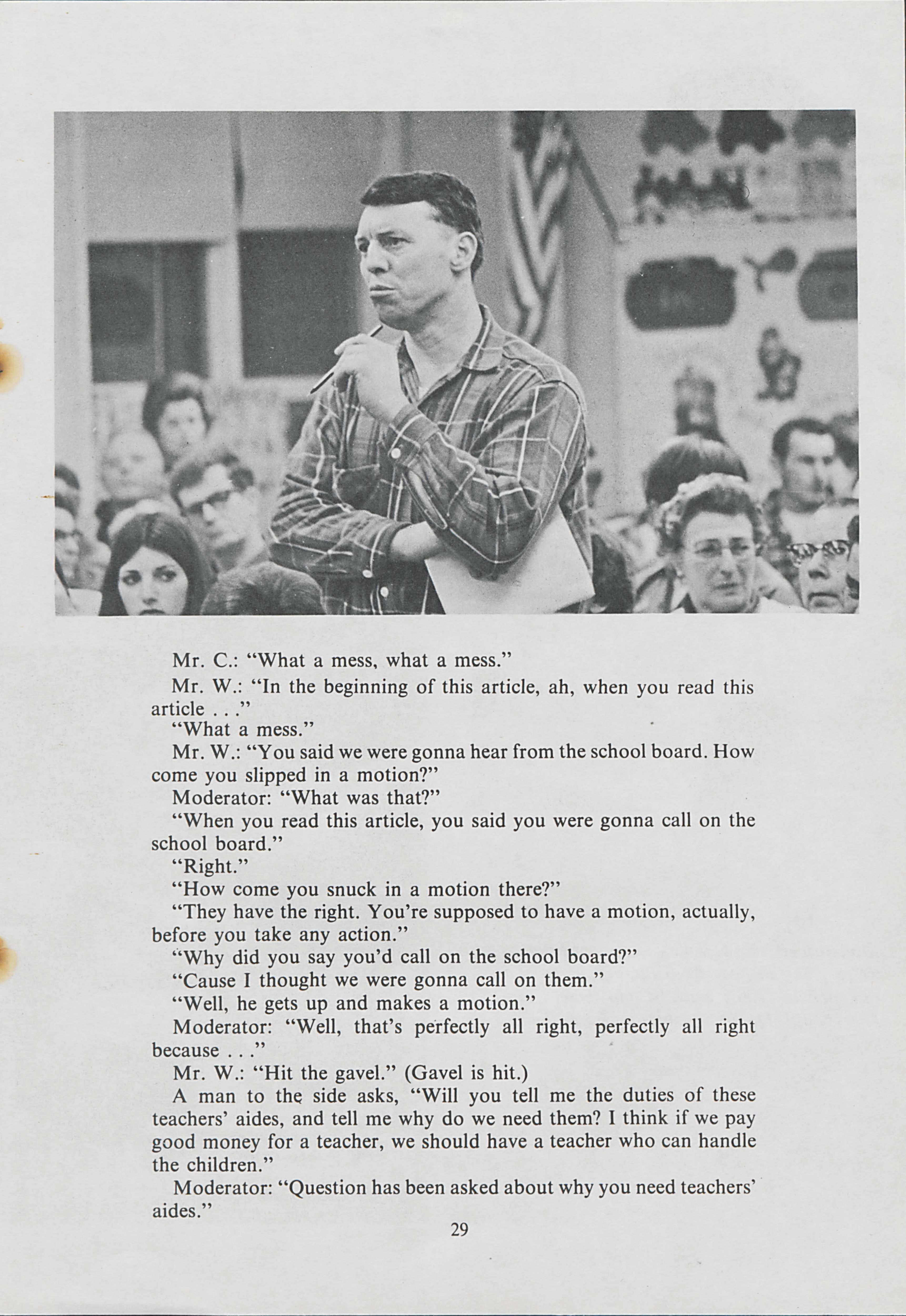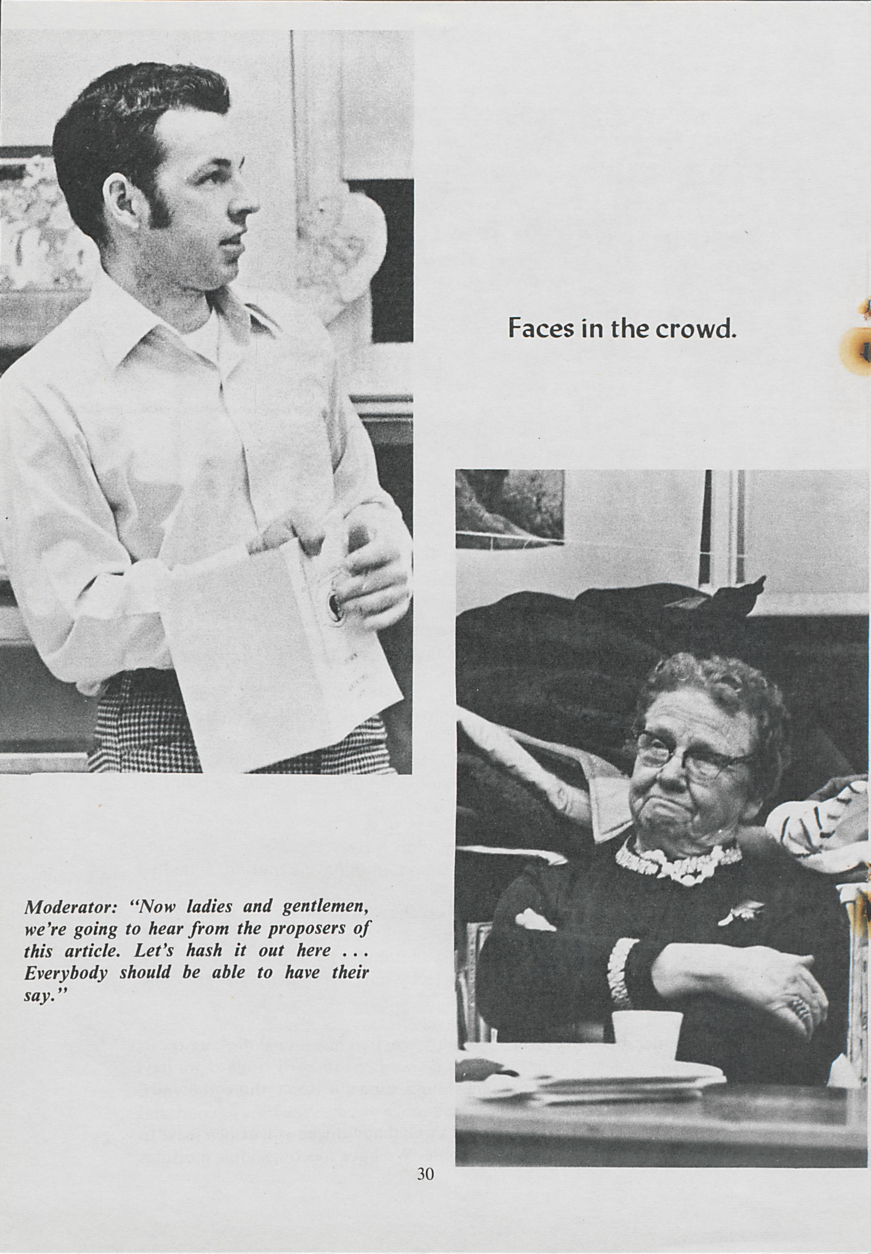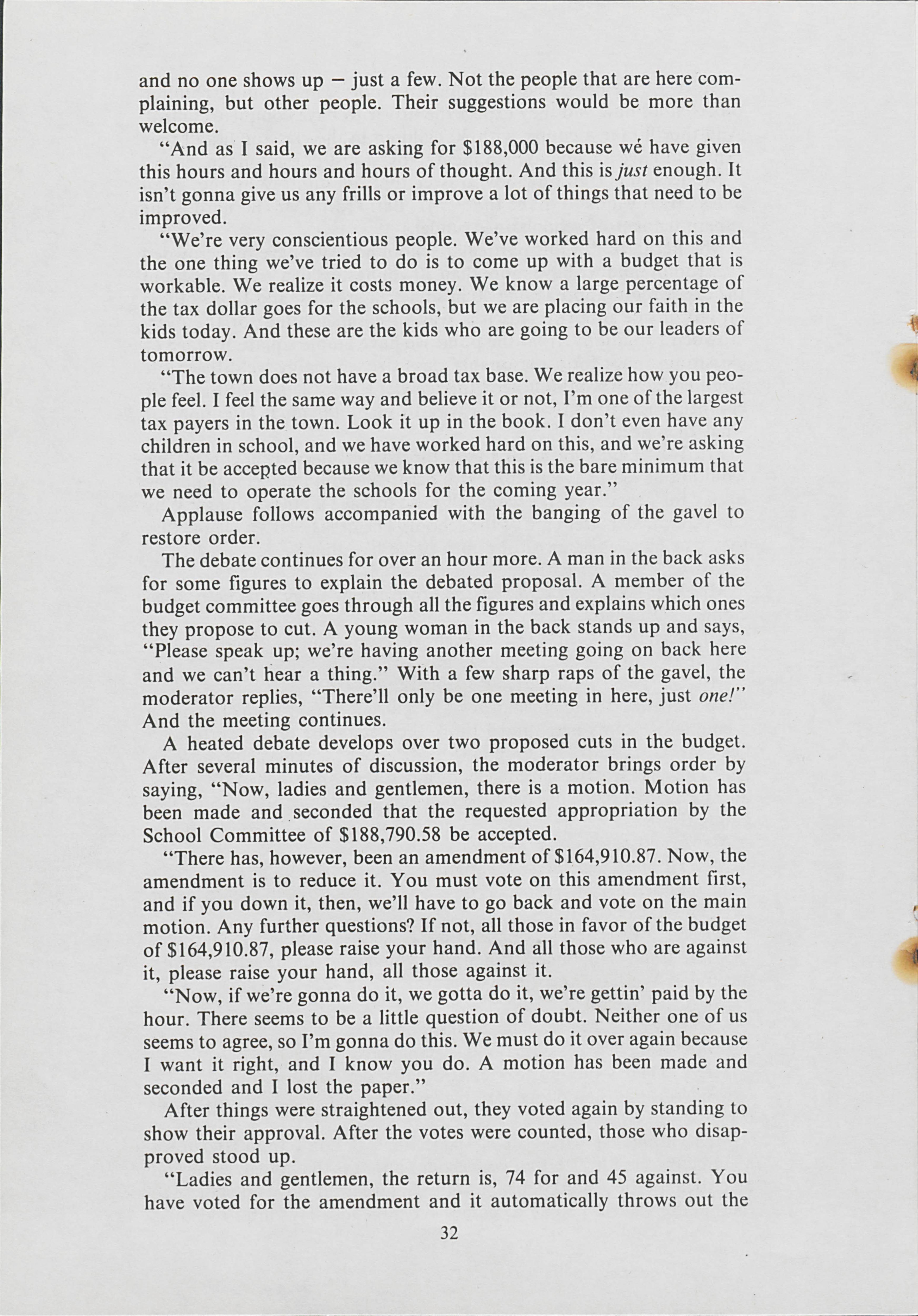 Heading to Arundel to hear old time democracy, Valerie Gould and Anne Pierter go to a town meeting. Gould and Pierter document the meeting and the issues that were discussed.