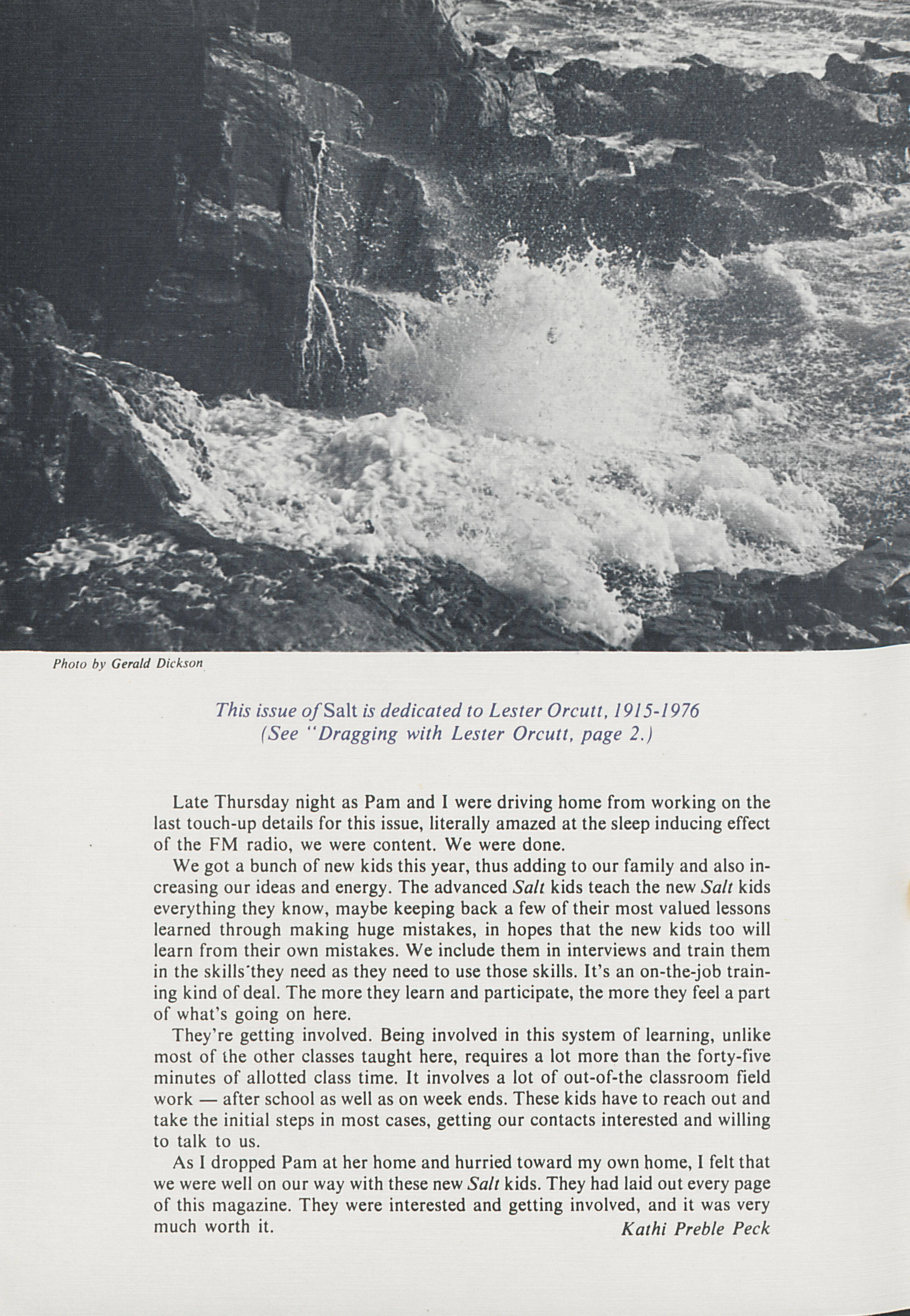 Kathi Preble Peck introduces readers to the stories in the February 1977 Salt Magazine.