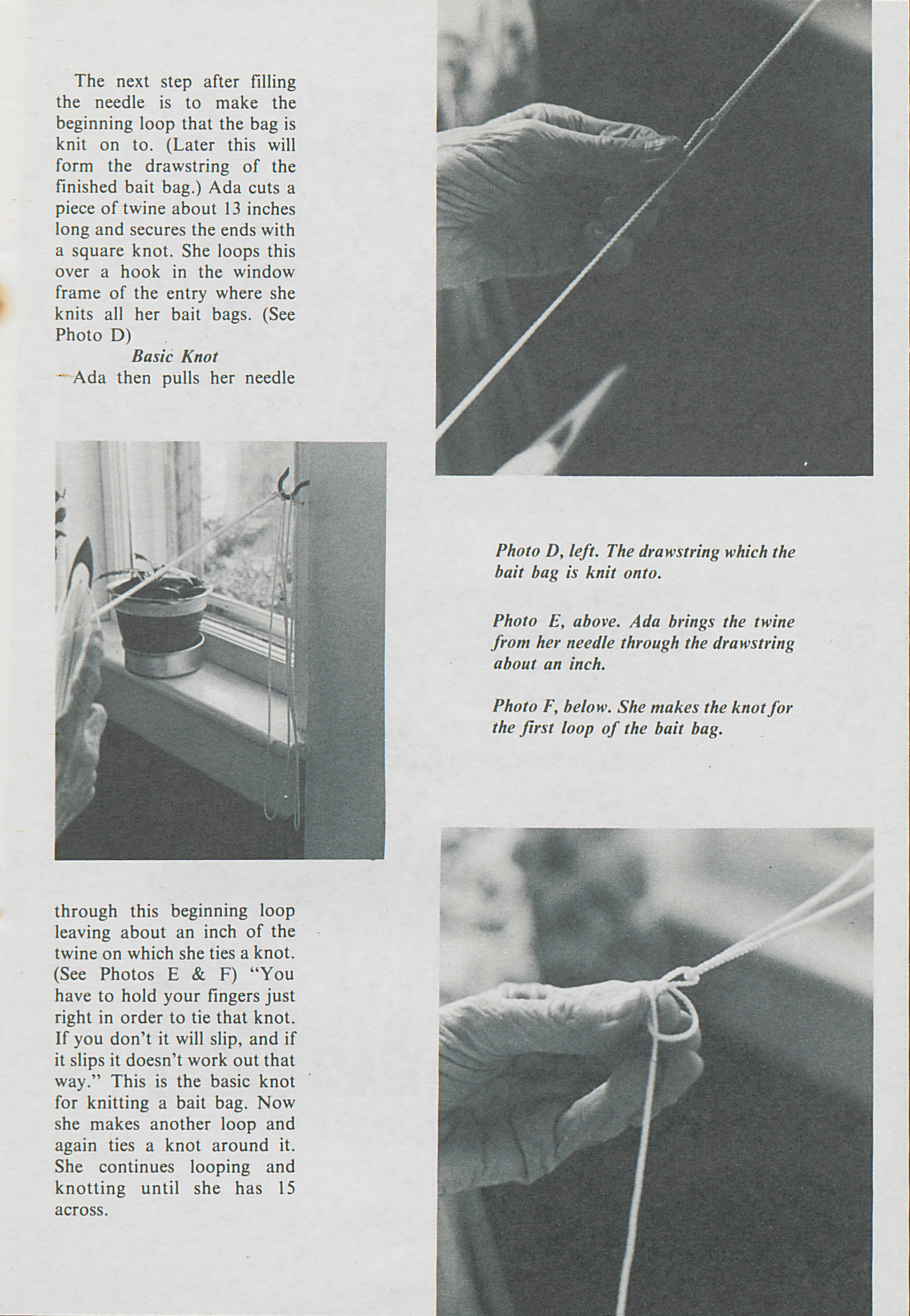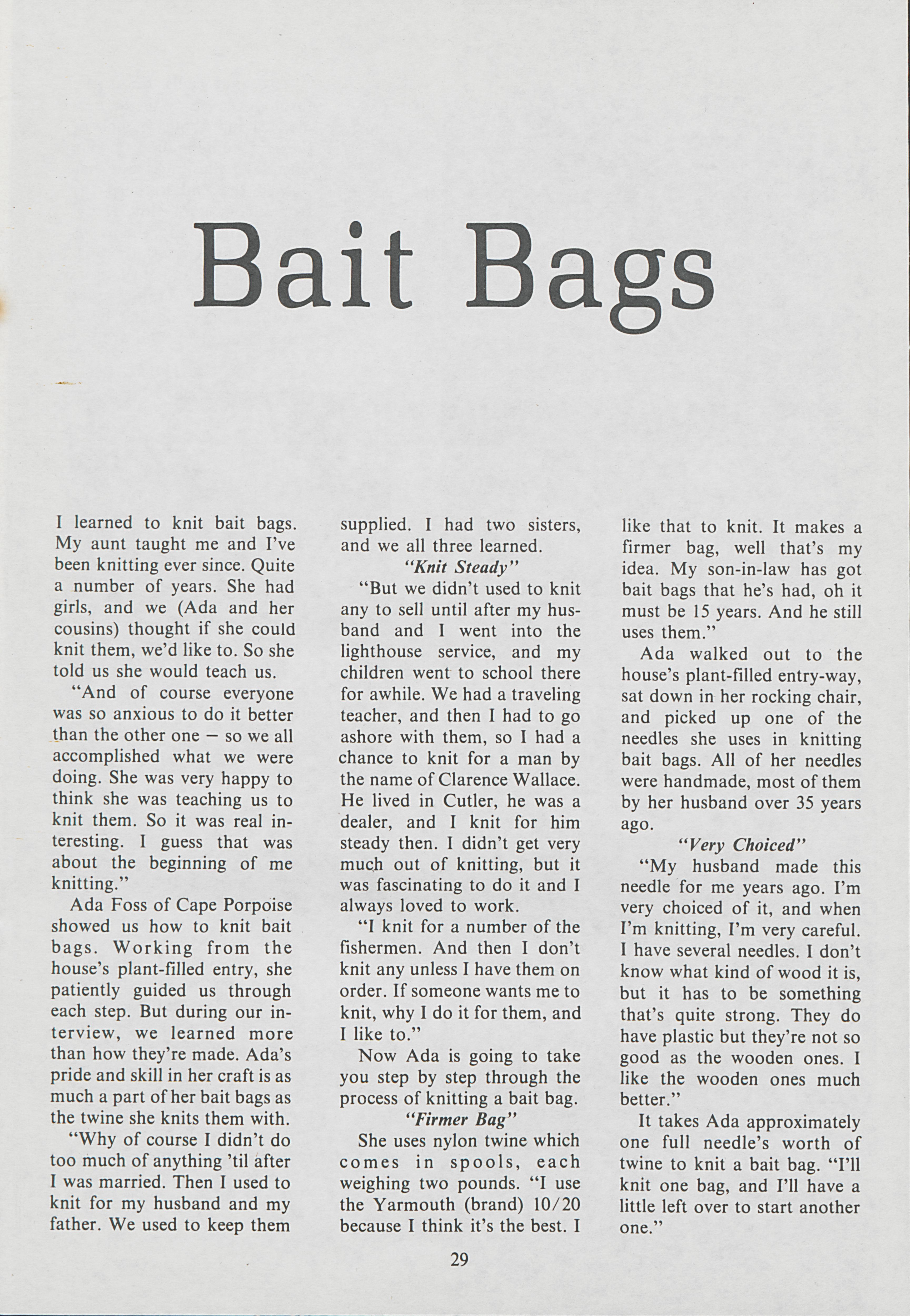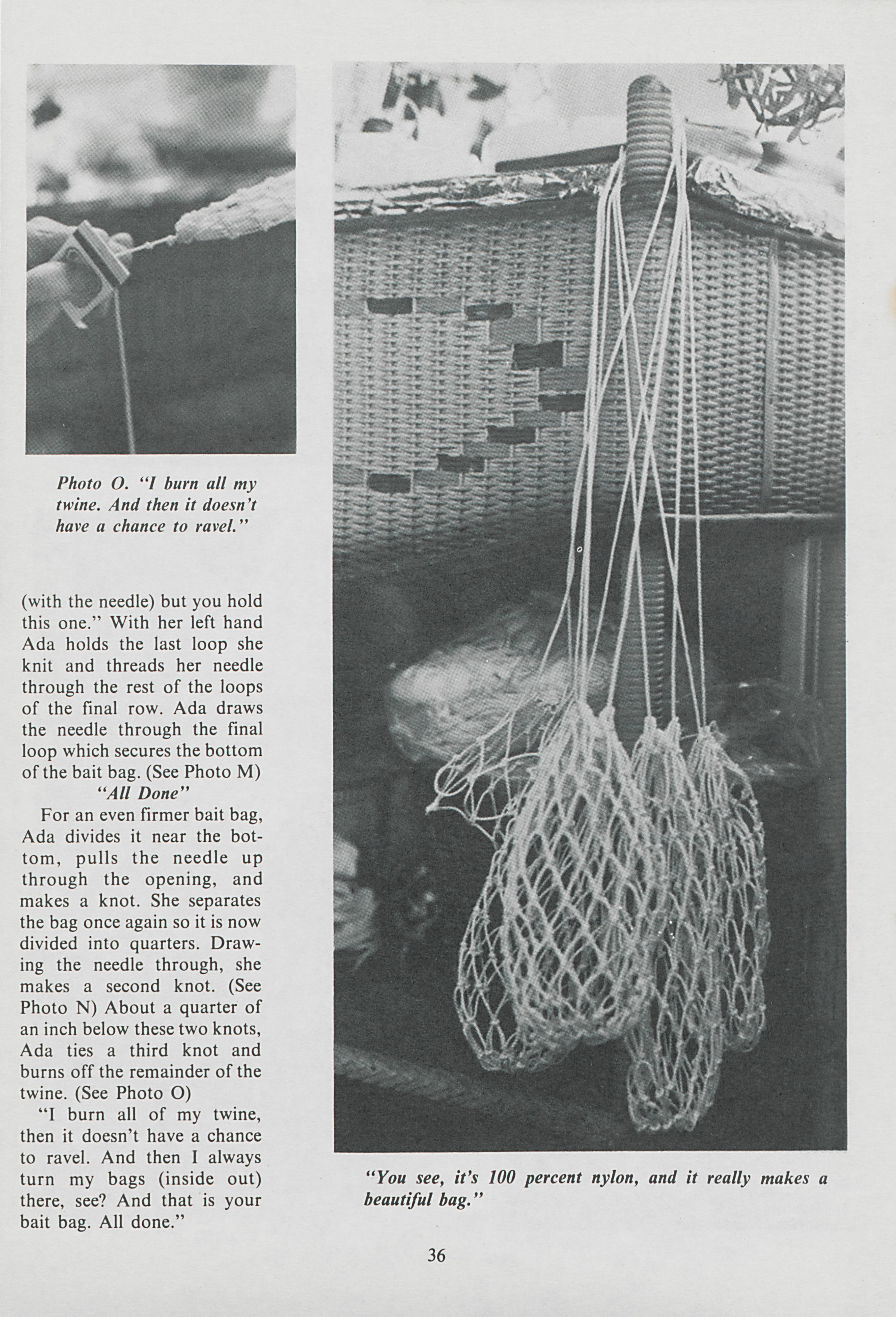 Knitting bait bags since the age of ten, Ada Foss has been creating them ever since. Anne Pierter visits Foss to learn how to create the bags and the work that goes into each piece.
