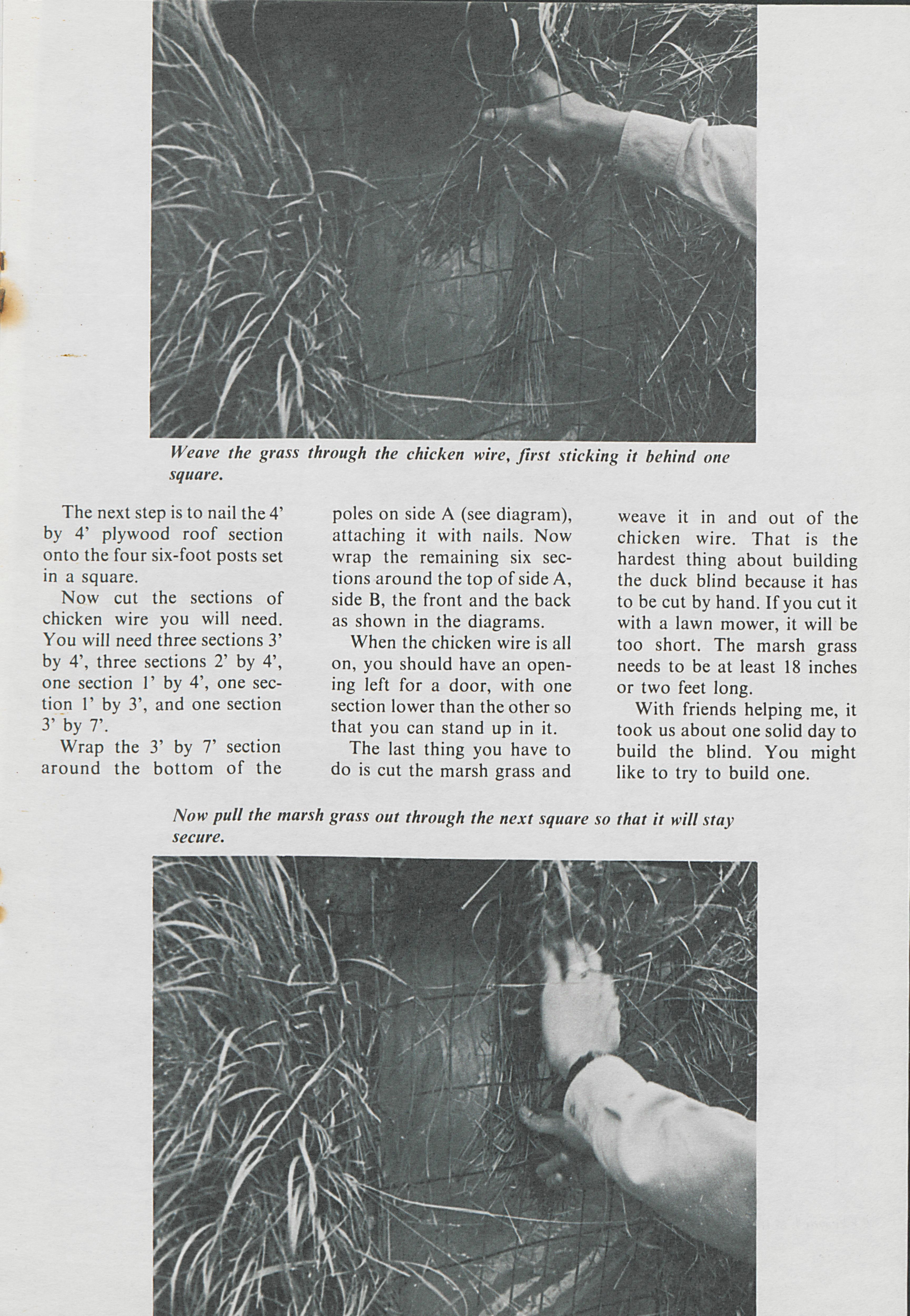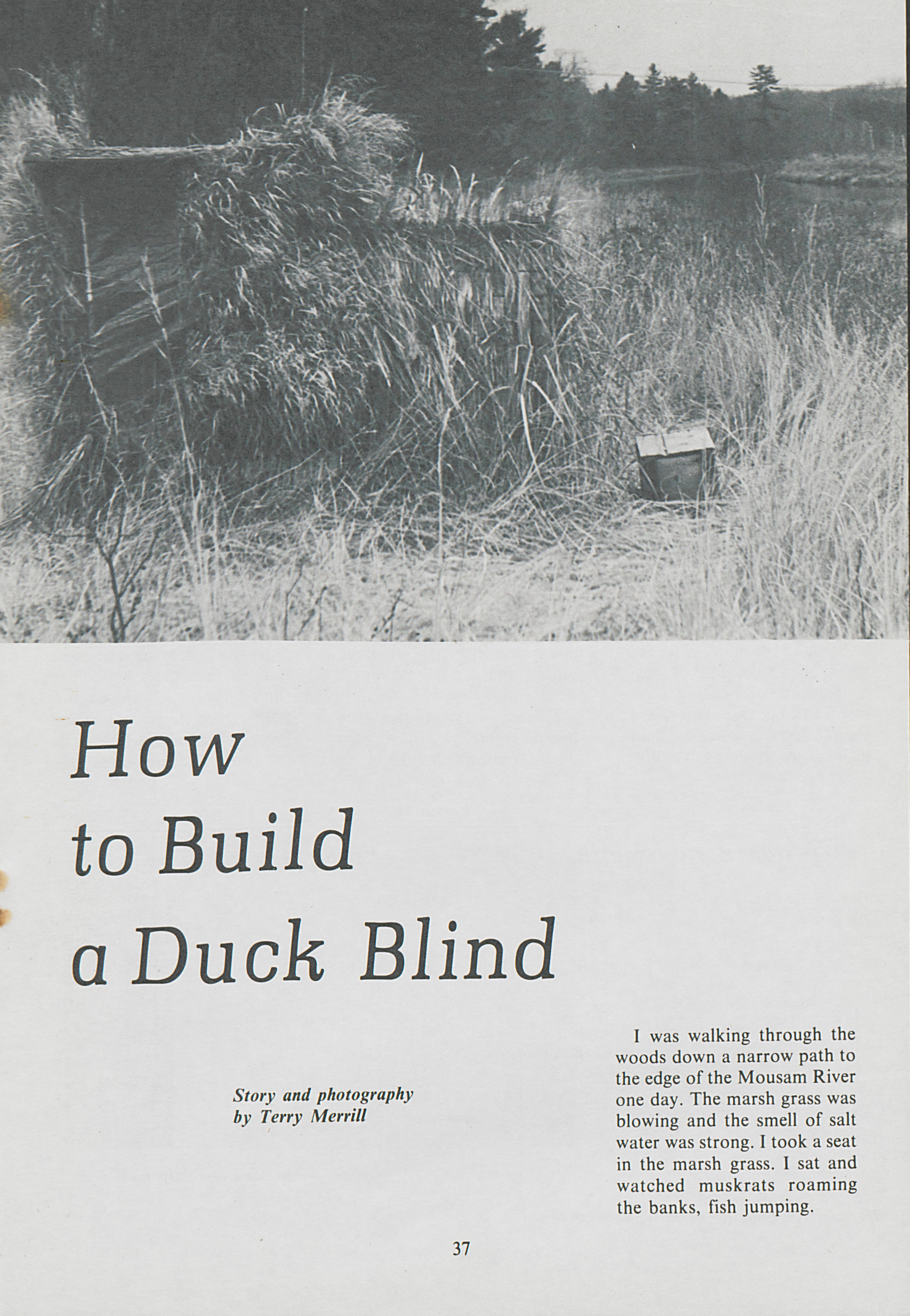 Looking for something to do one day, Terry Merrill decided to build a duck blind. Merrill describes the building process and how duck blinds are used.