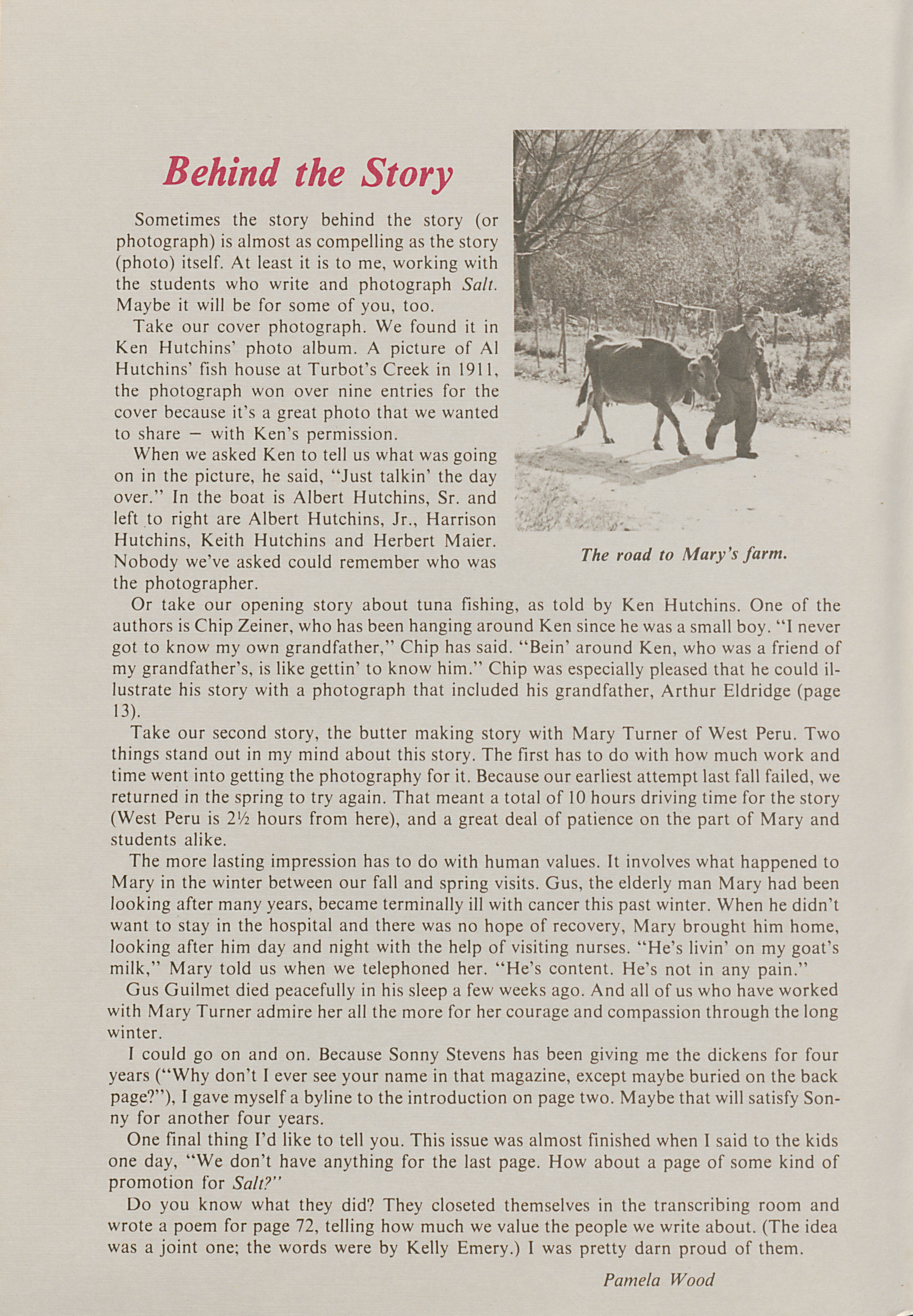 Pamela Wood introduces readers to the stories in the June 1977 Salt Magazine.