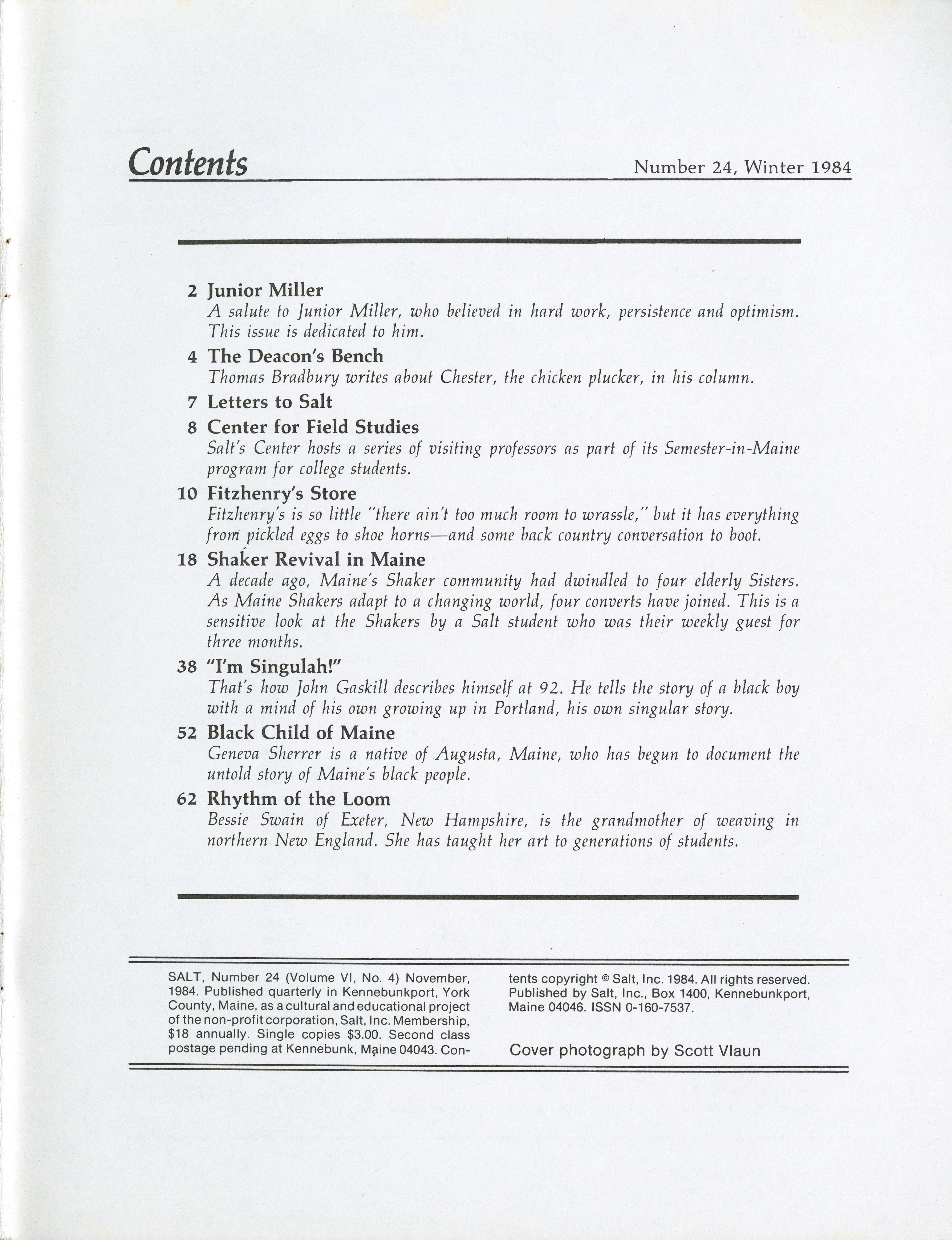 November 1984 Salt Magazine, Table of Contents