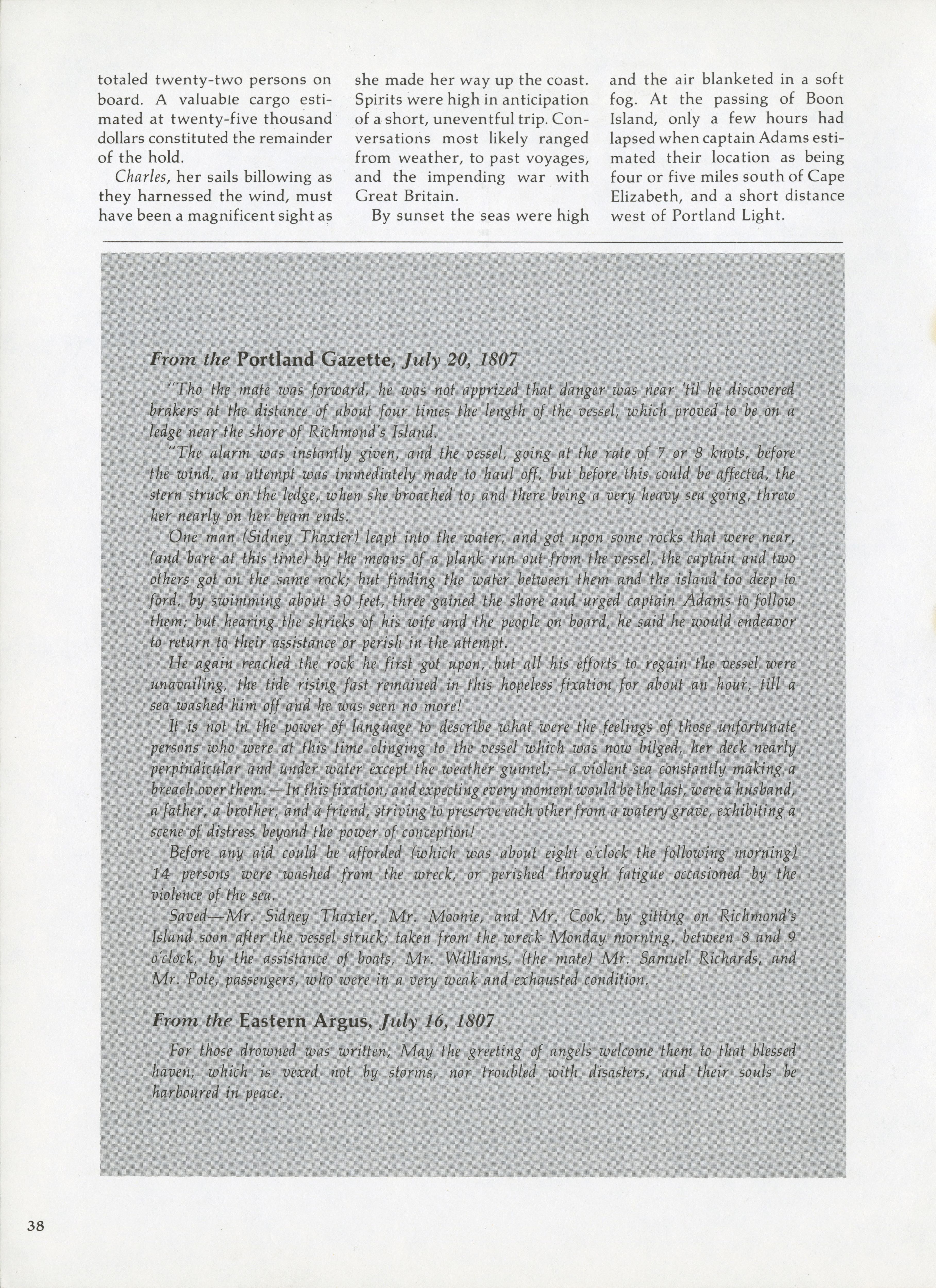 Dorothy O'Keefe recounts the tale of the the Schooner Charles.