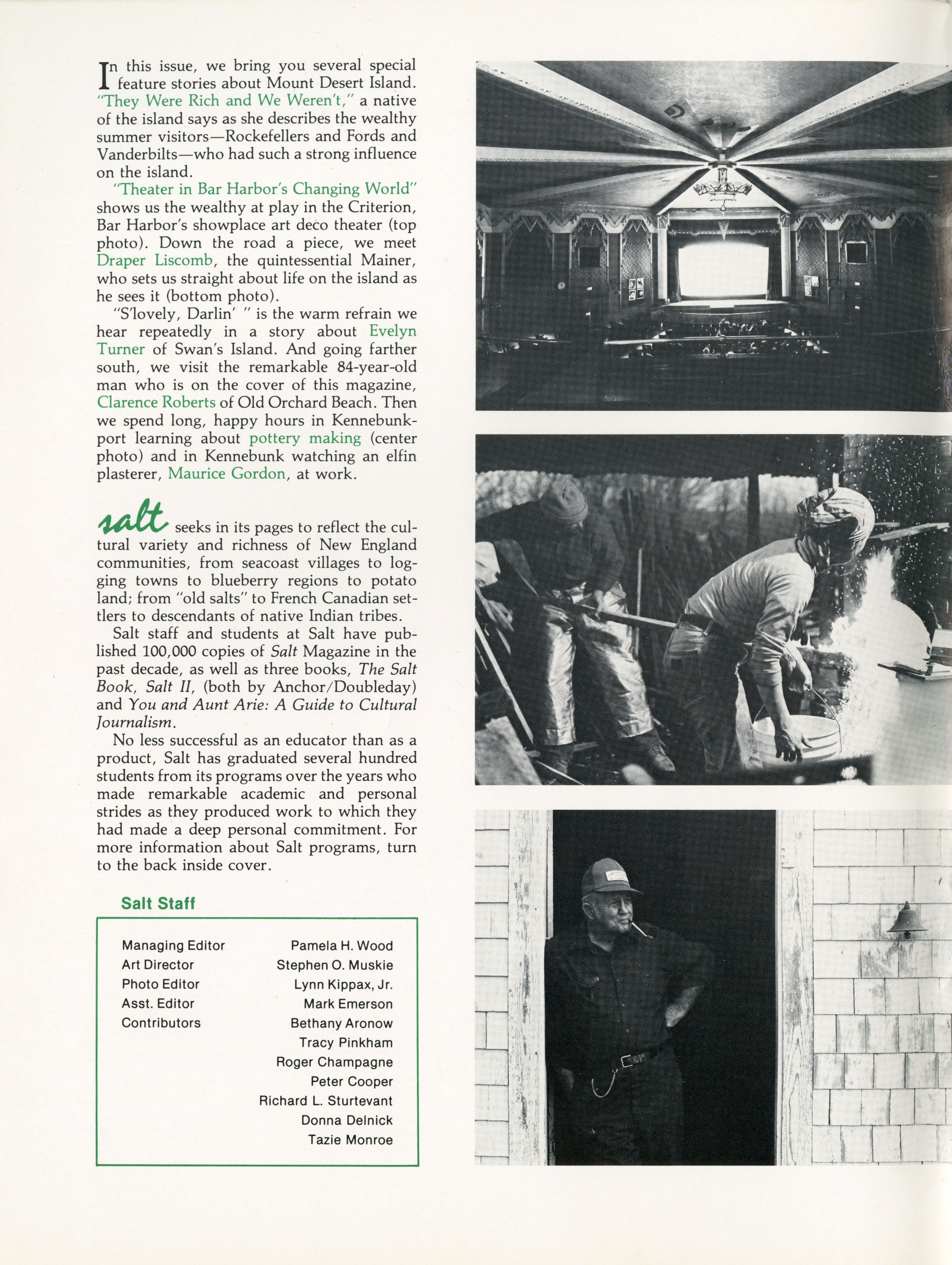 Inside front cover for the January 1982 Salt Magazine, with issue information.