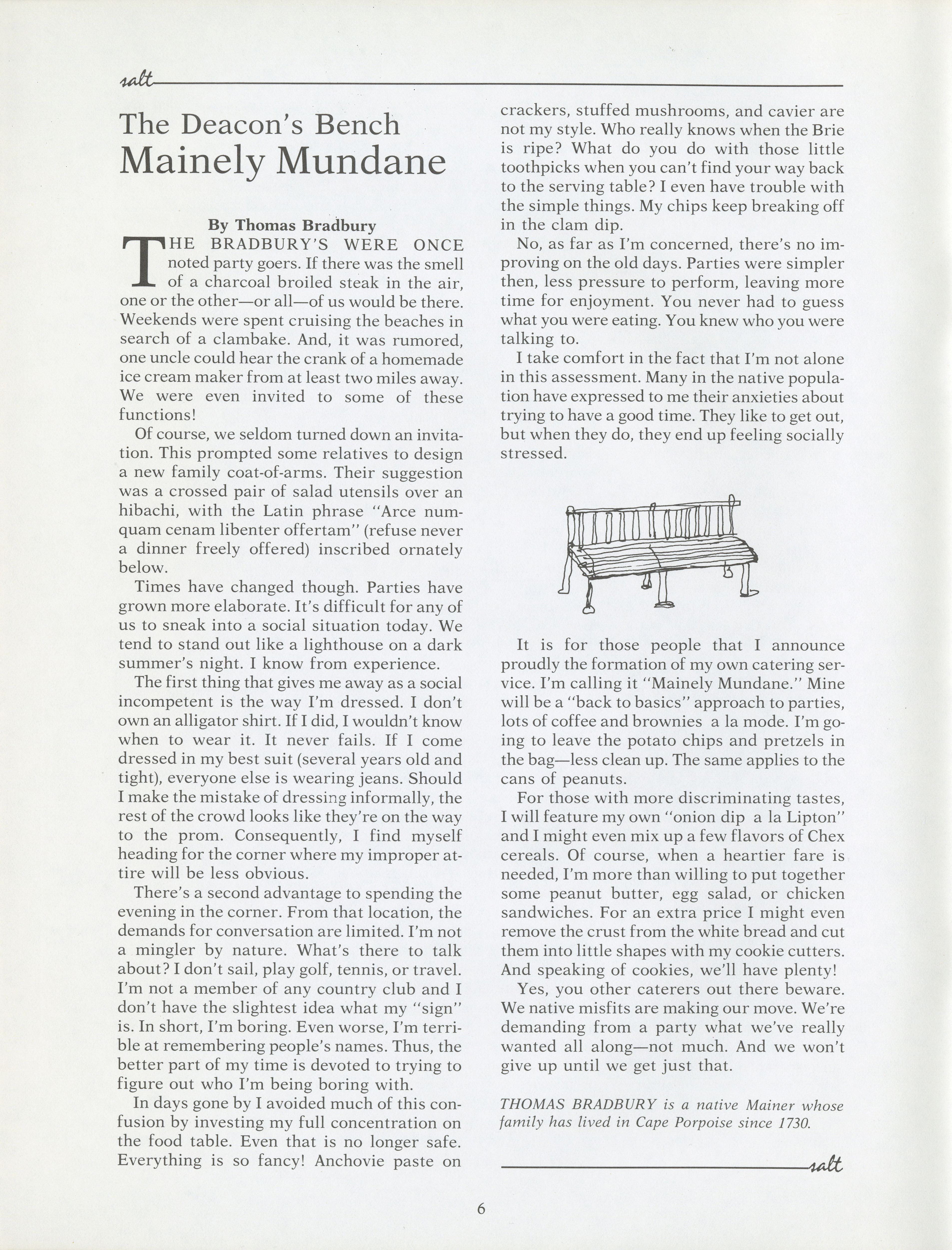 Column by Thomas Bradbury on the native Mainer's attitude towards party going.