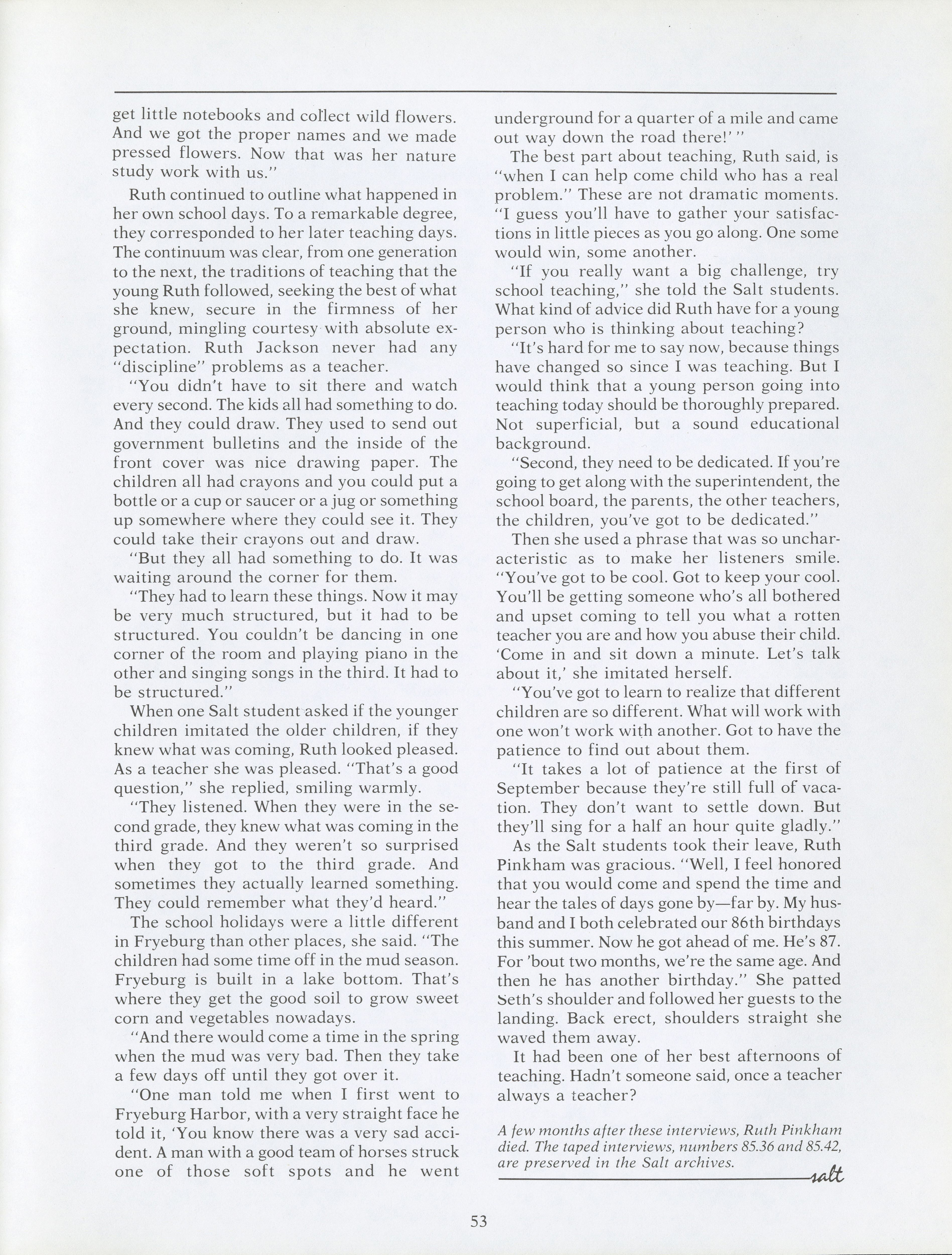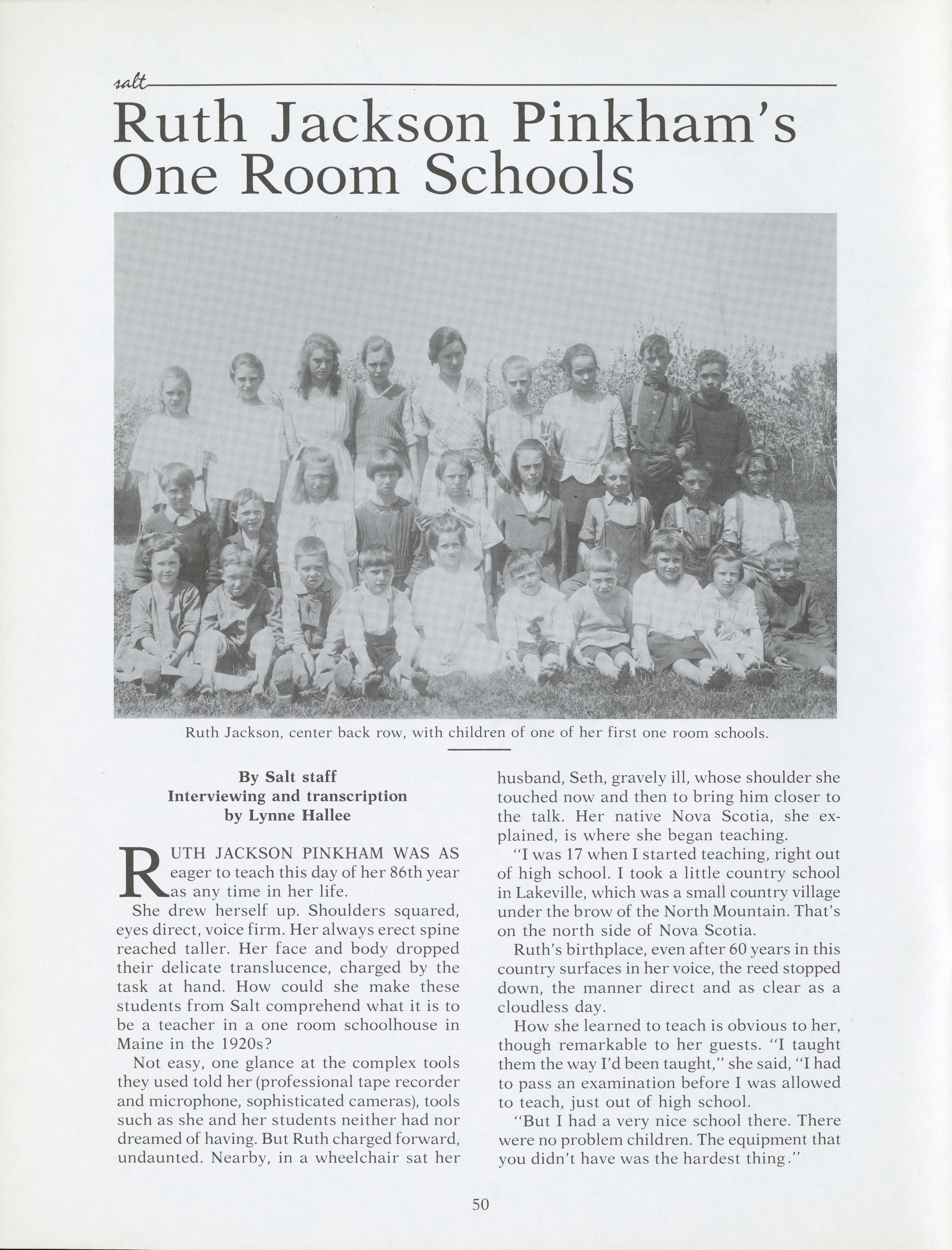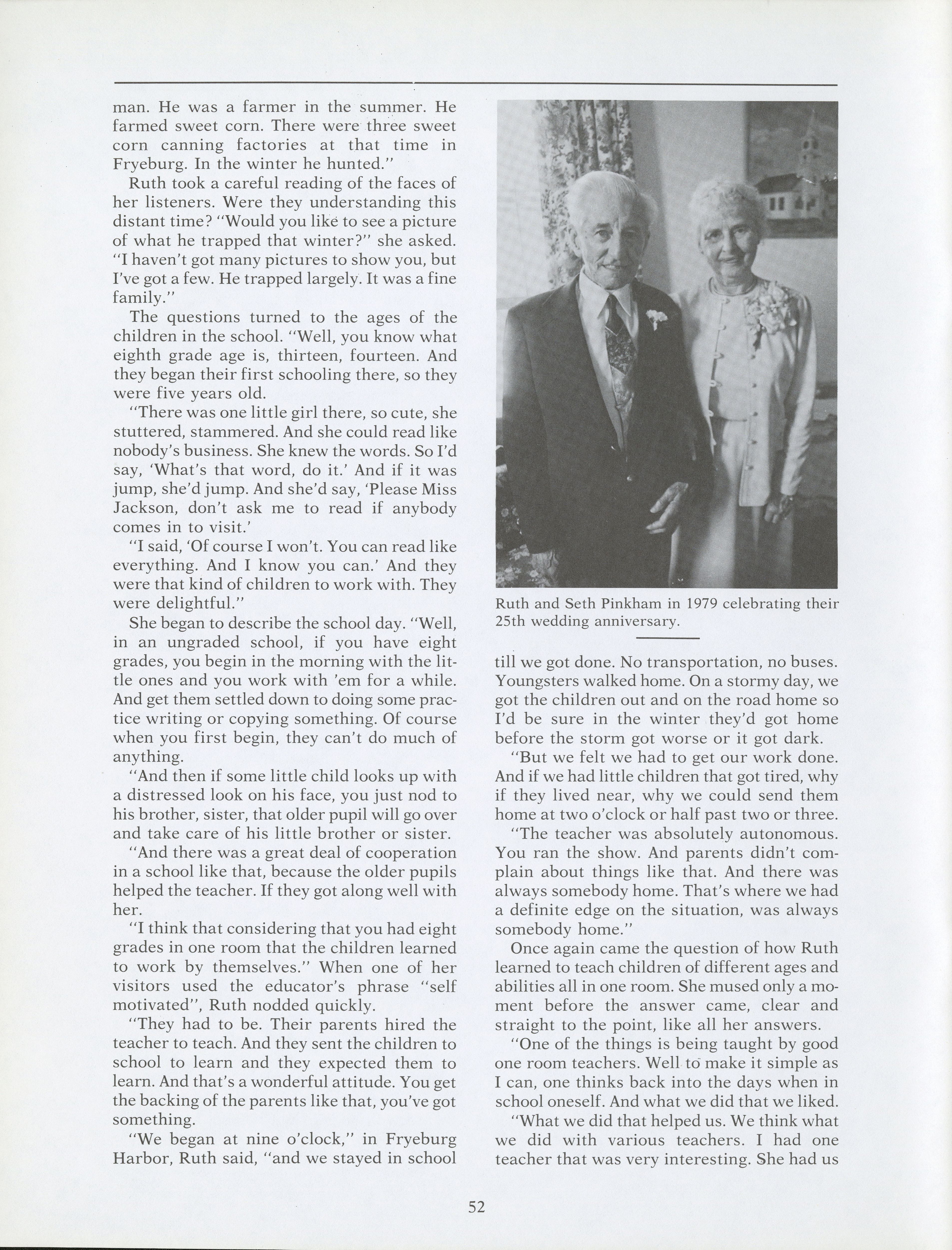 Ruth Pinkham recounts her experiences going to and teaching in a one room schoolhouse.