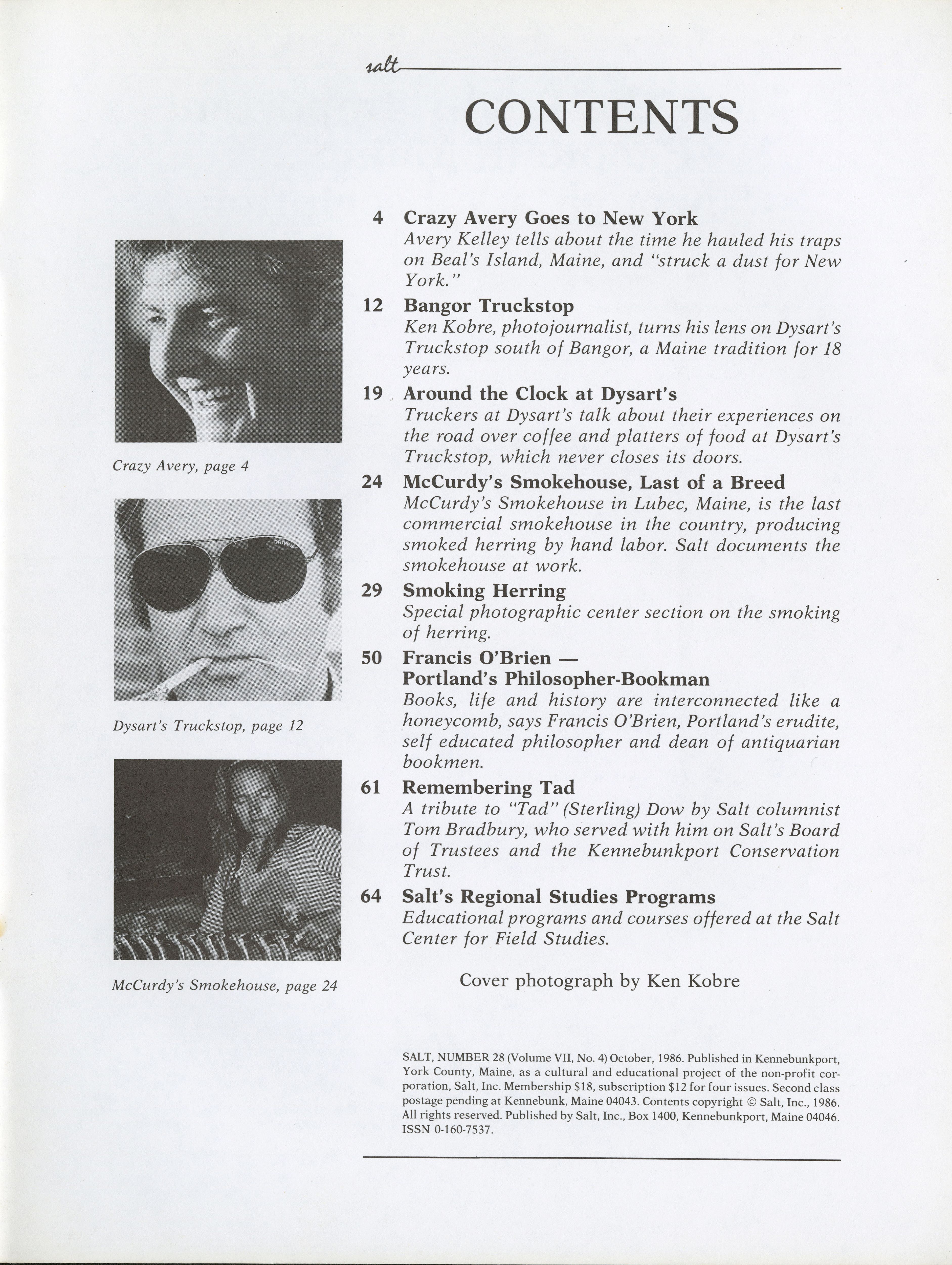 October 1986 Salt Magazine, Table of Contents