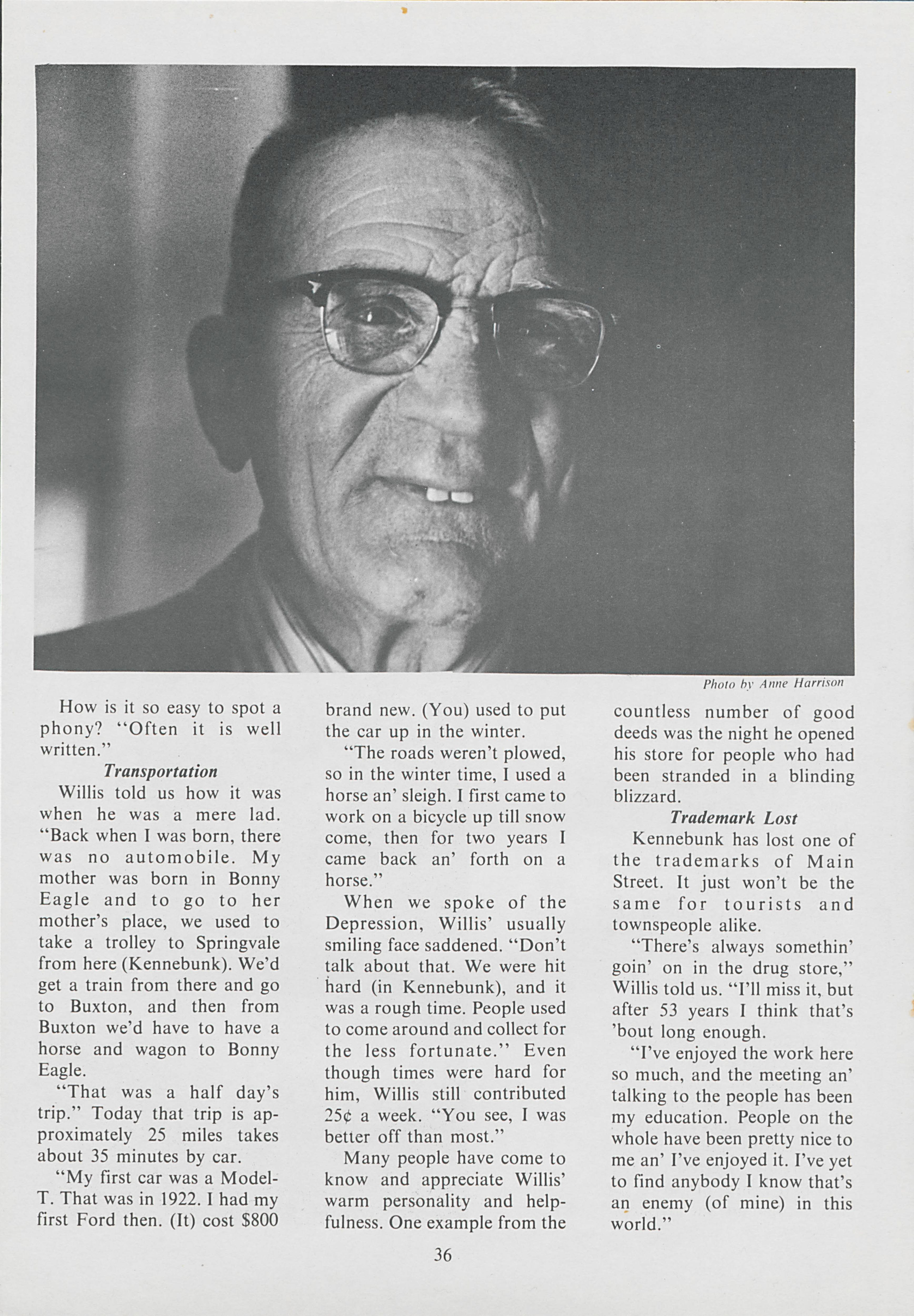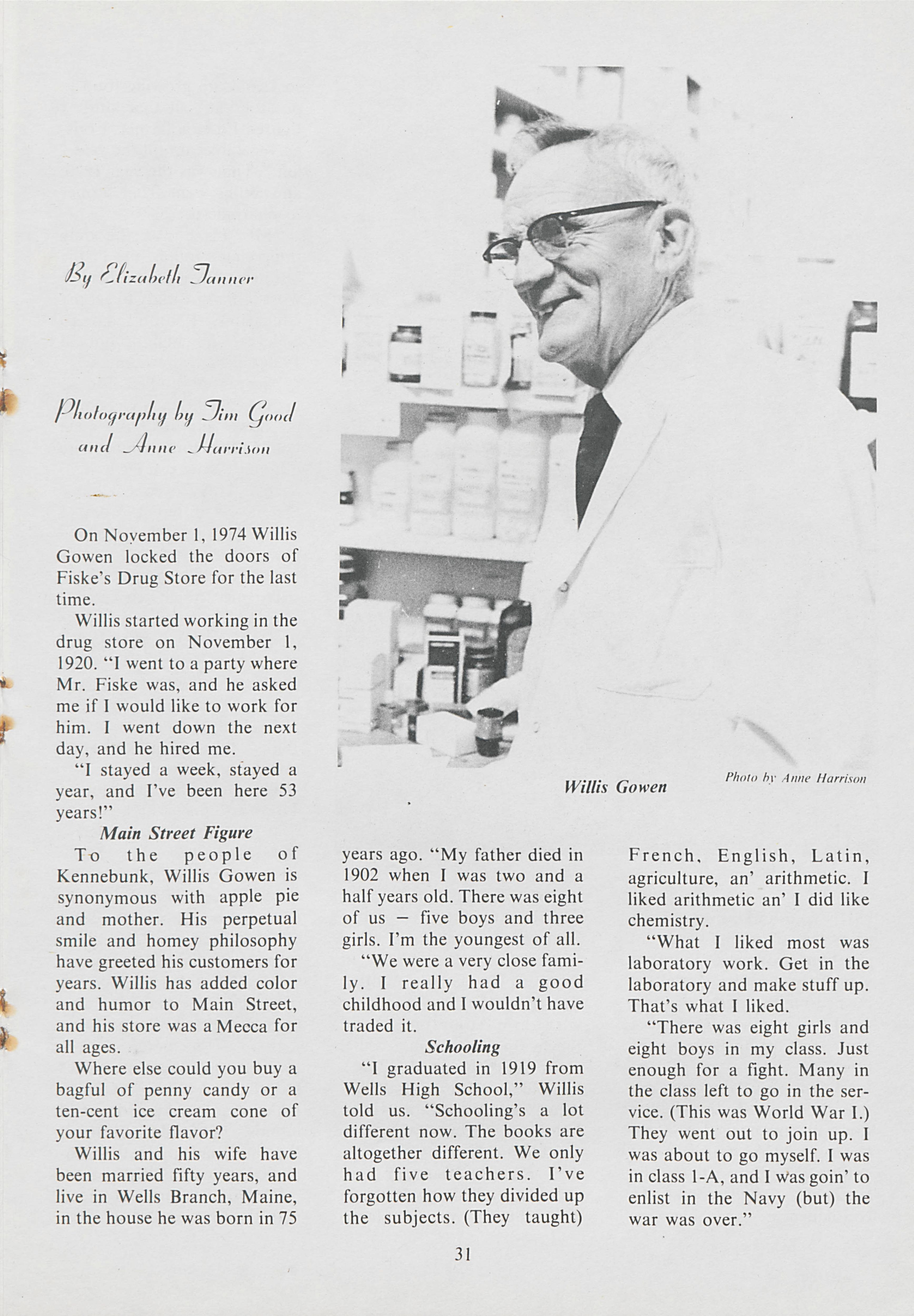 In Kennebunk, Willis Gowen runs a local drug store. Elizabeth Turner documents the work Gowen has done for his community for over 53 years at his pharmacy.