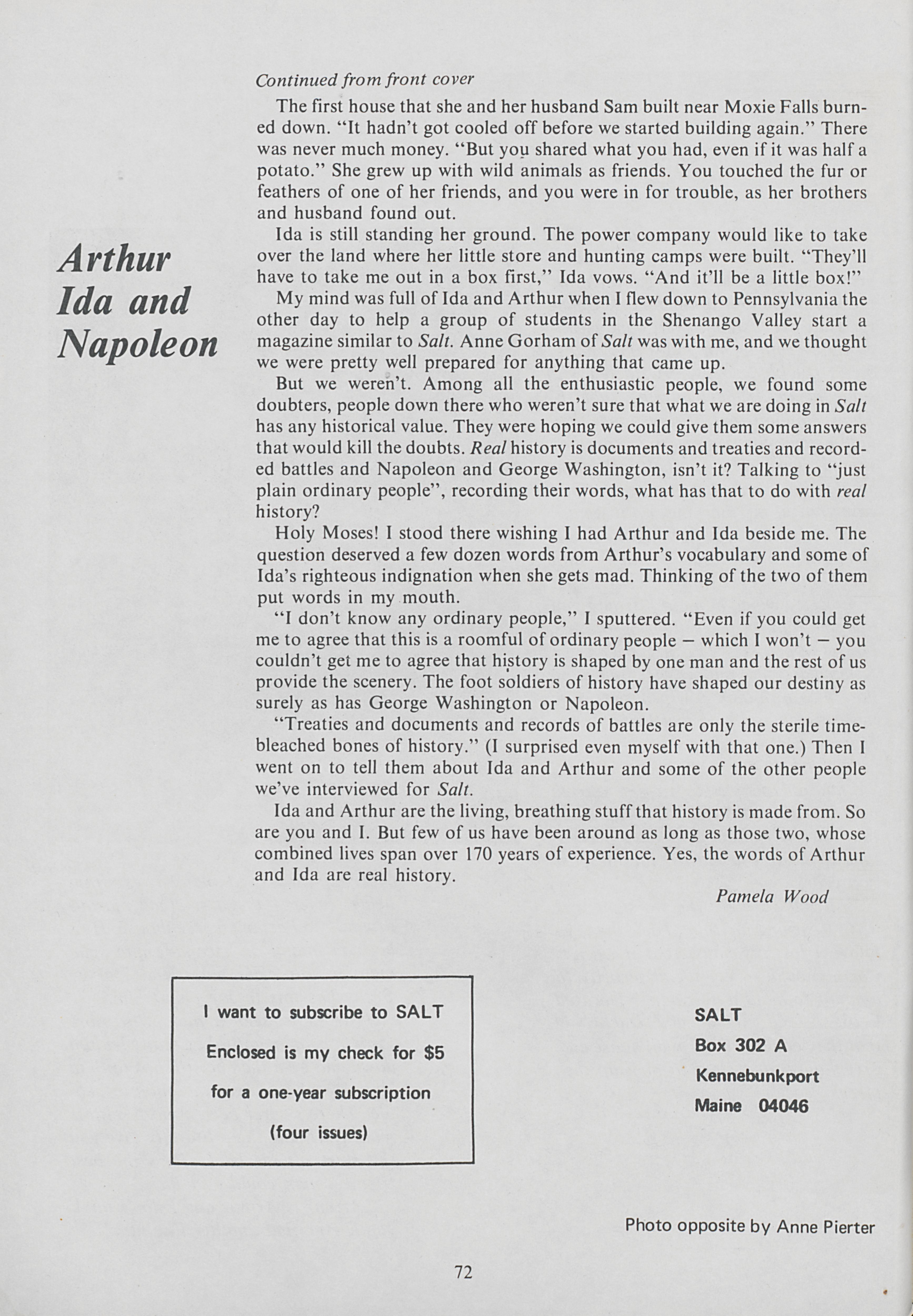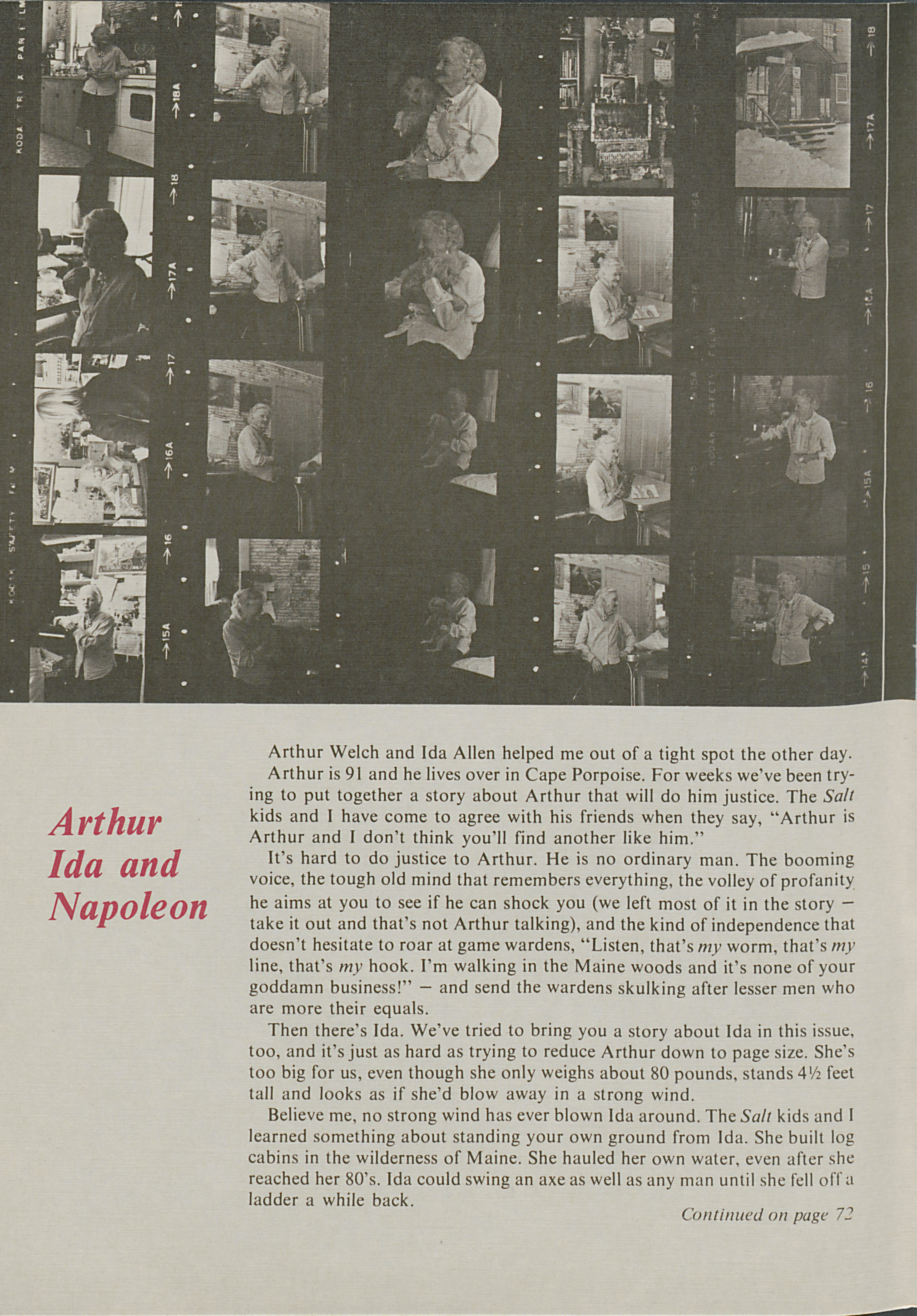 Pamela Wood introduces readers to Ida Allen and Arthur Welch, two individuals featured in the June 1975 Salt Magazine.