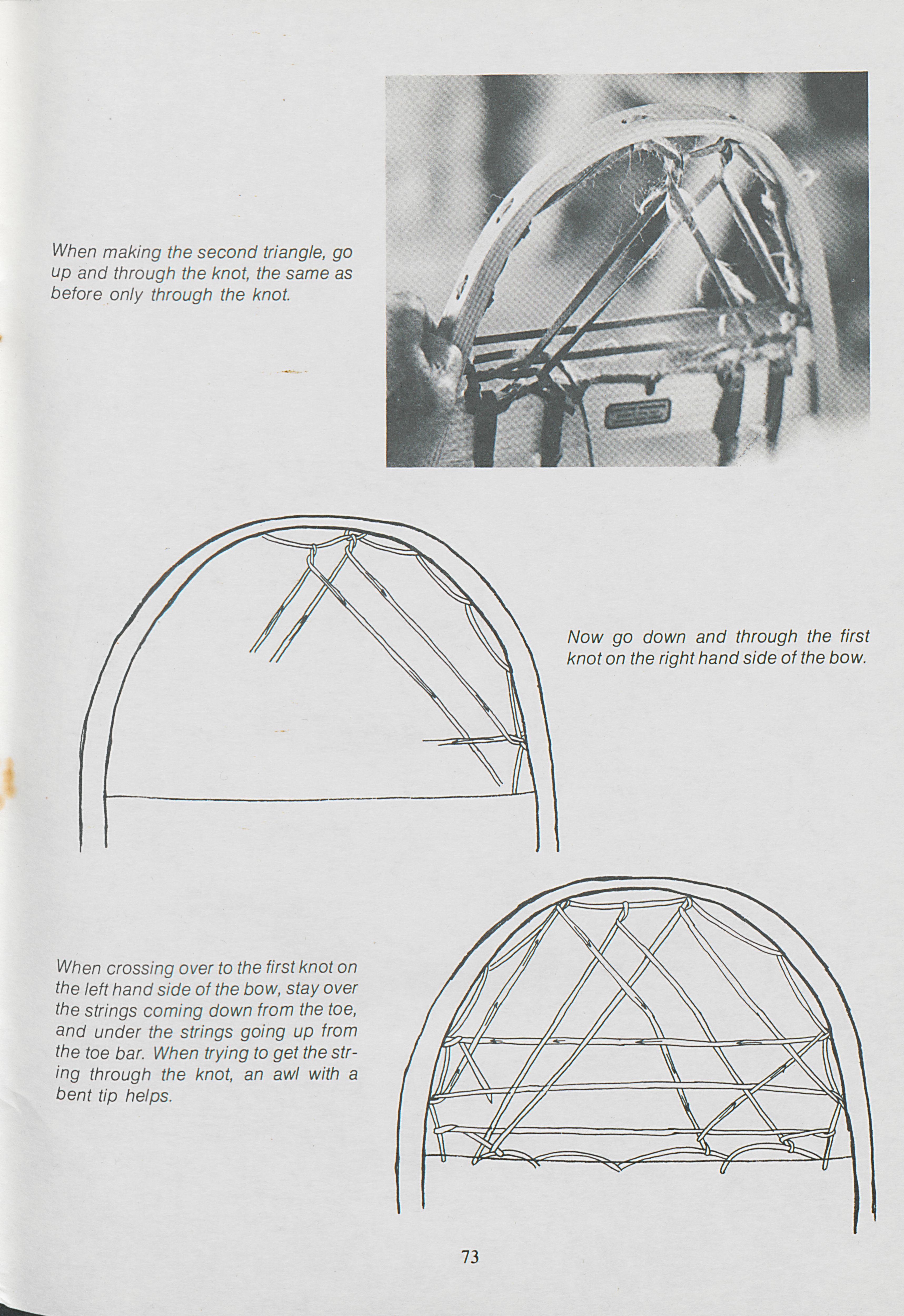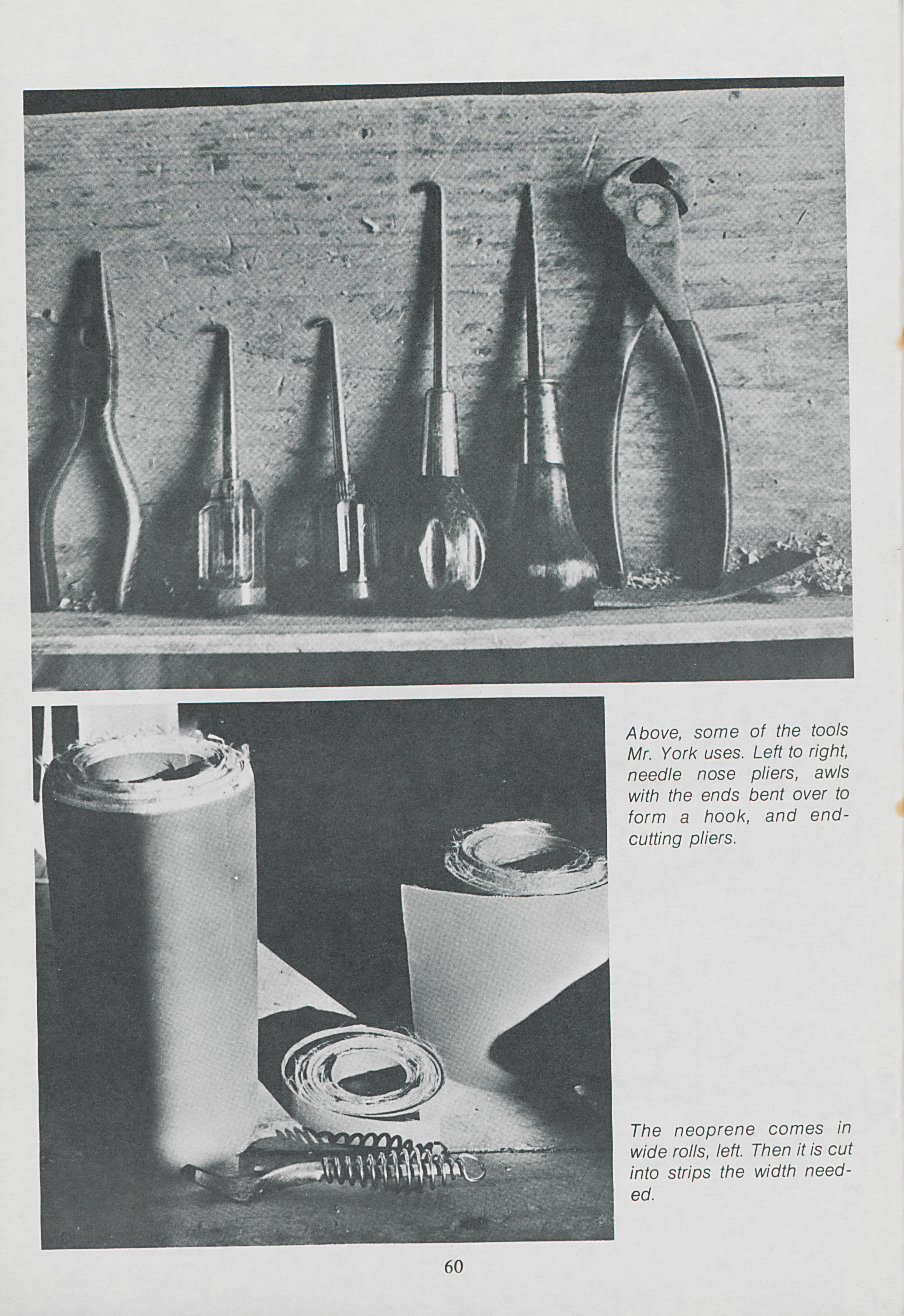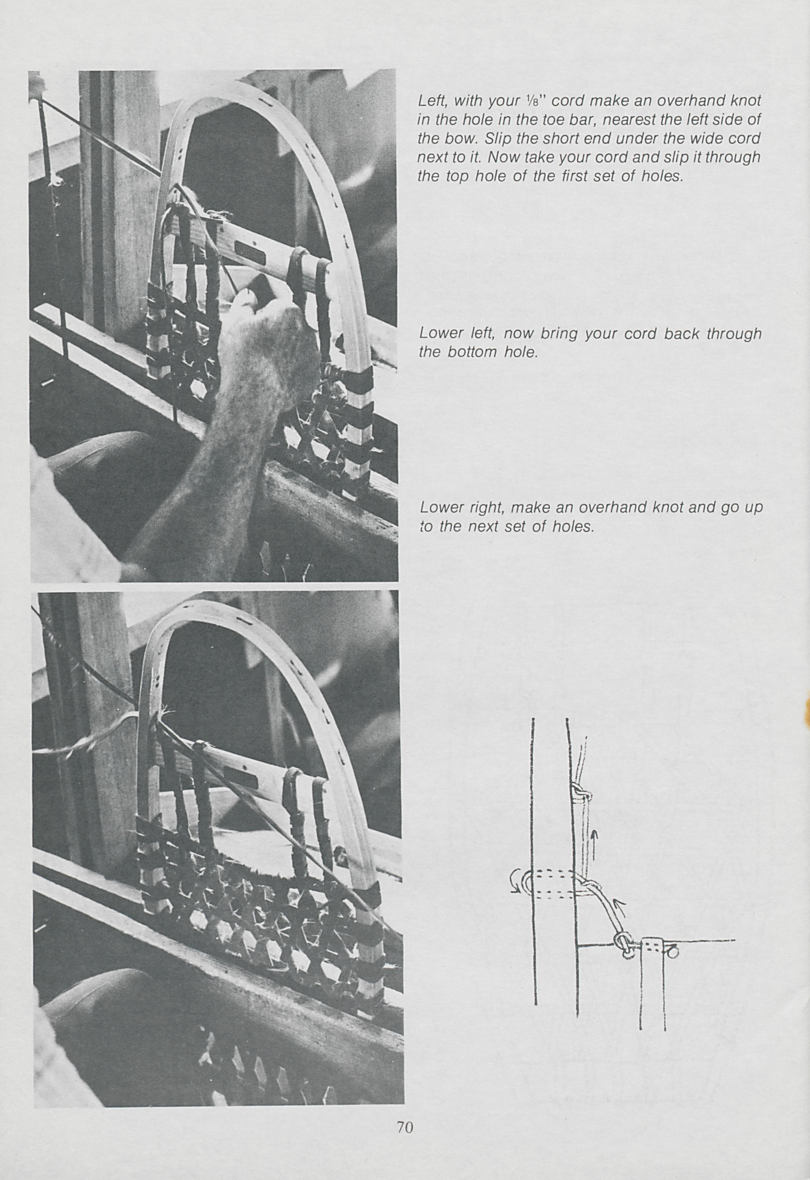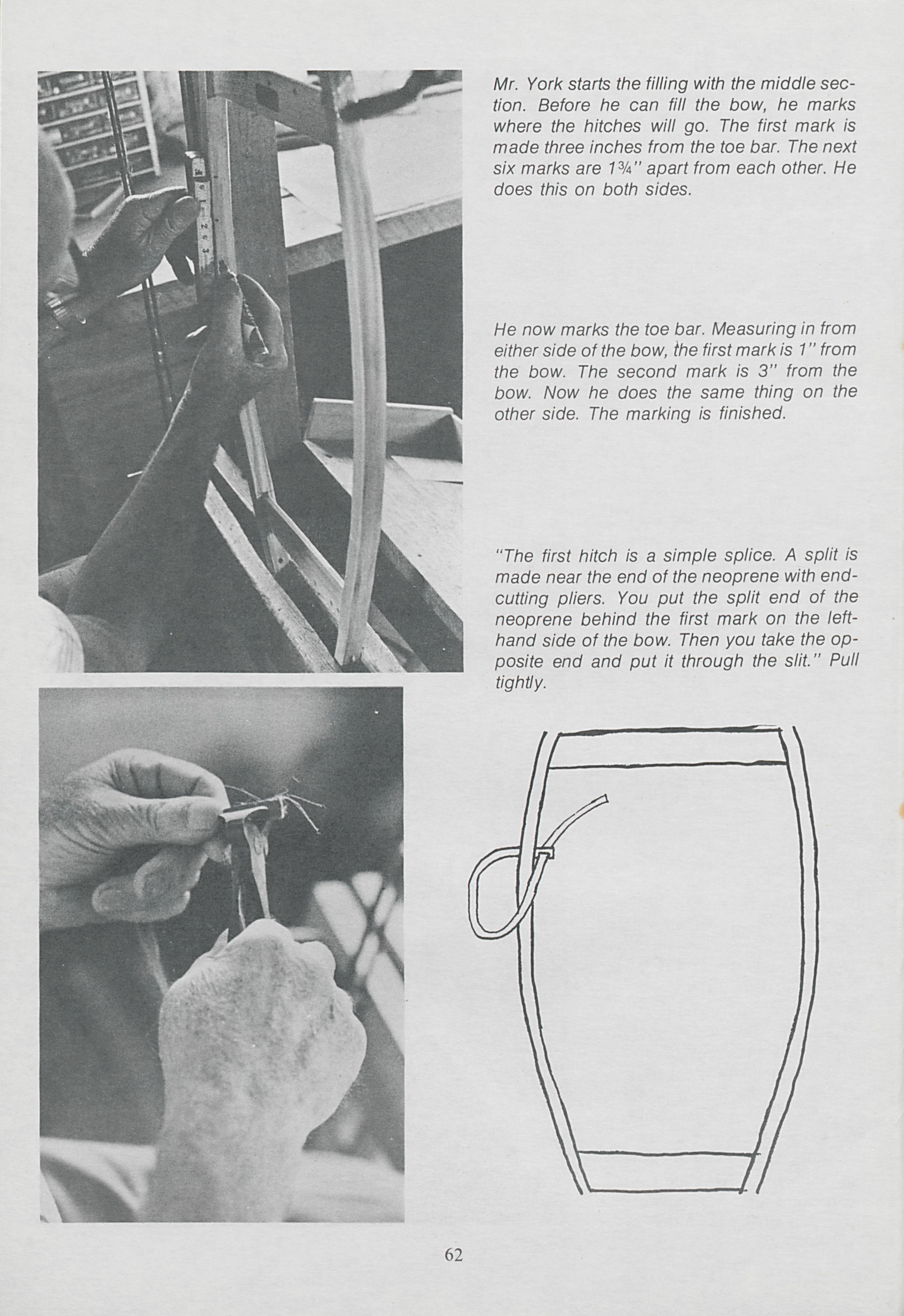 From his workshop in Caratunk, Walter York creates snowshoes. Anne Gorham covers the steps of filling the bows for snowshoes.