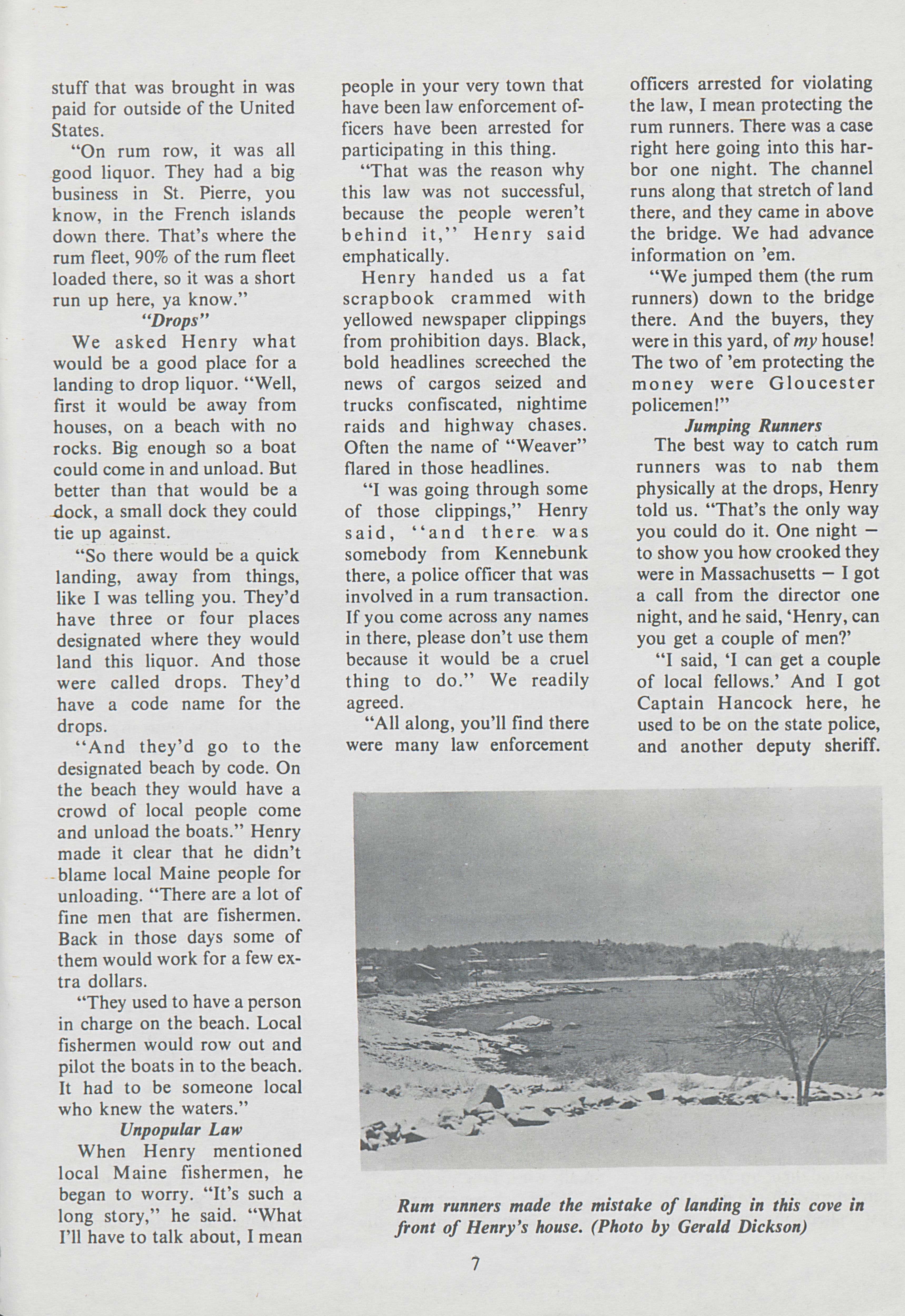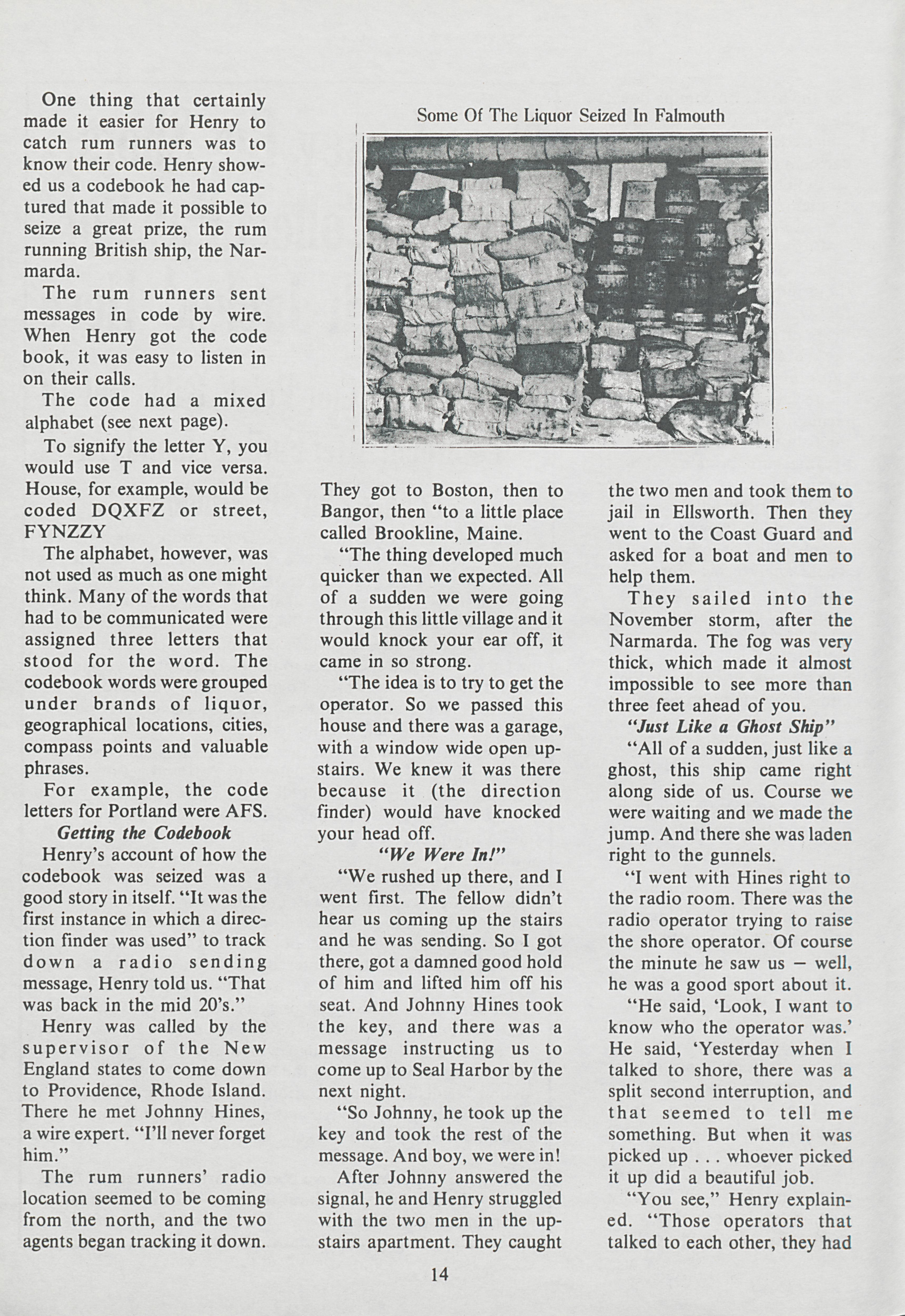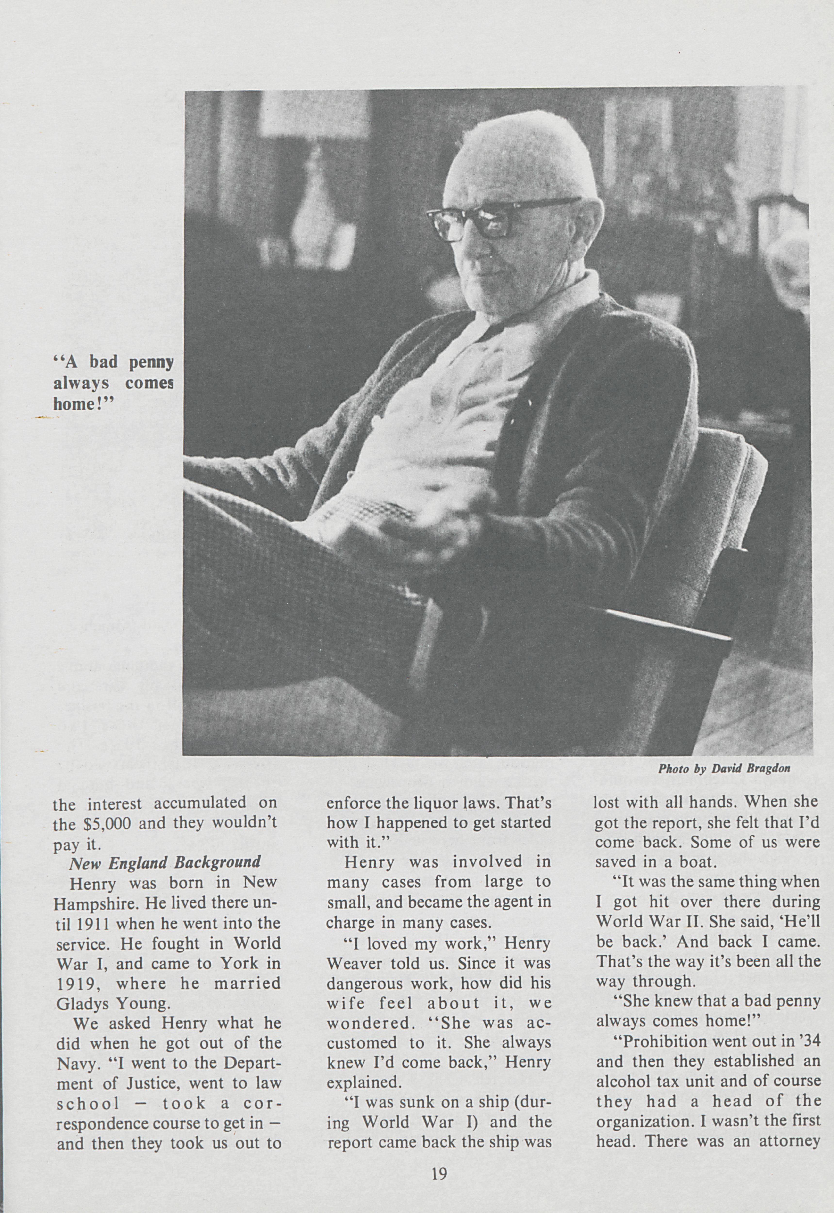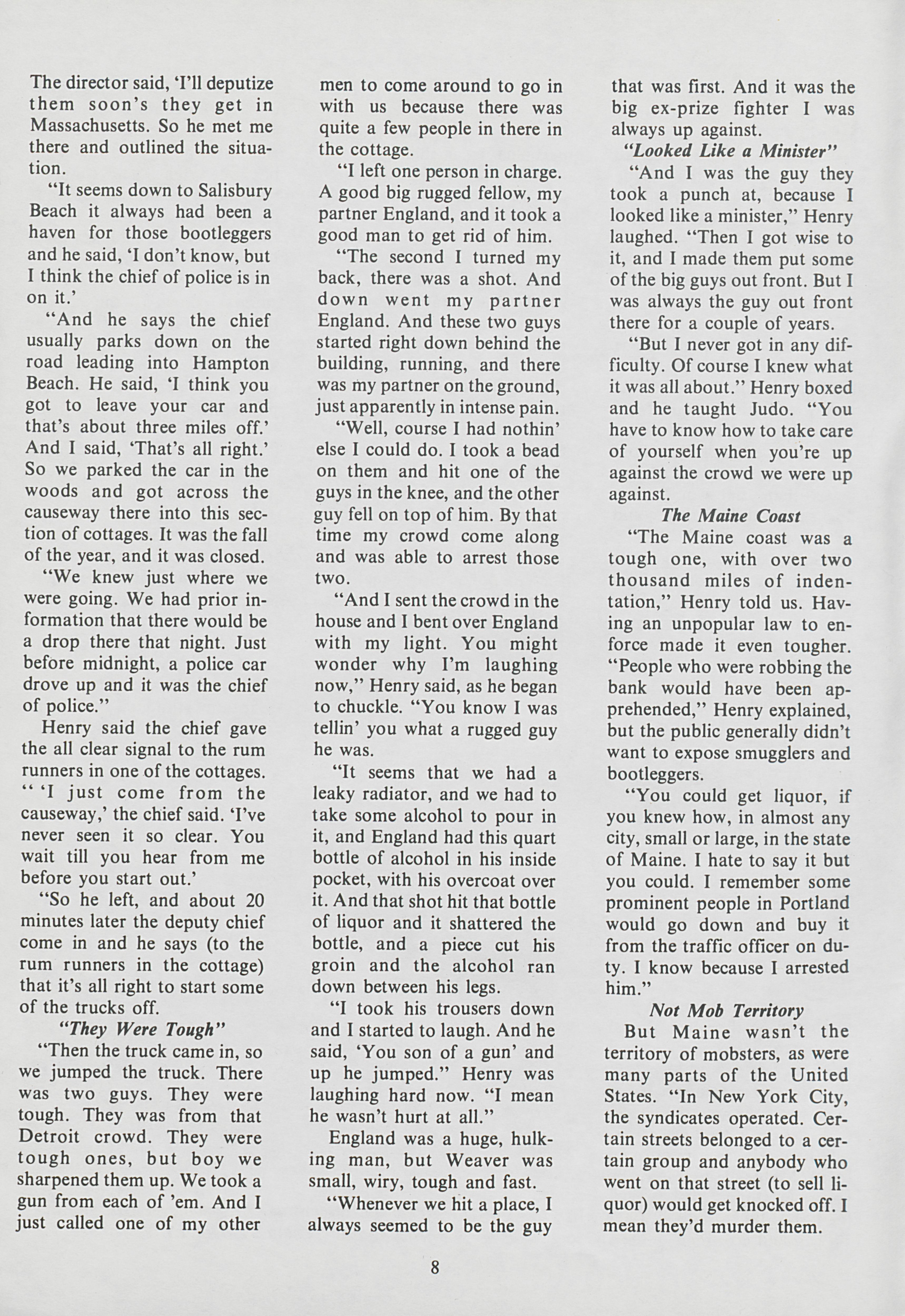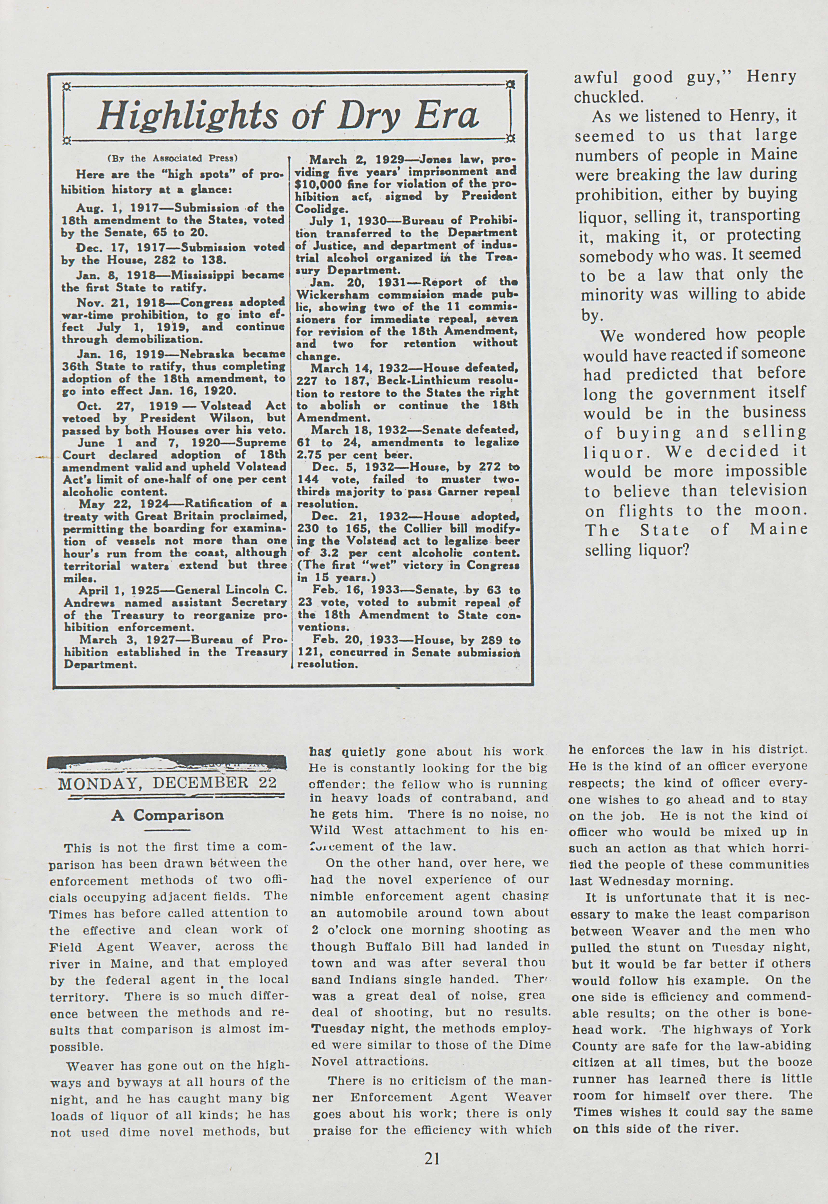 As the chief agent for alcohol control in charge of the state of Maine, Henry Weaver experienced different situations with rum running. Keith Euler and others from Salt speak to Weaver about his experiences and stories as a federal officer during the prohibition era.