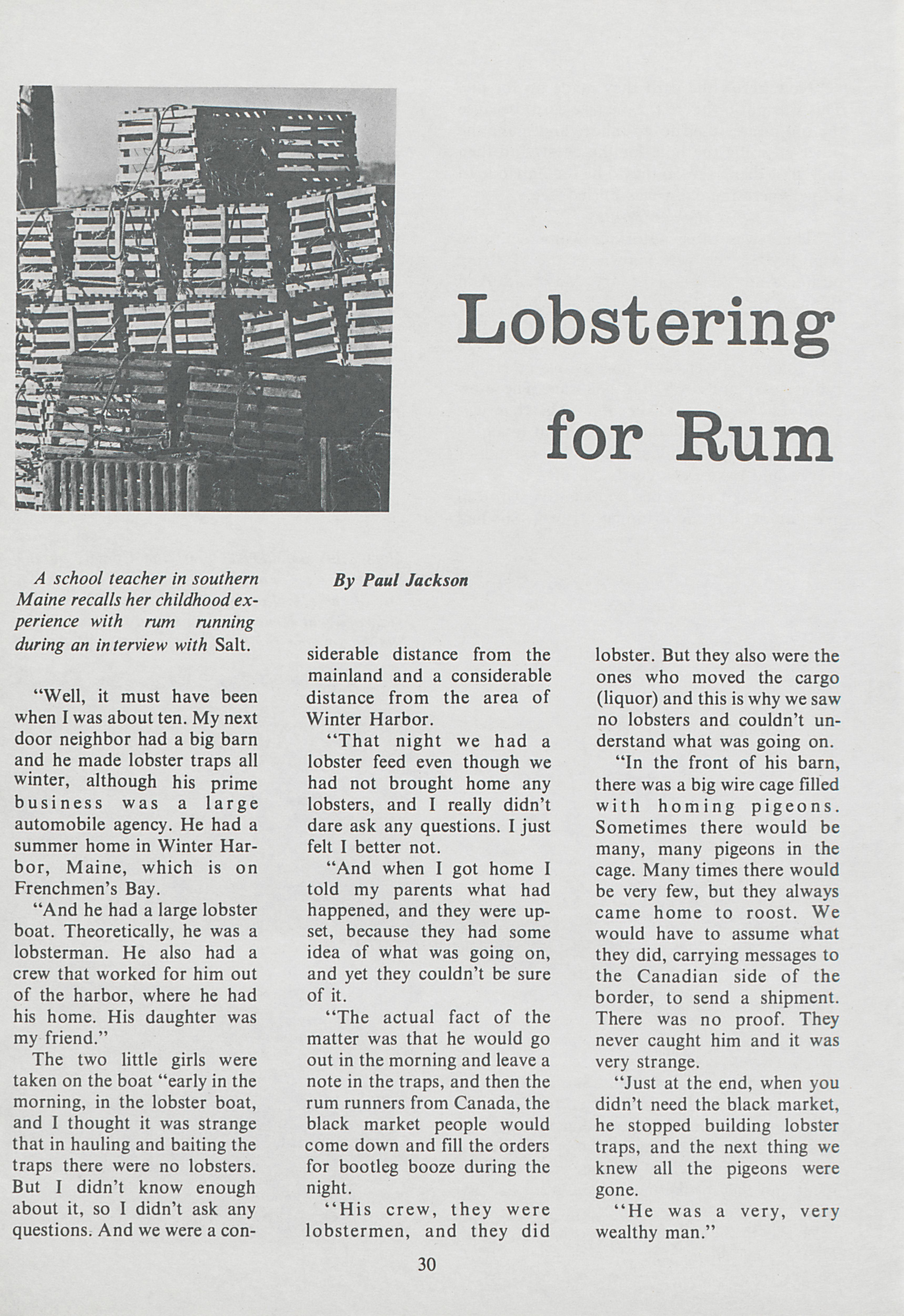 Now a school teacher, one woman recalls her childhood experience with rum running.
