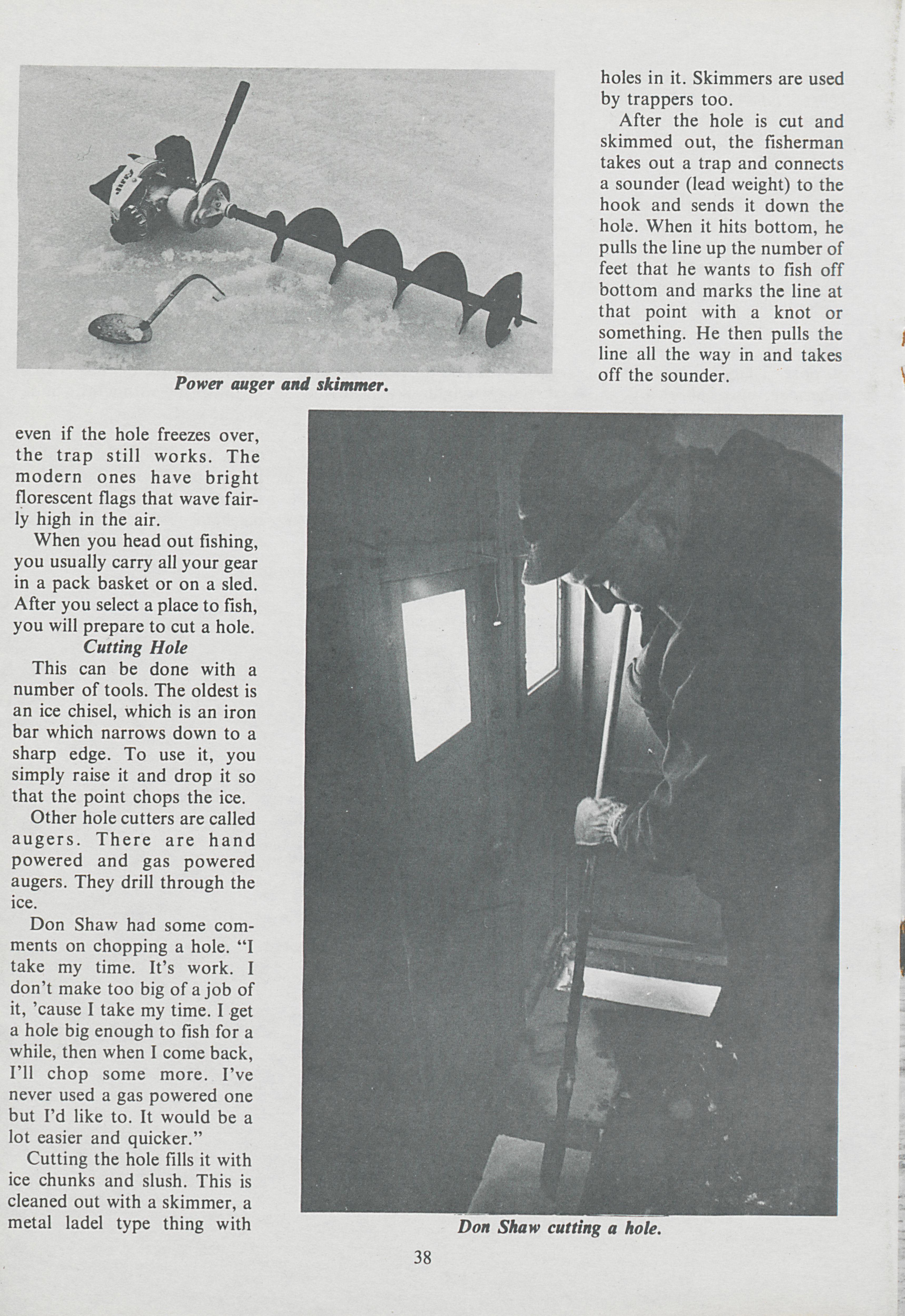 In order to understand the art of ice fishing, Steve Bragdon visited Don Shaw and his ice shack. Bragdon documents the work Shaw does in his shack in order to ice fish and the methods he uses.