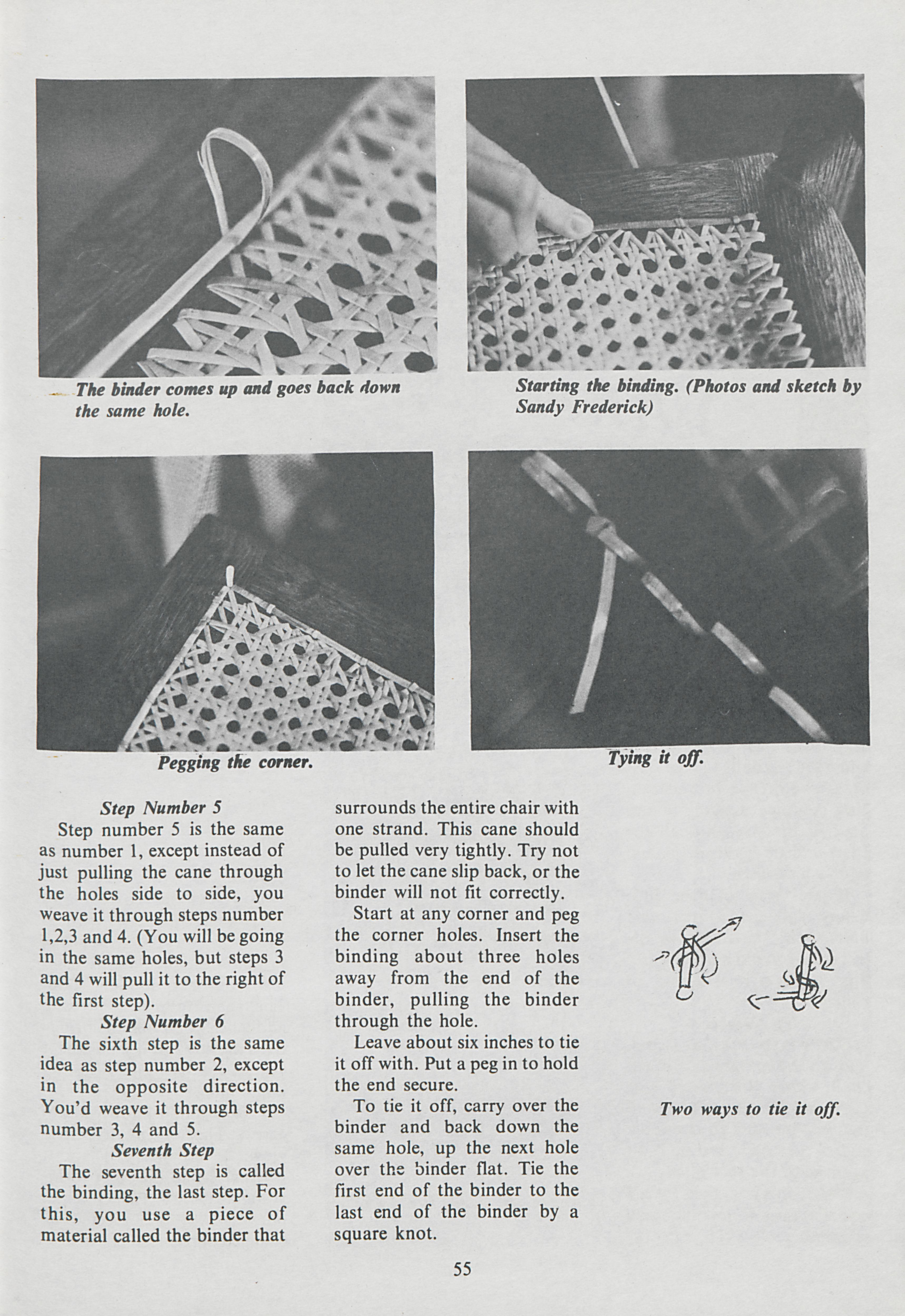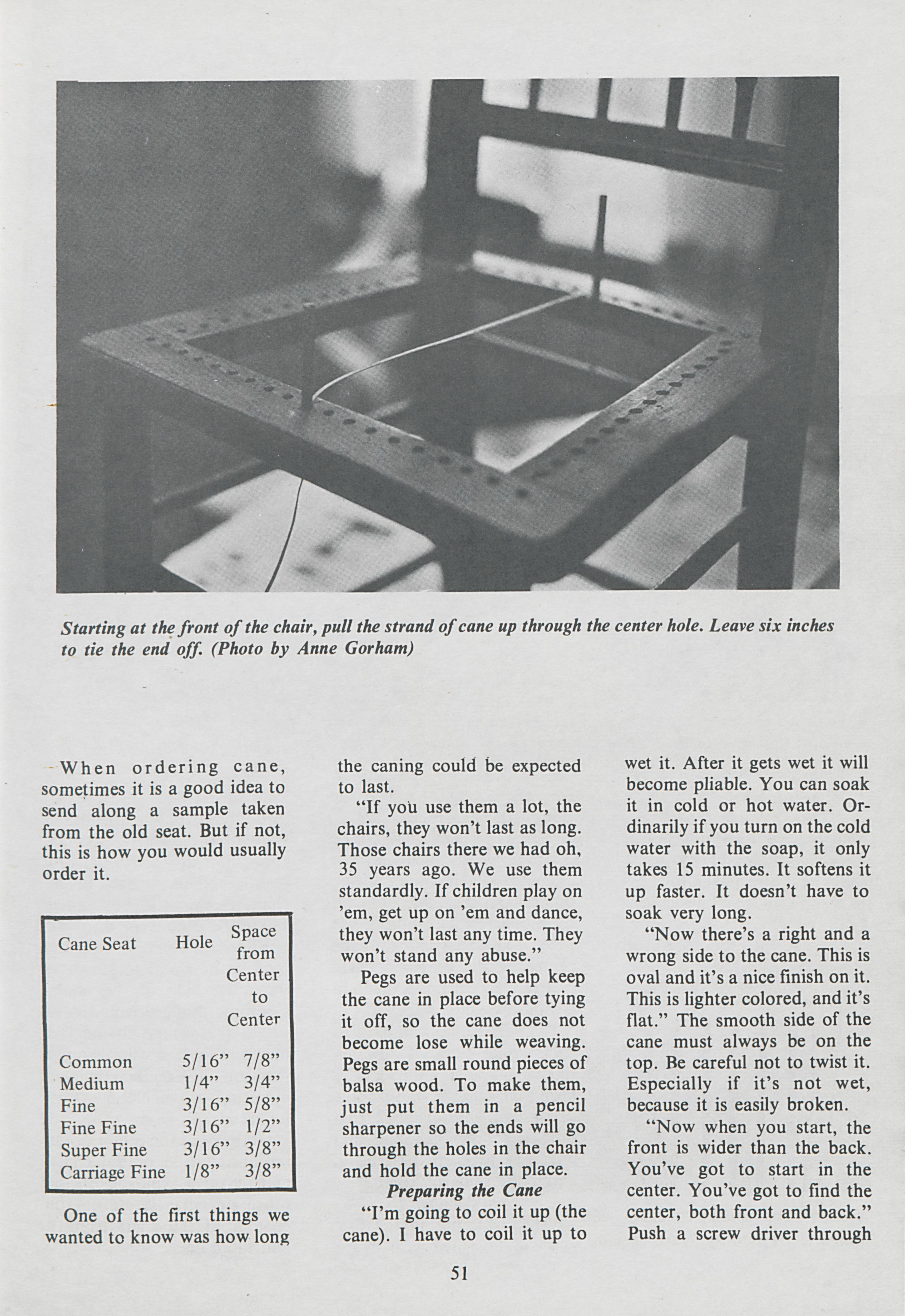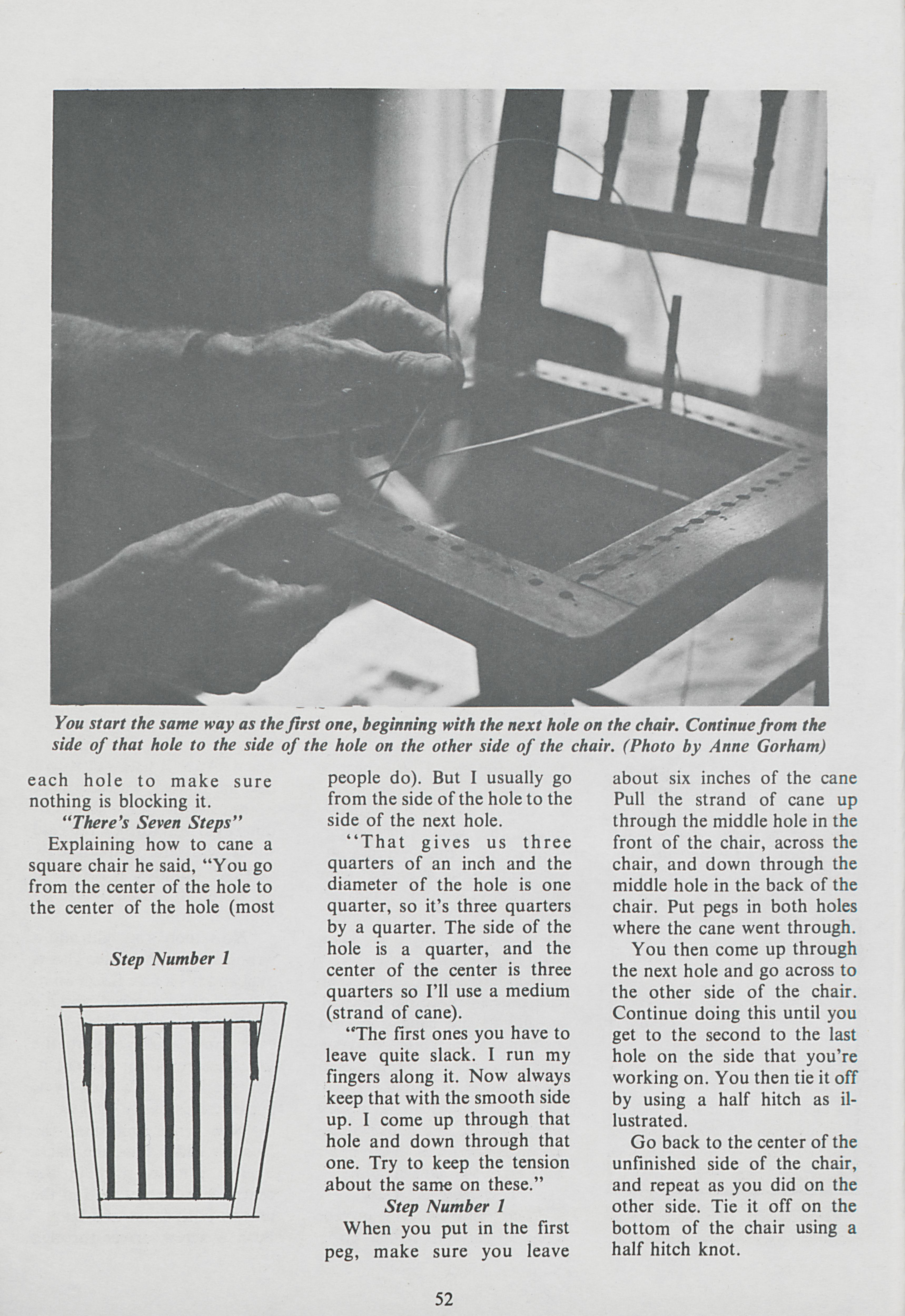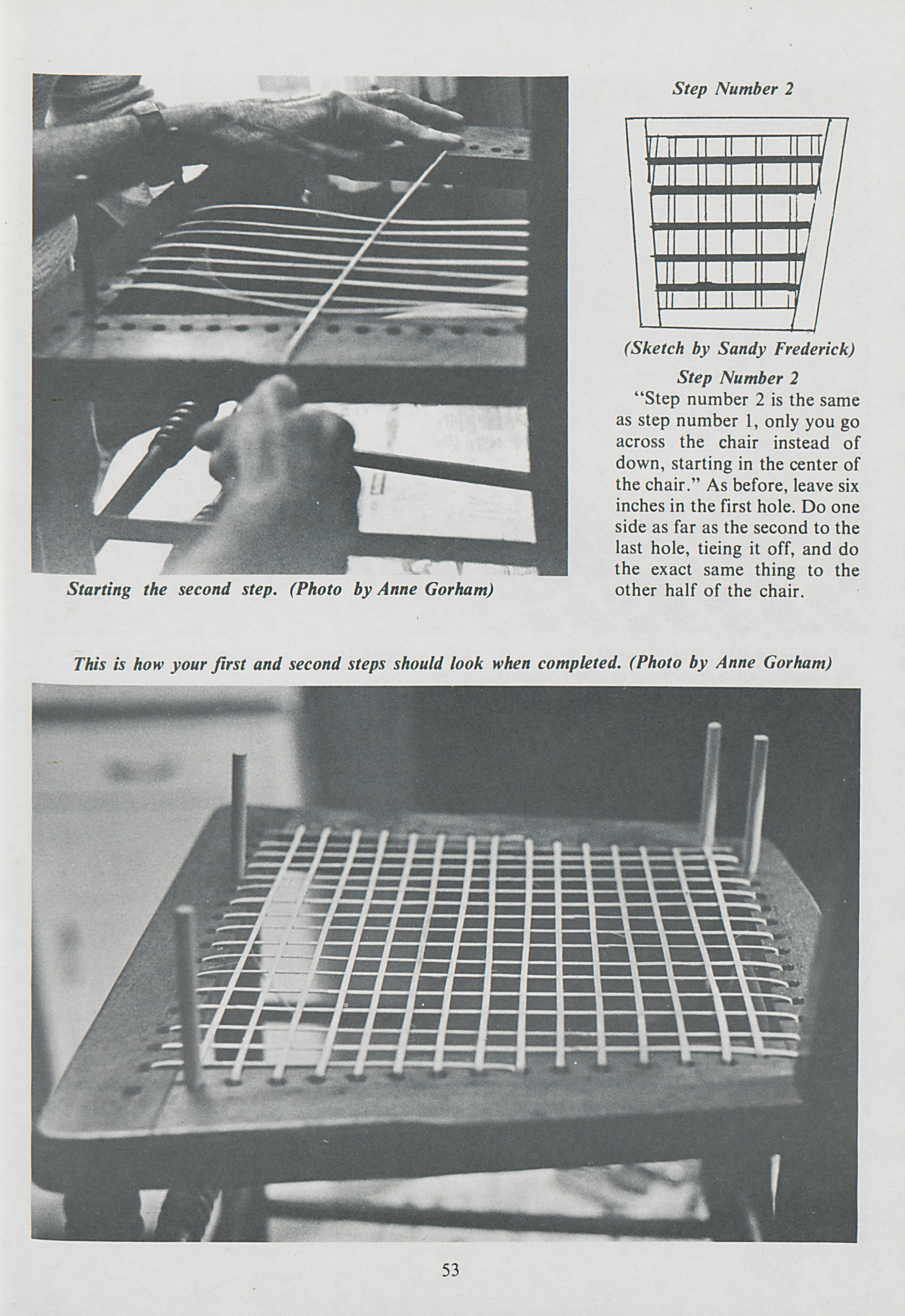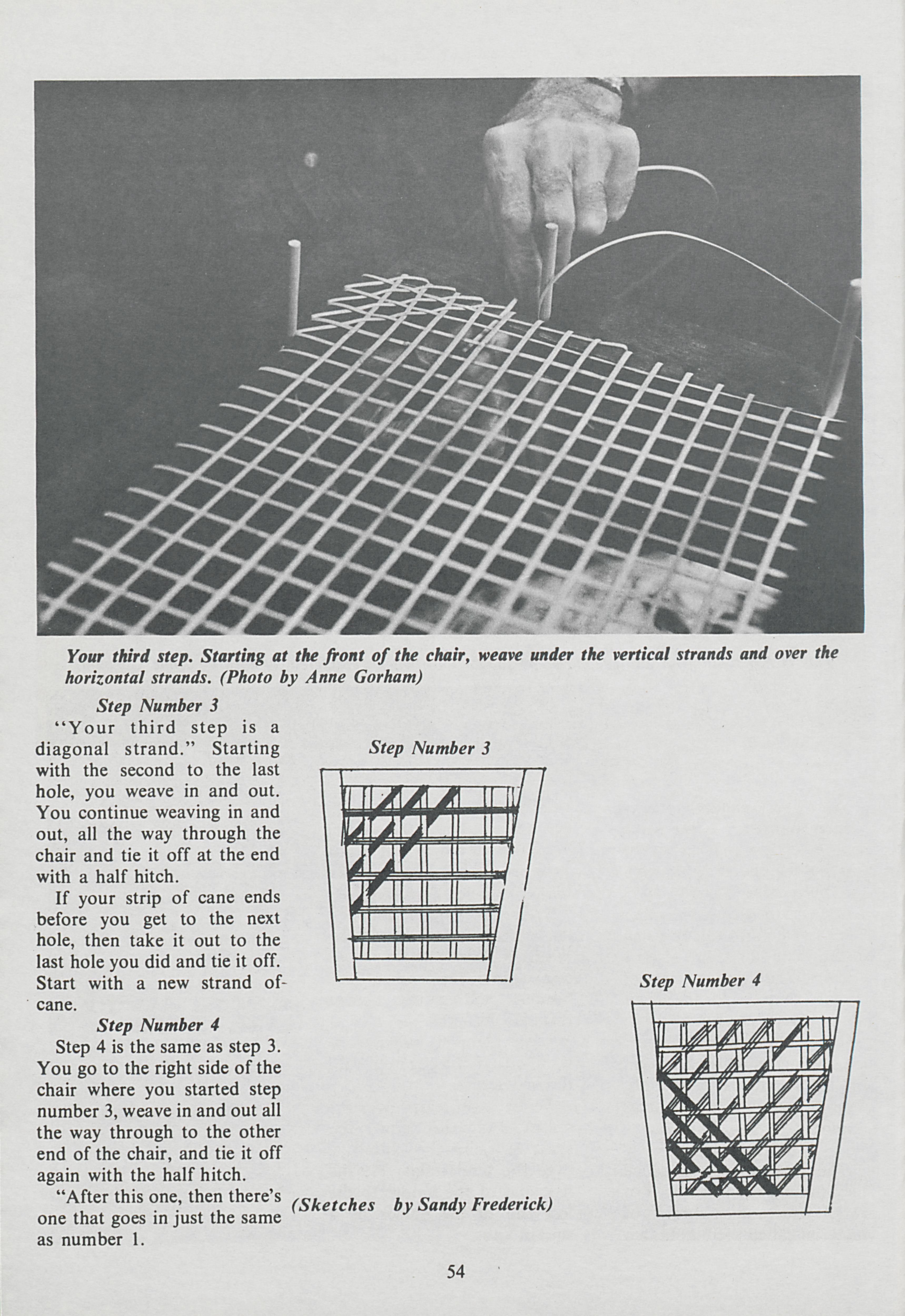 Over the course of four interviews, Launa Cable and other Salt students learned how to cane chairs from Avon Wilcox. Cable documents the work Wilcox does on chairs and the caning process.