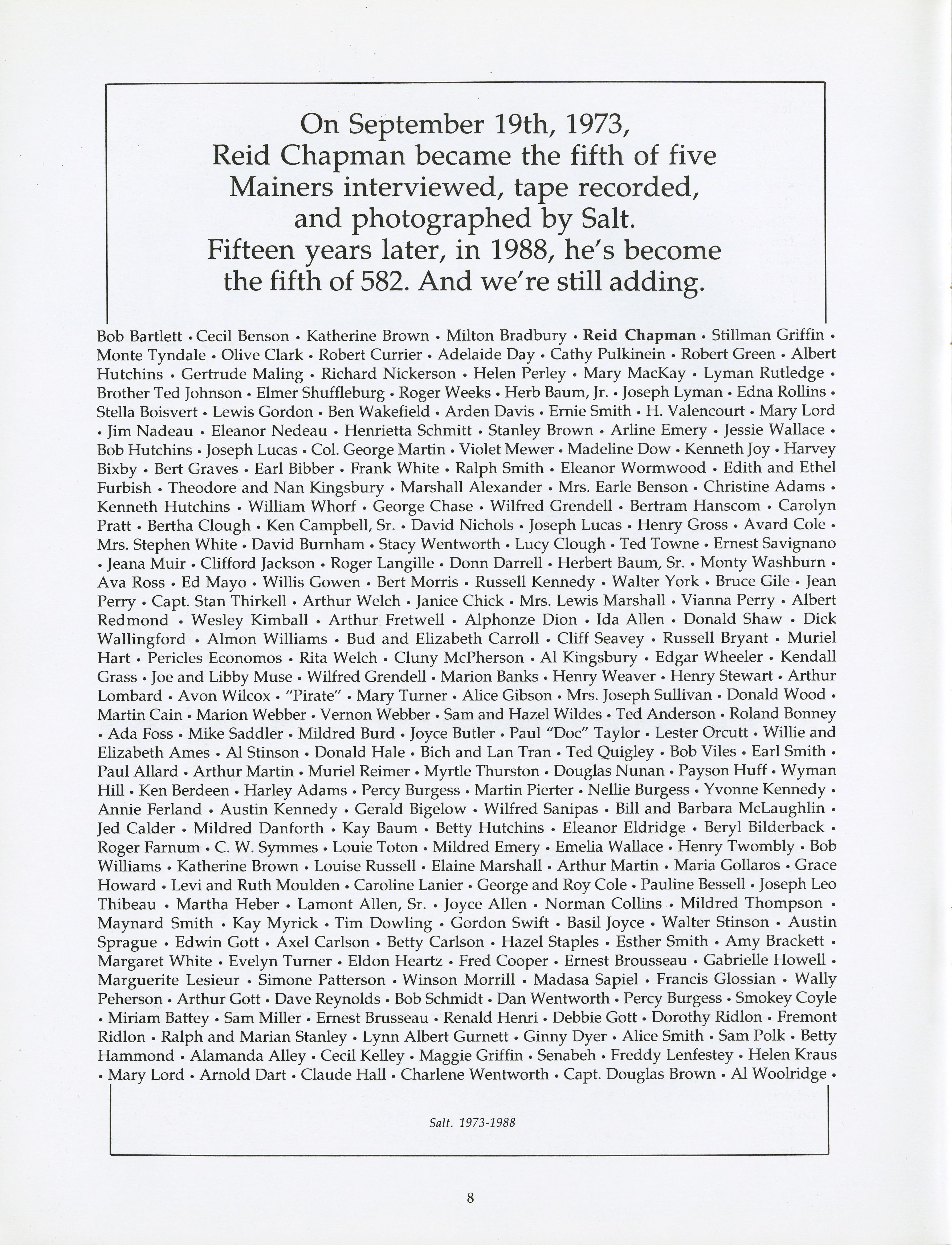 List of individuals who have been interviewed, recorded, and photographer by Salt since the 70s.