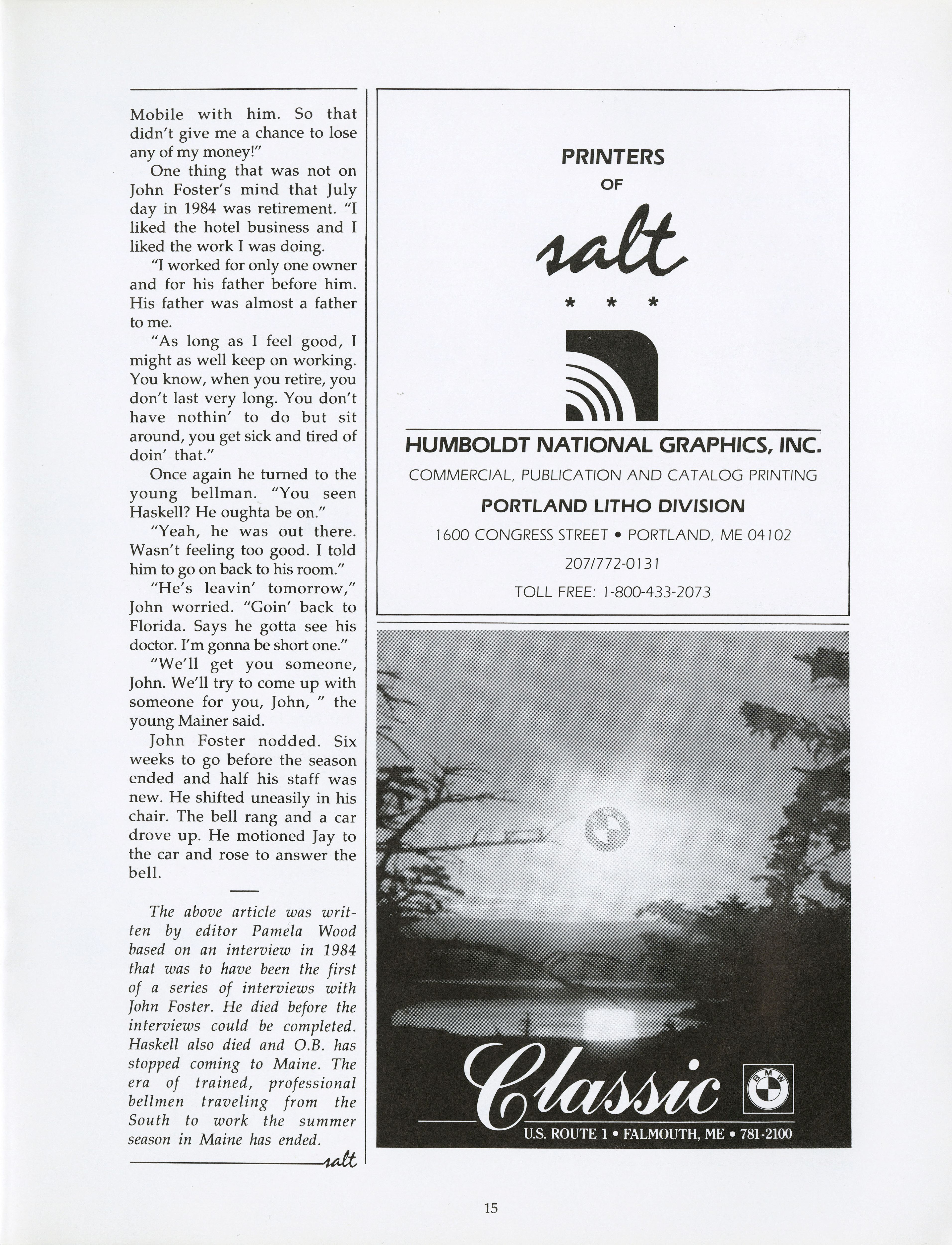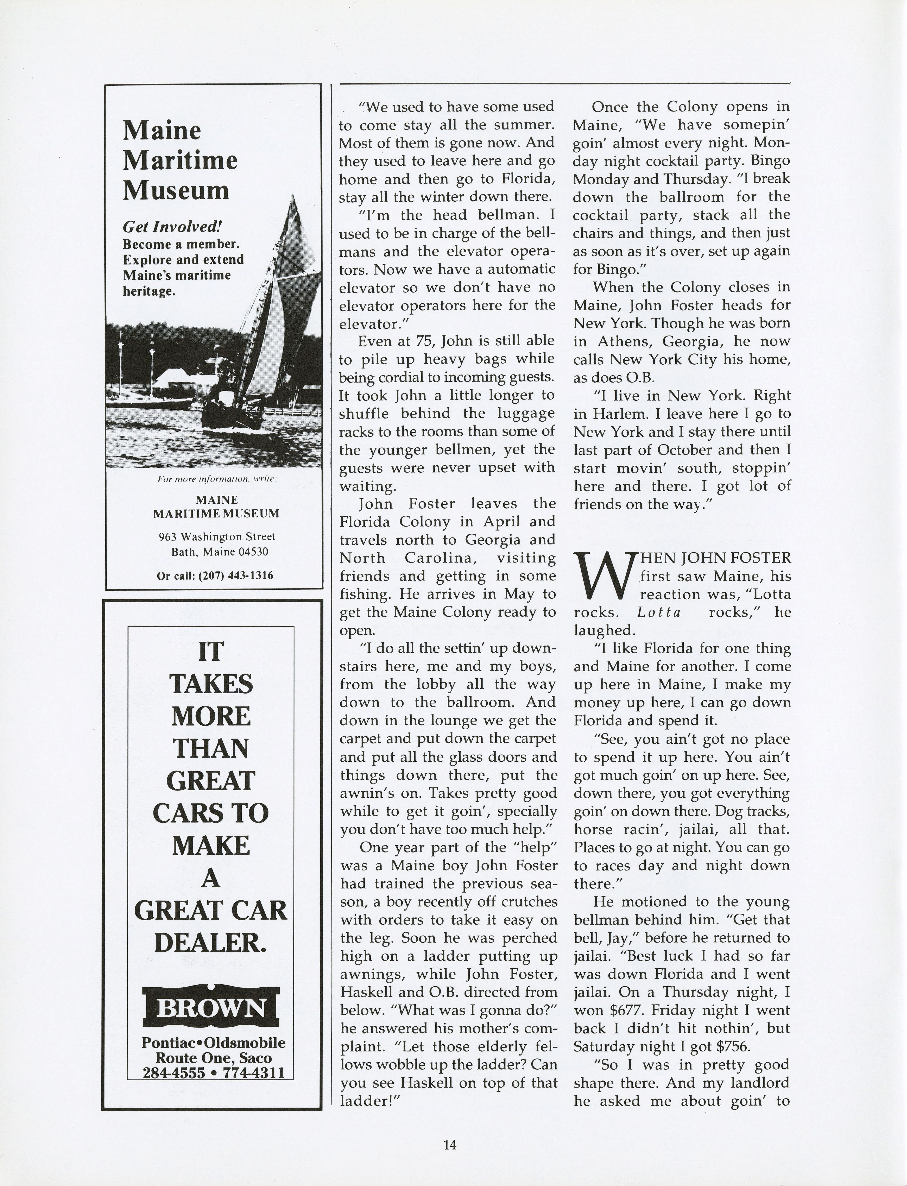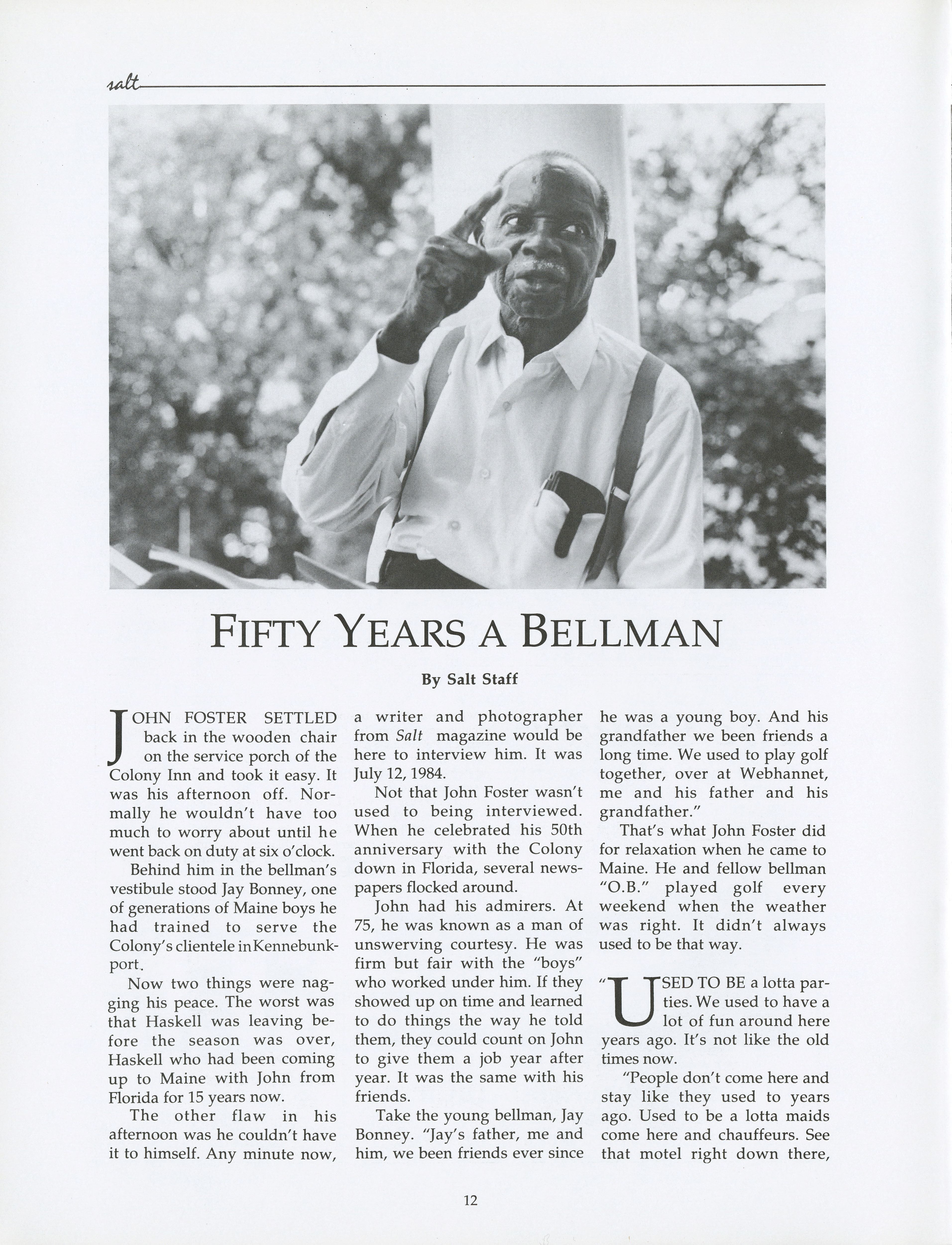For half a century, John Foster has been a bellman. Foster recounts a time when trained bellmen would come up from the South to work the summer season in Kennebunkport.