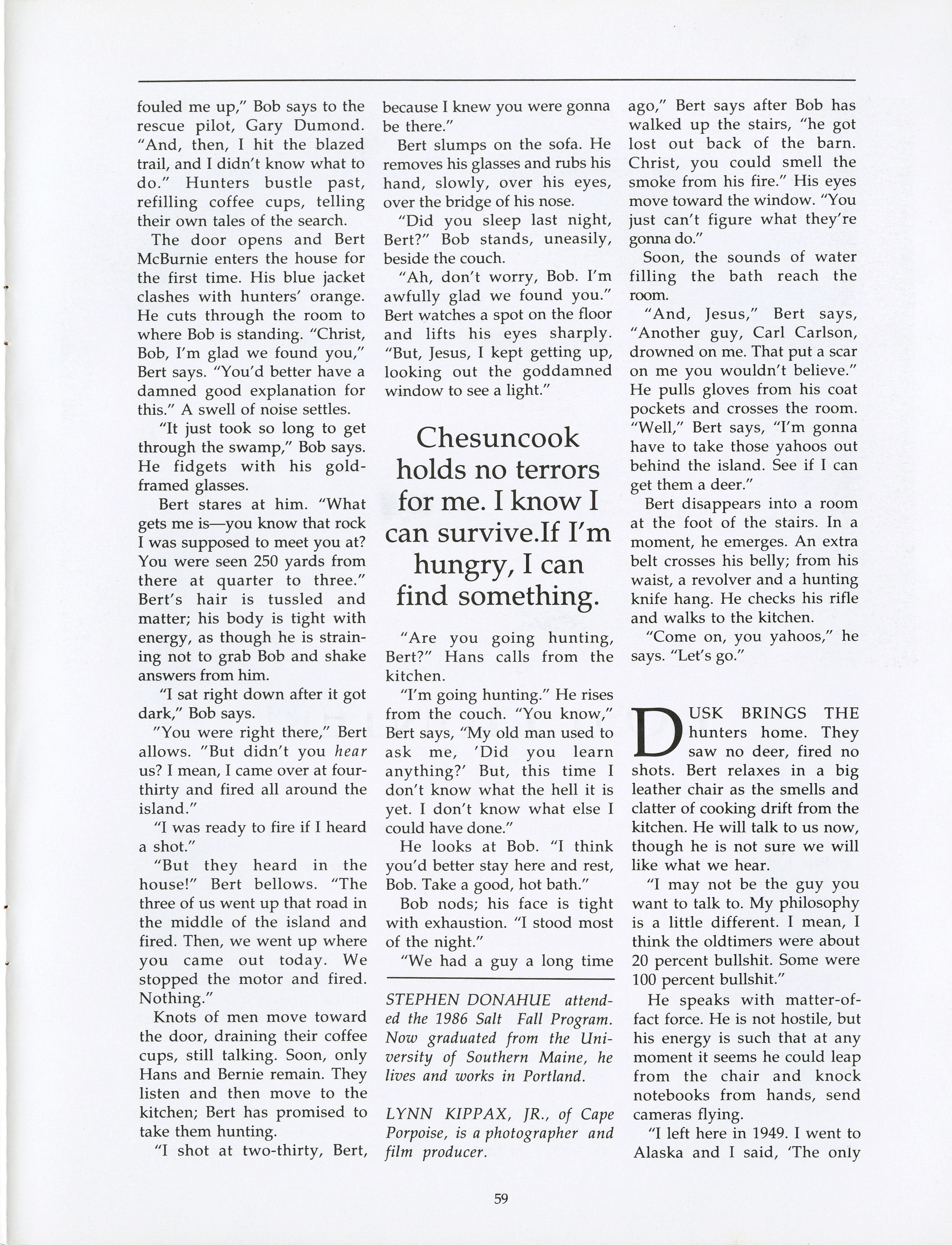 After joining Bert McBurnie into the wilderness at Chesuncook Lake to look for a lost hunter, Salt students speak to the hunter after he is found.