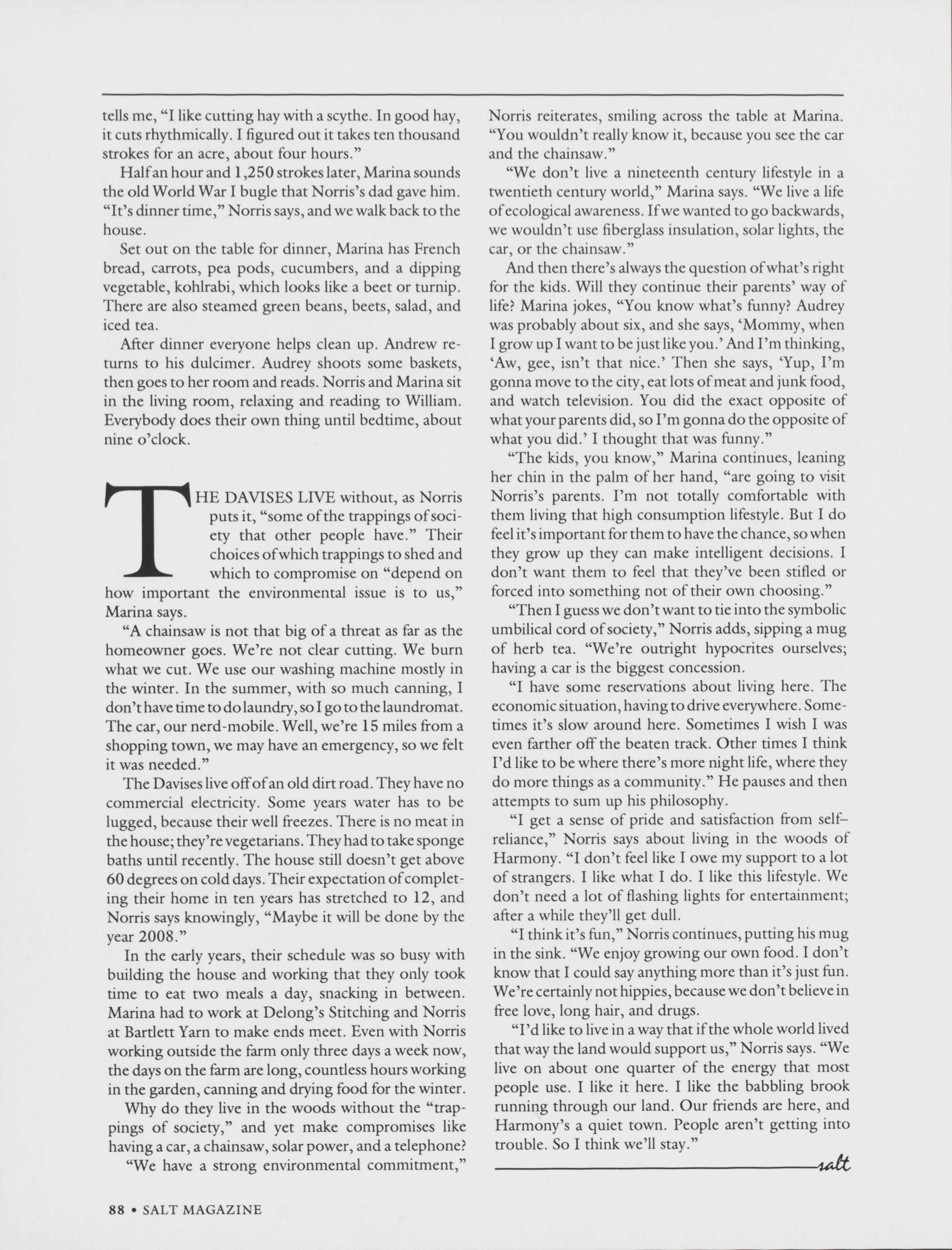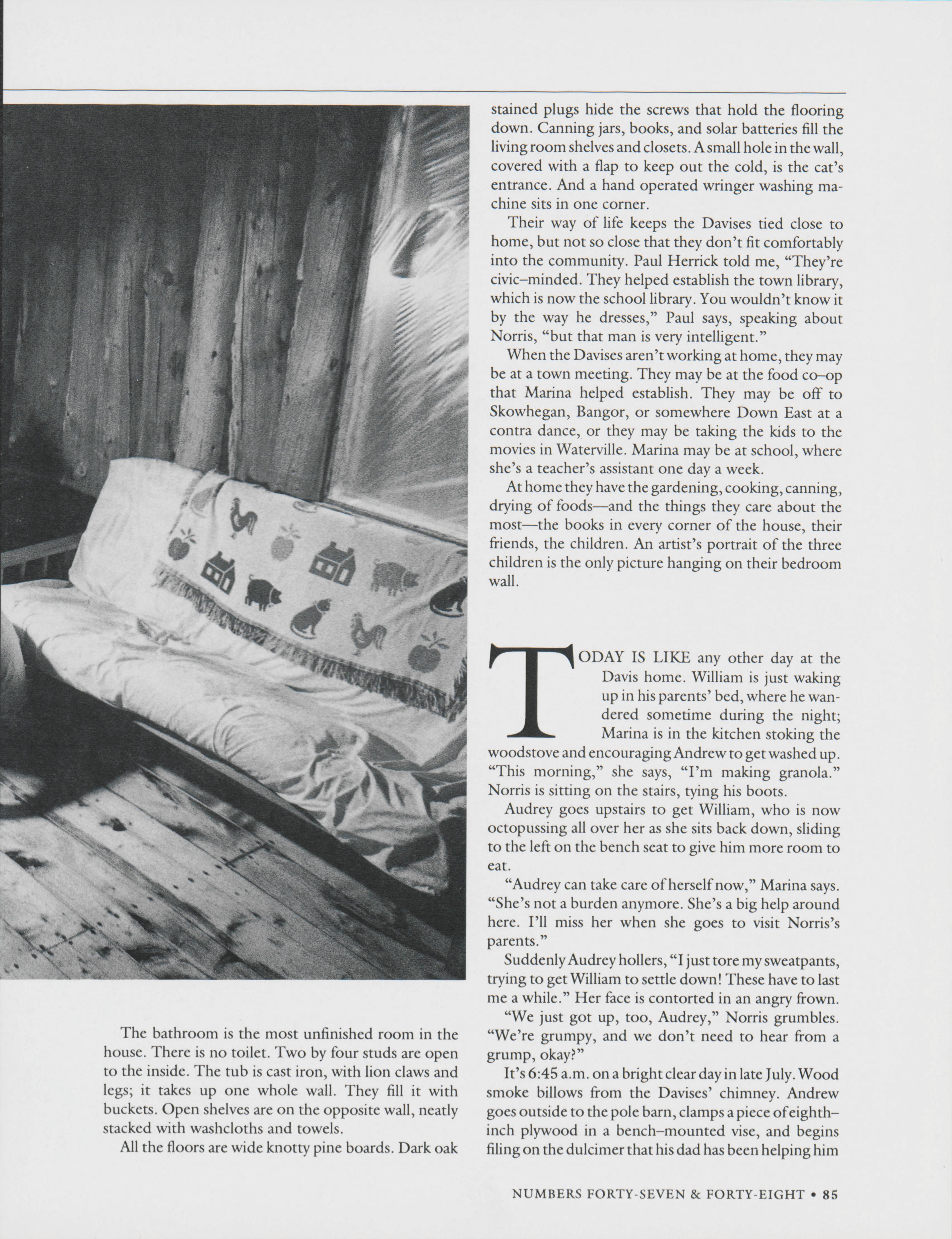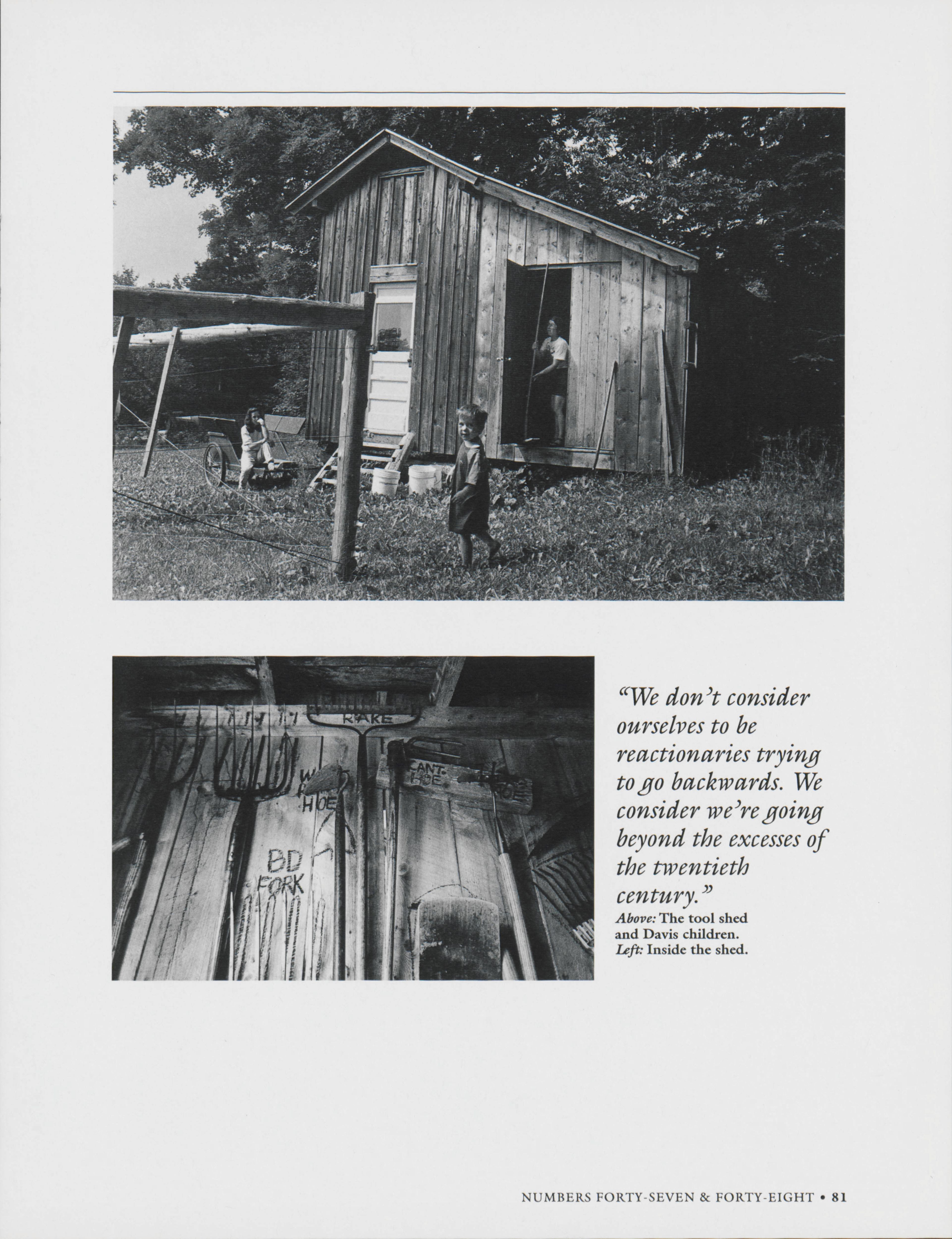 Charles Reitze documents the history of the Davis Family. Reitze explores how the family attempts to be self-sufficient and as independent as American society allows.