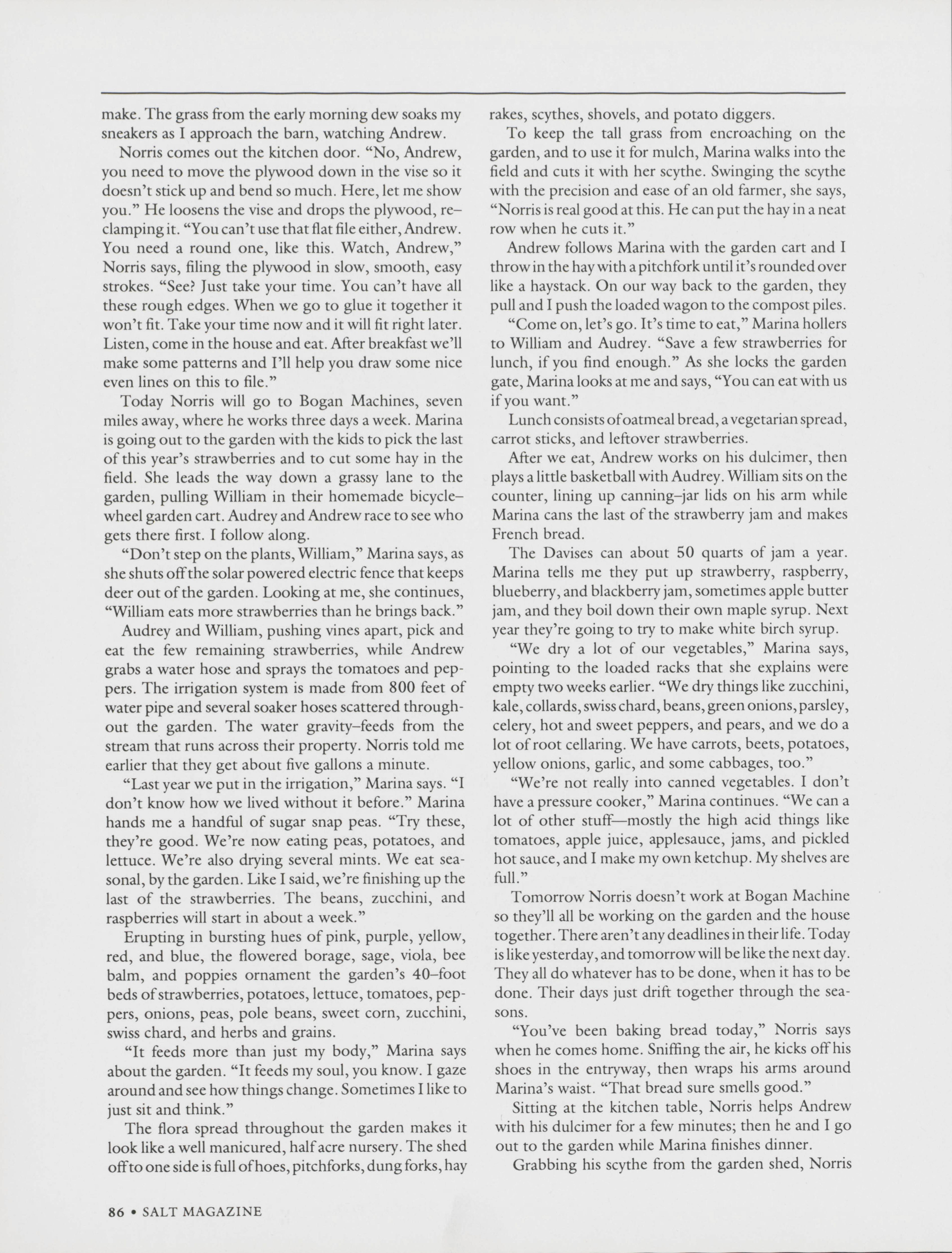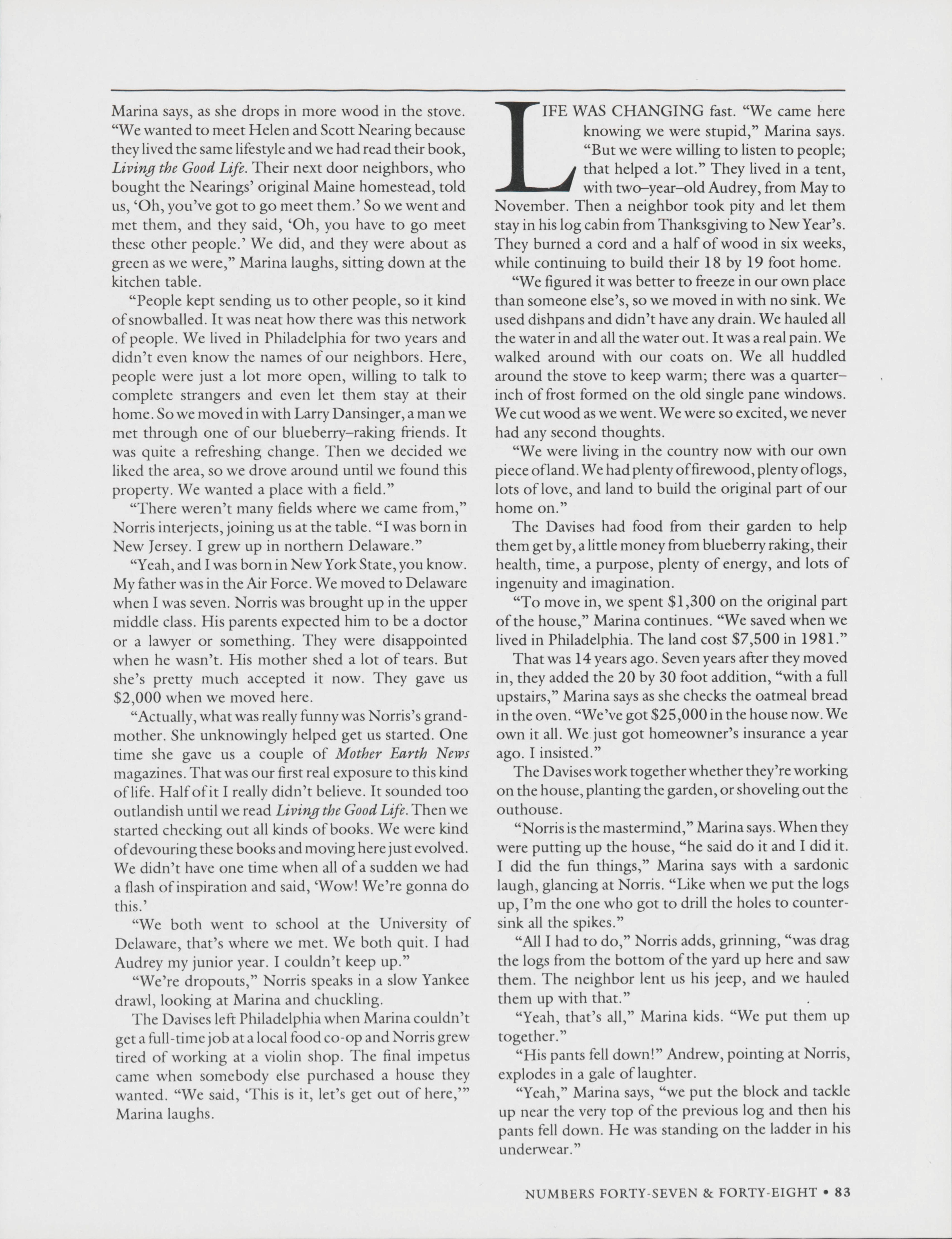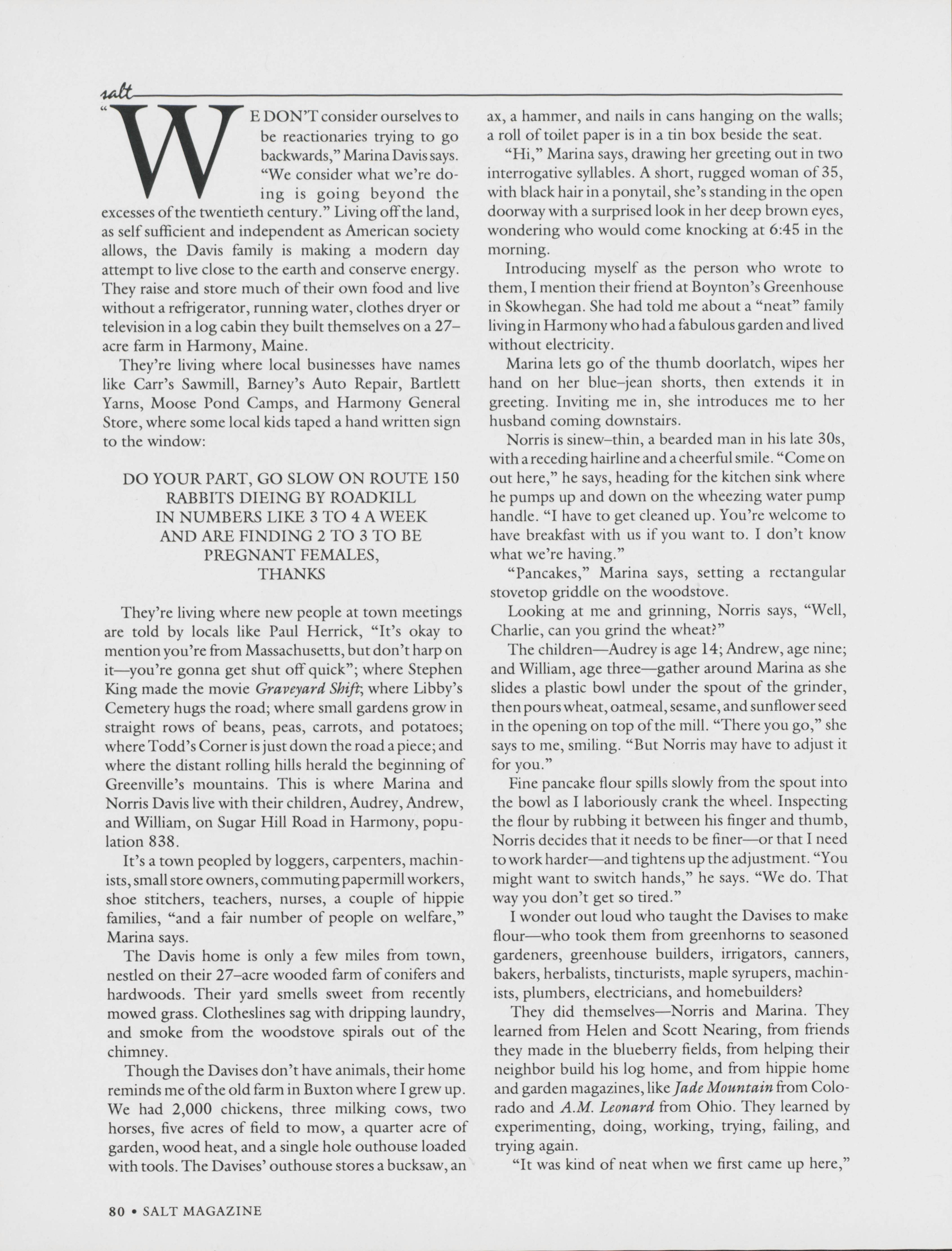 Charles Reitze documents the history of the Davis Family. Reitze explores how the family attempts to be self-sufficient and as independent as American society allows.