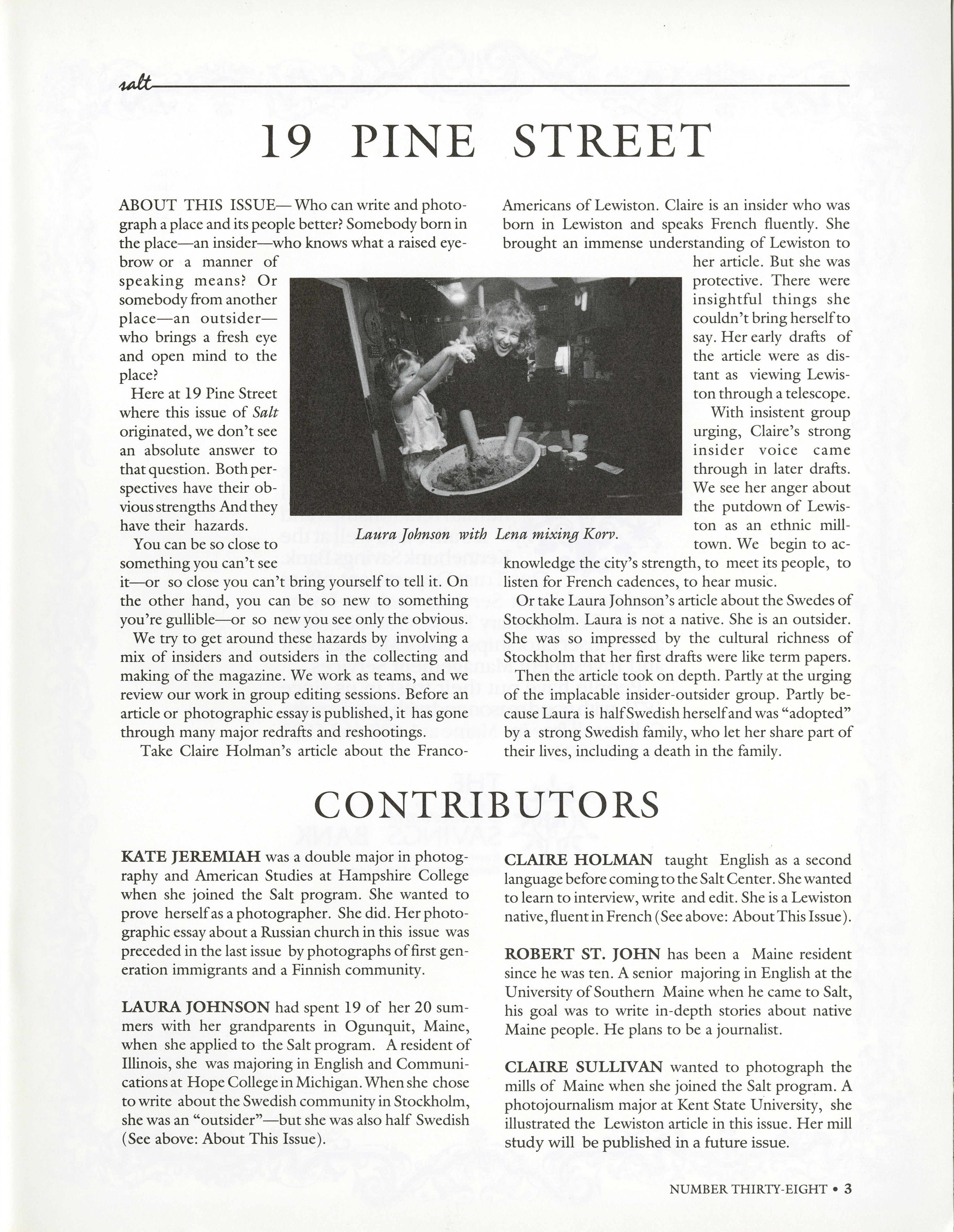 Bios of the contributors to the April 1990 Salt Magazine, with information on this issue.