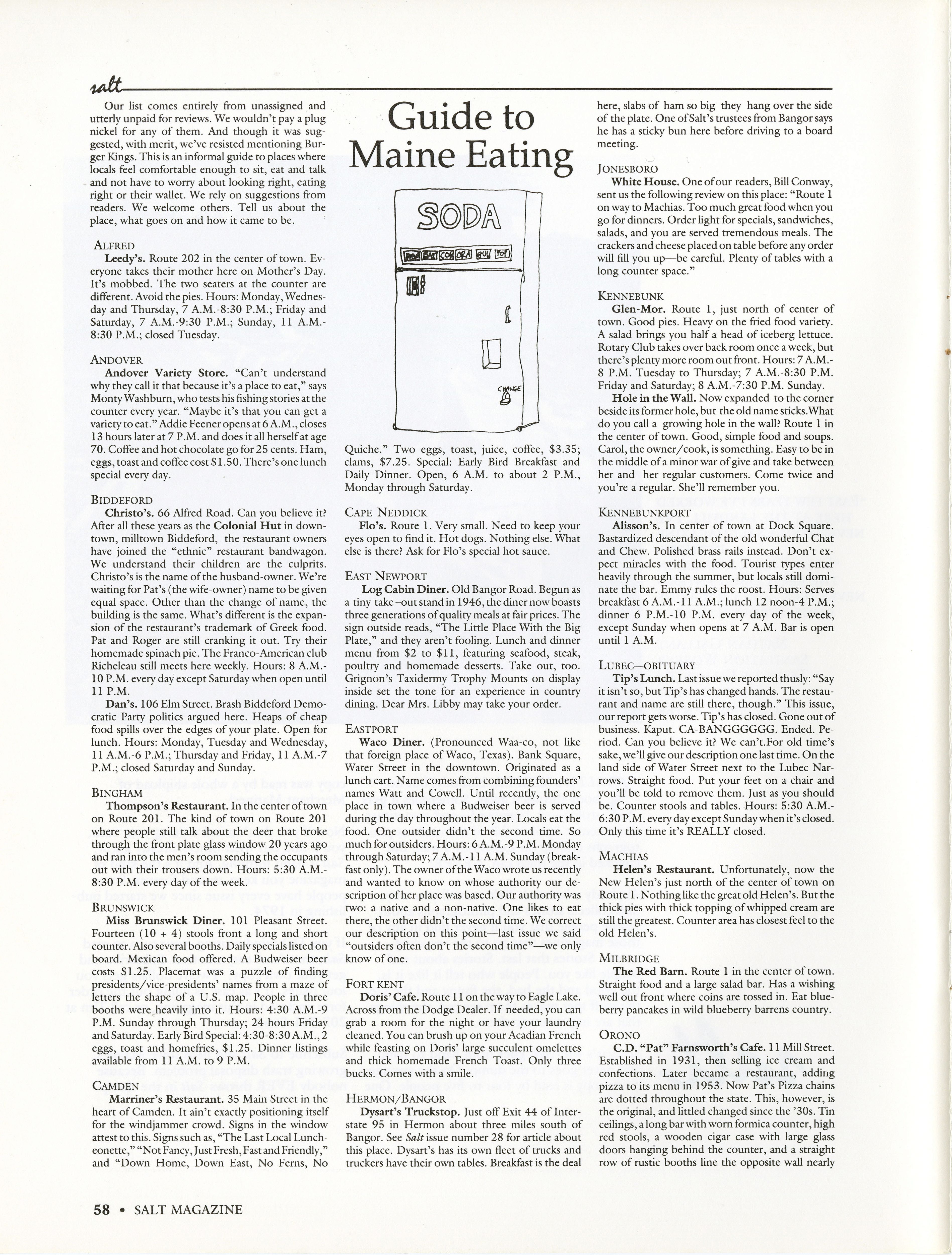 Guide to help people find important places to eat in Maine.