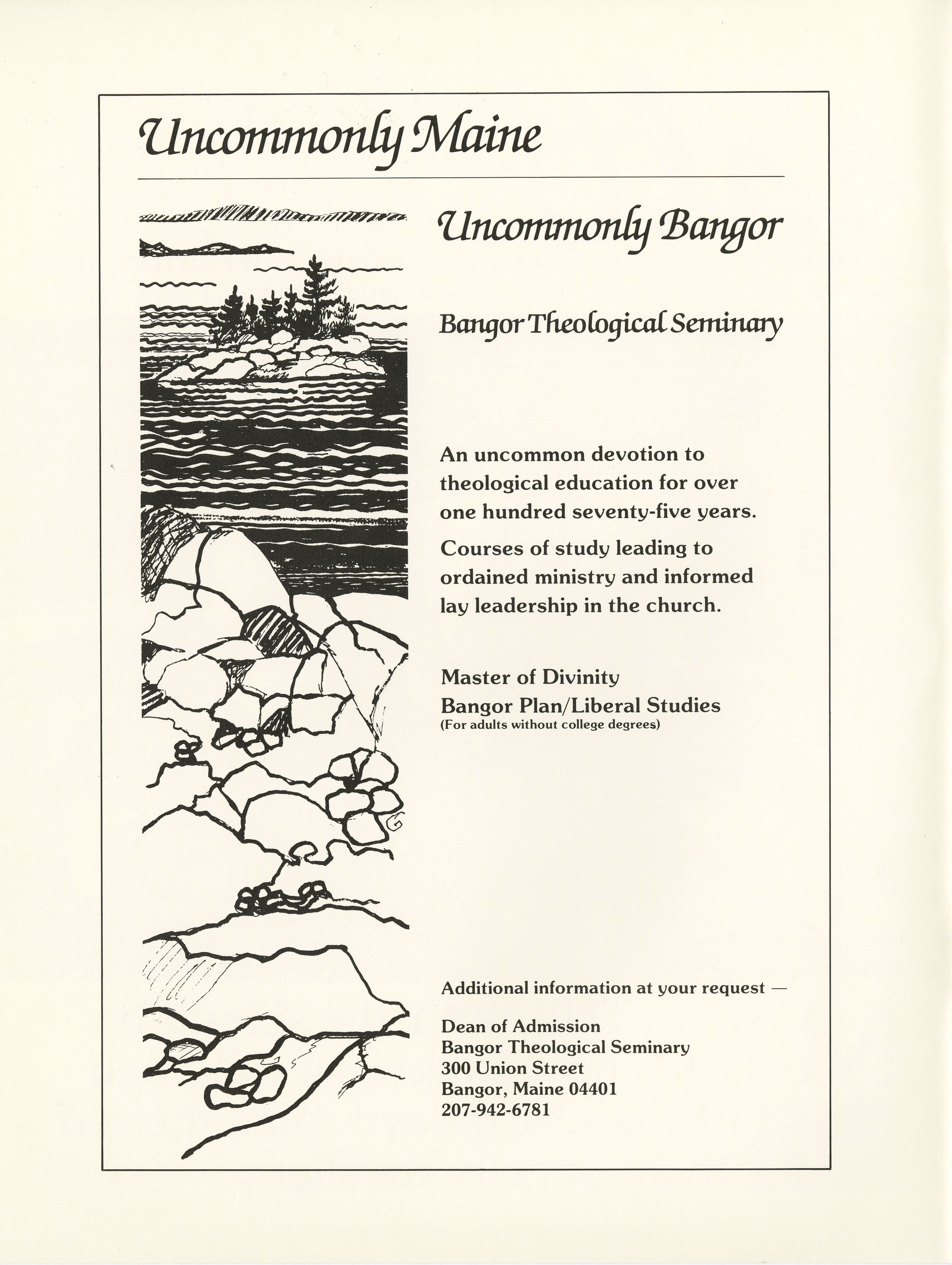 Inside front cover for the July 1990 Salt Magazine, with advertisement for the Bangor Theological Seminary.