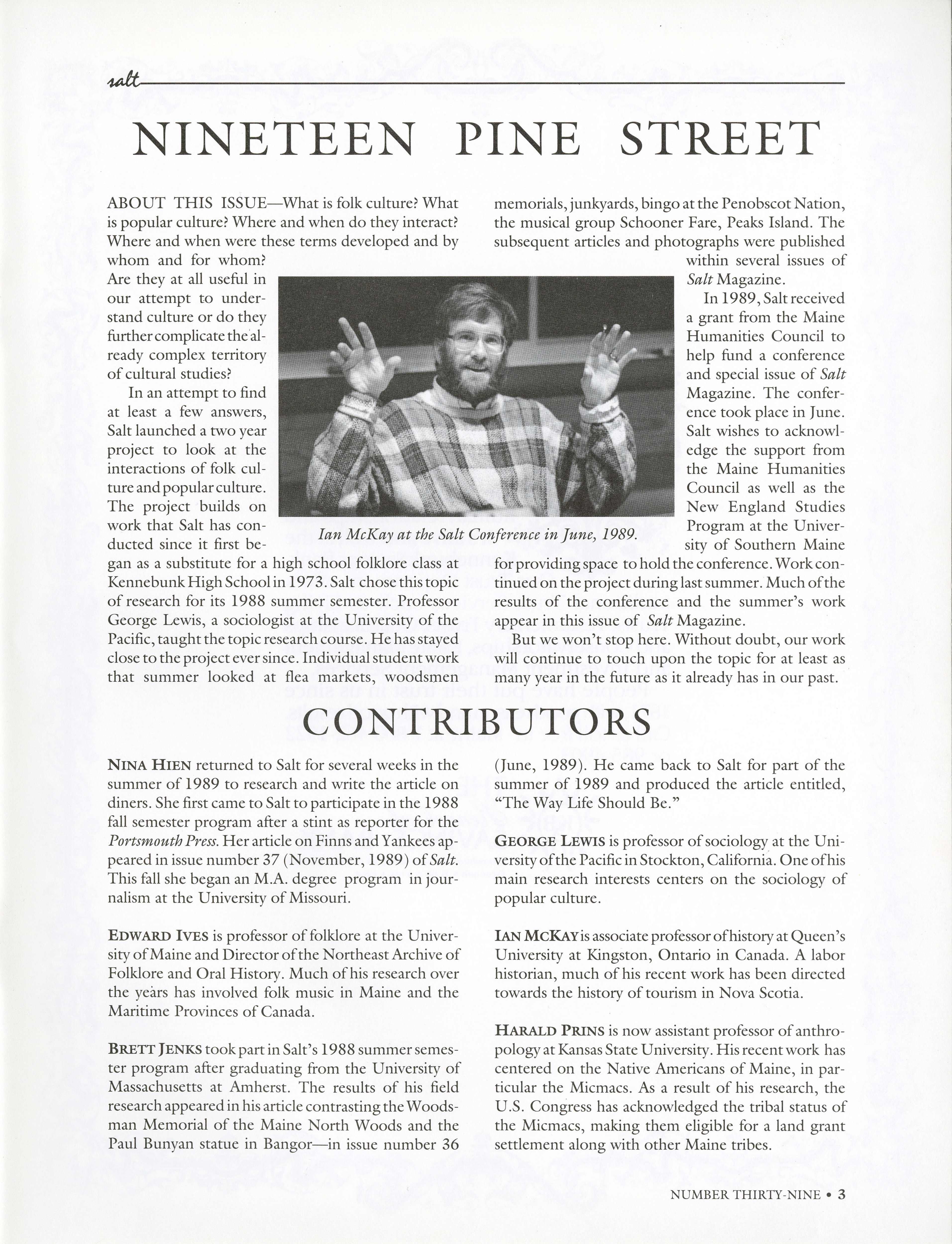 Bios of the contributors to the April 1990 Salt Magazine, with information on this issue.