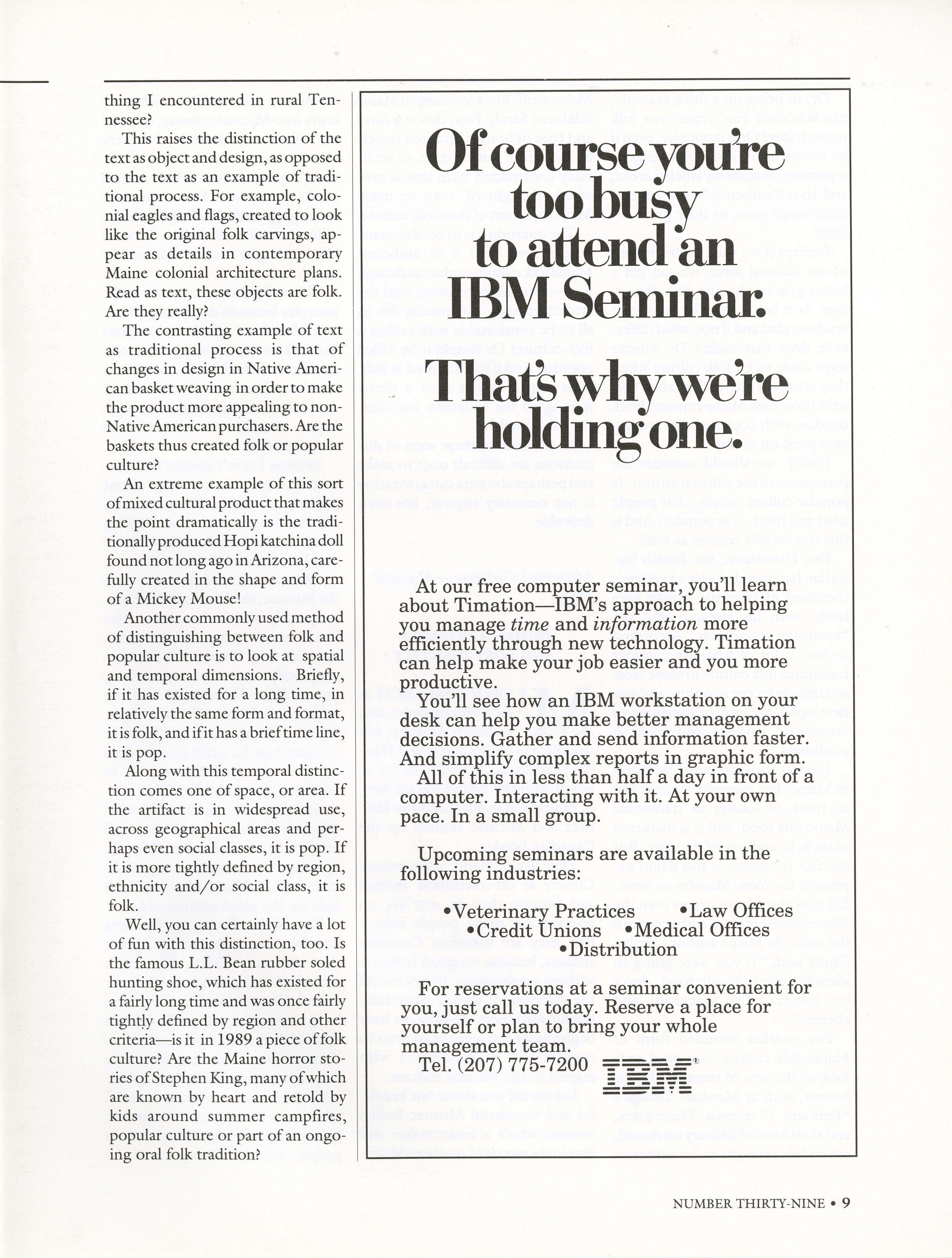Salt invites scholars to a conference to speak about how folk culture and popular culture interact. Salt offers a report on the conference.