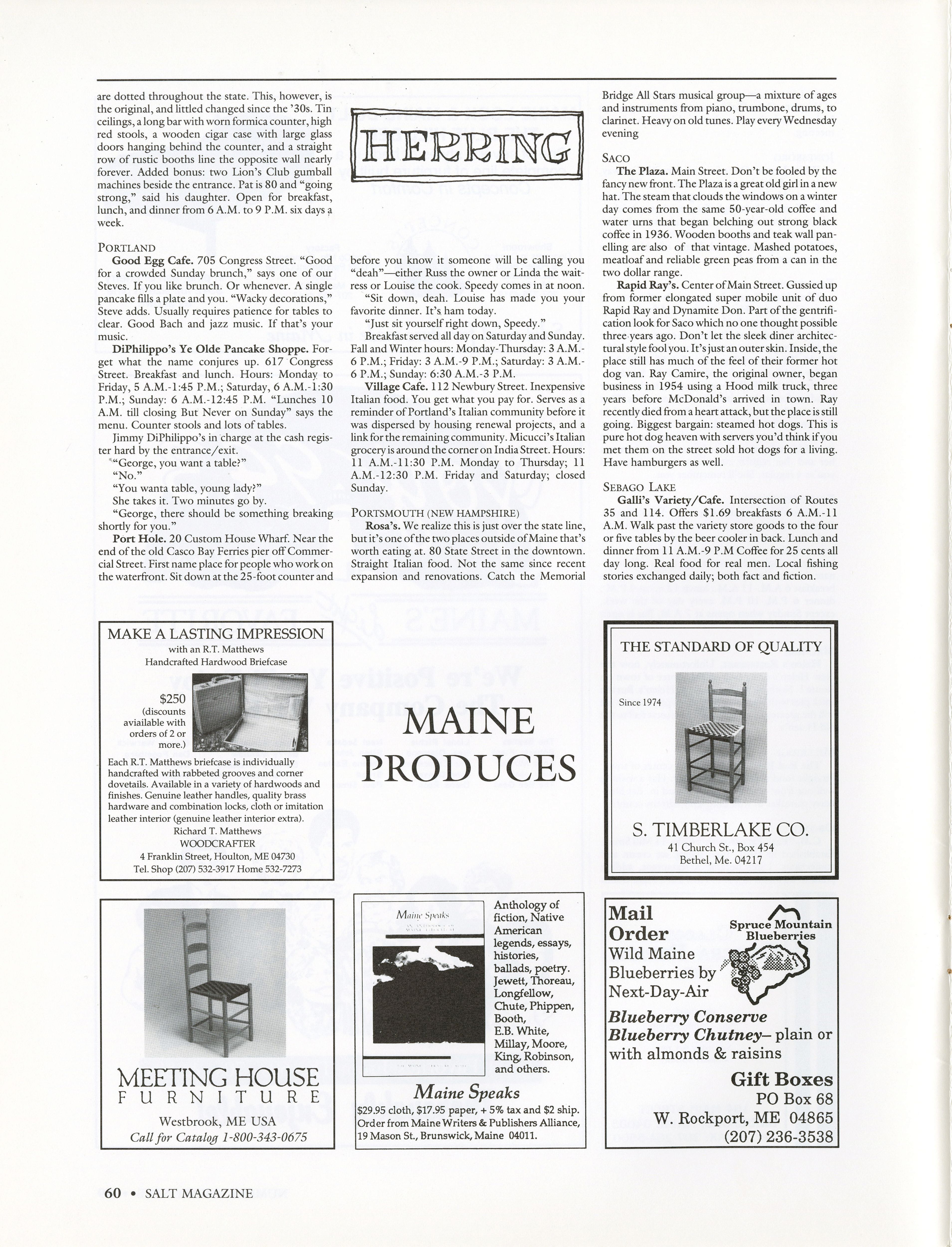 Guide to help people find important places to eat in Maine.