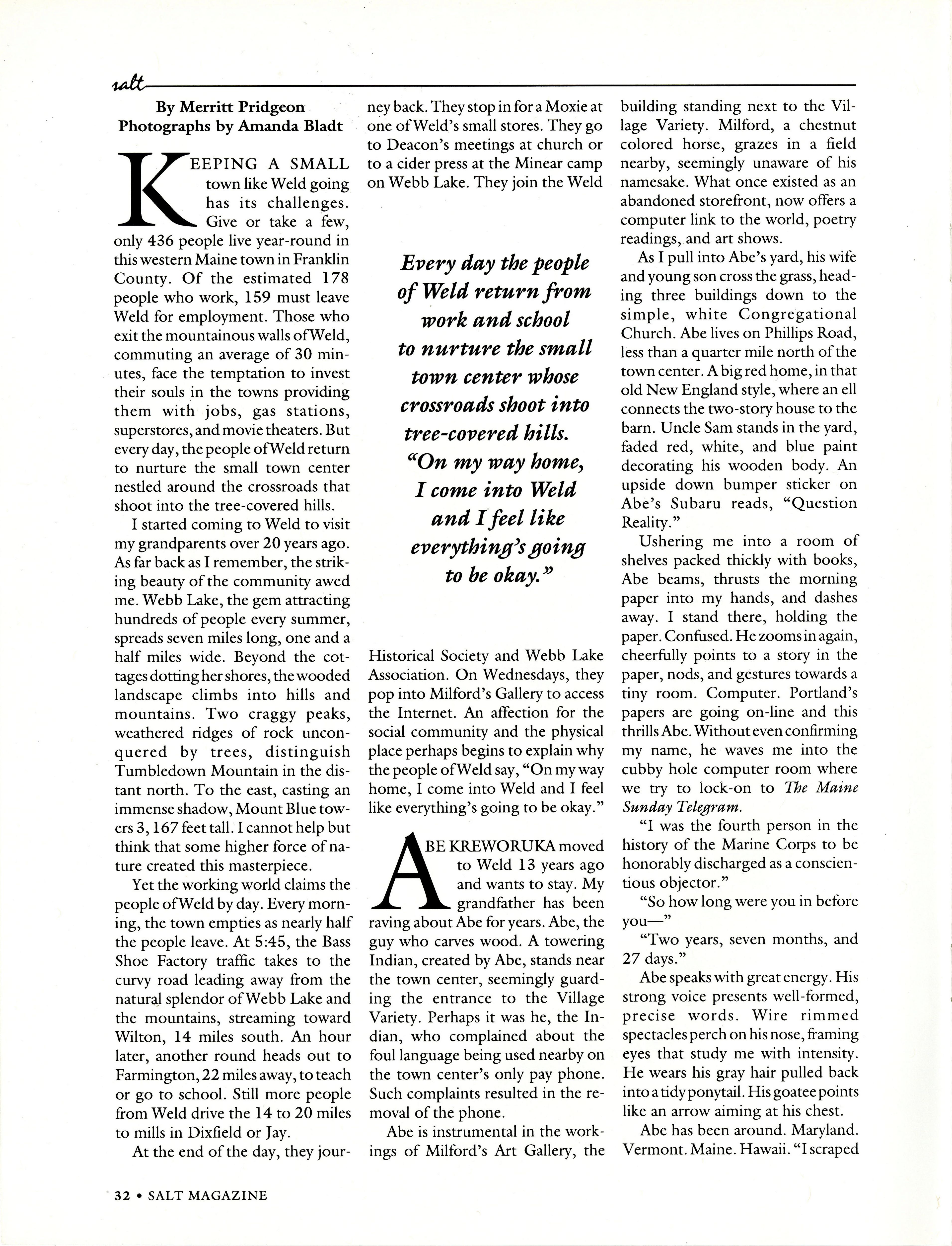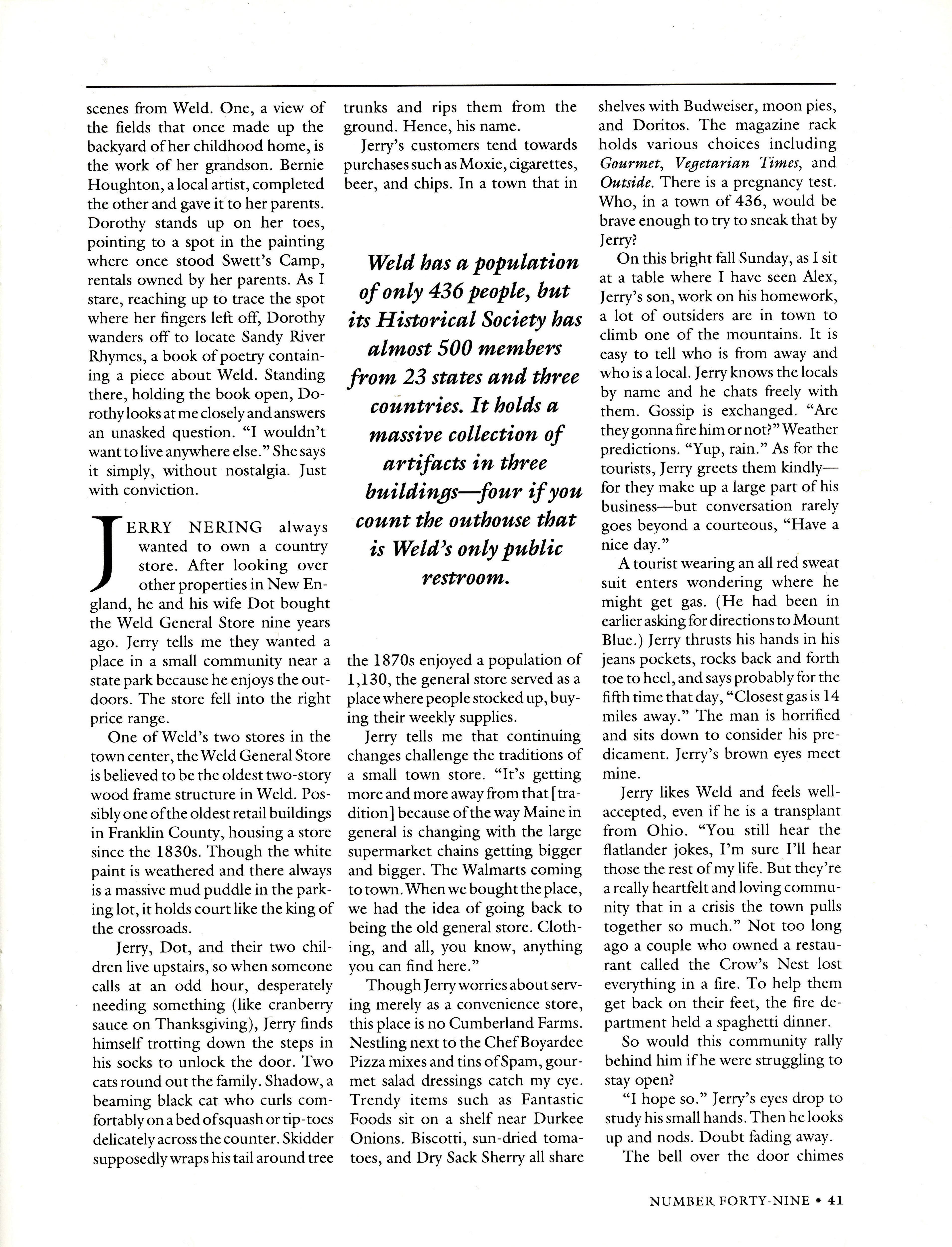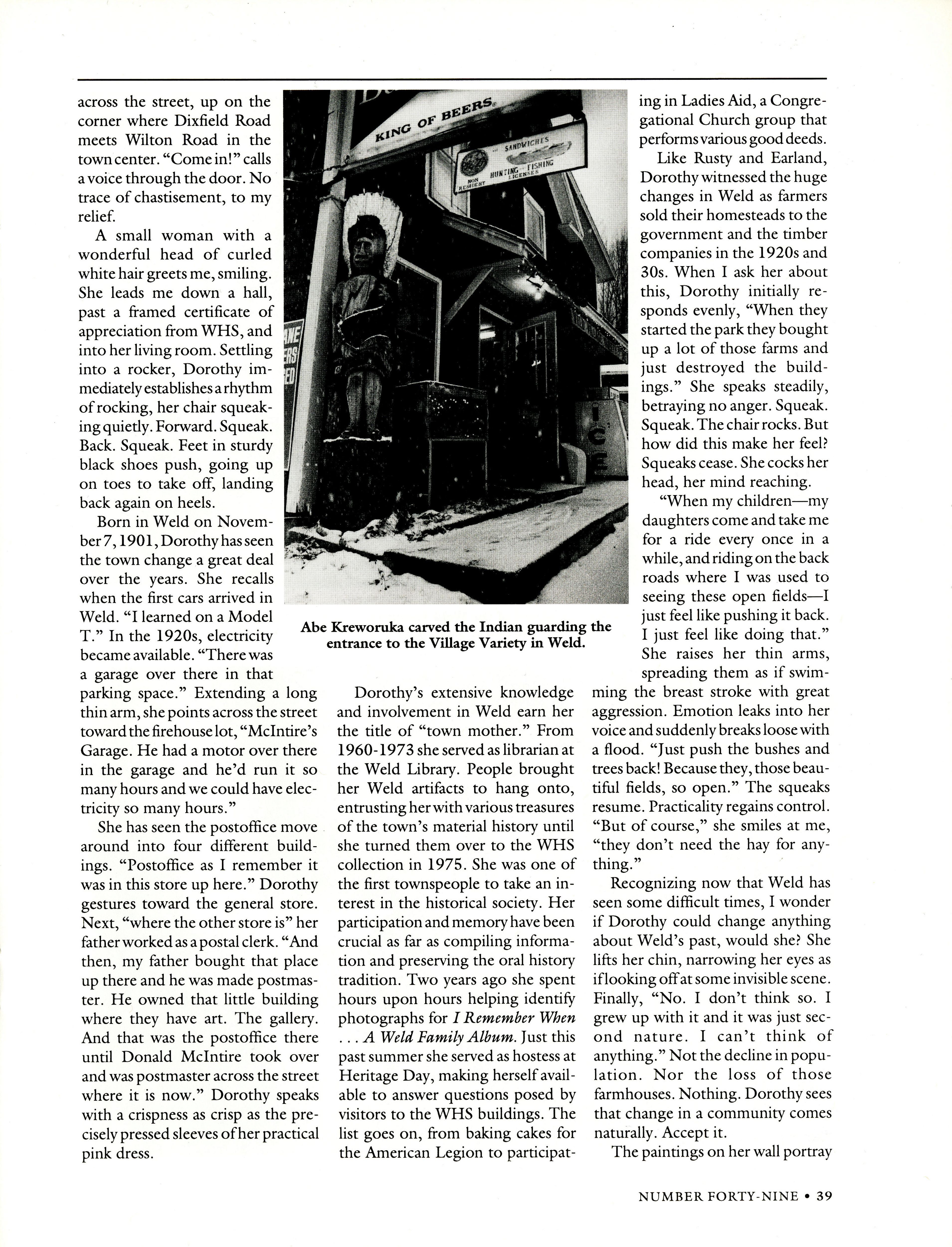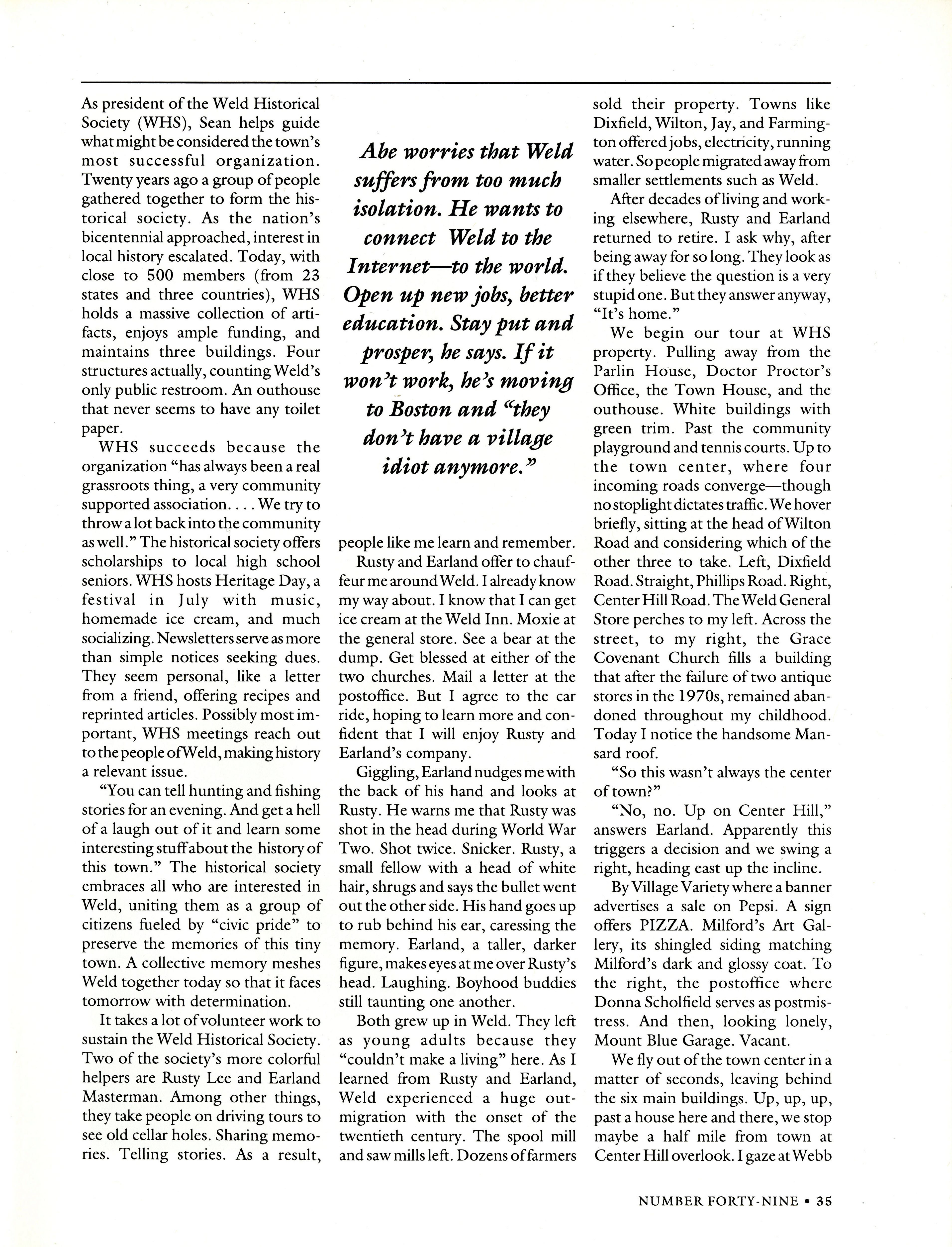 Keeping the local memory of a community alive is important, and as Merritt Pridgeon discovers, in the small town of Weld, their history brings the community closer. Pridgeon discusses the history of the town, importance of the historical society, and tourism.