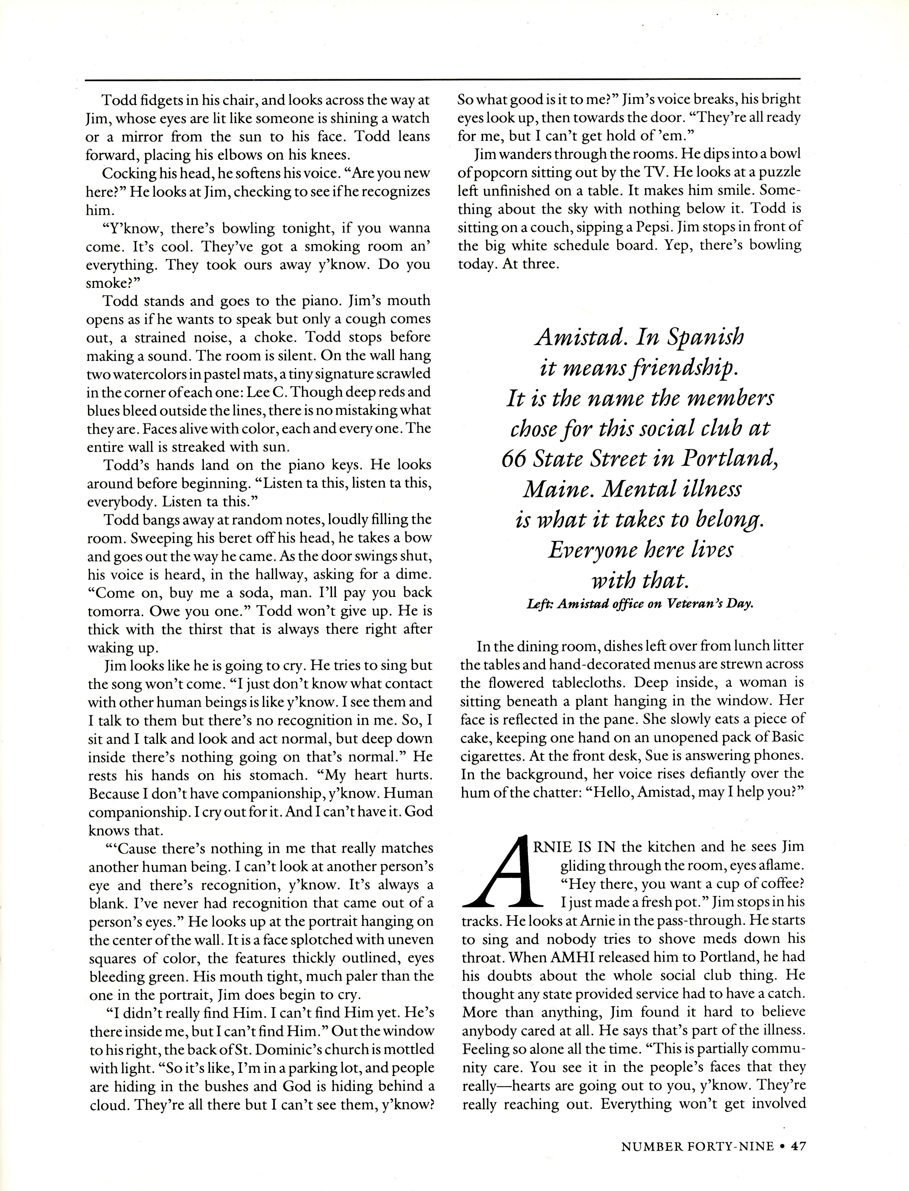 Juniper Lesnik explores how the Amistad social club in Portland offers individuals who suffer from mental health issues a place to convene and socialize.