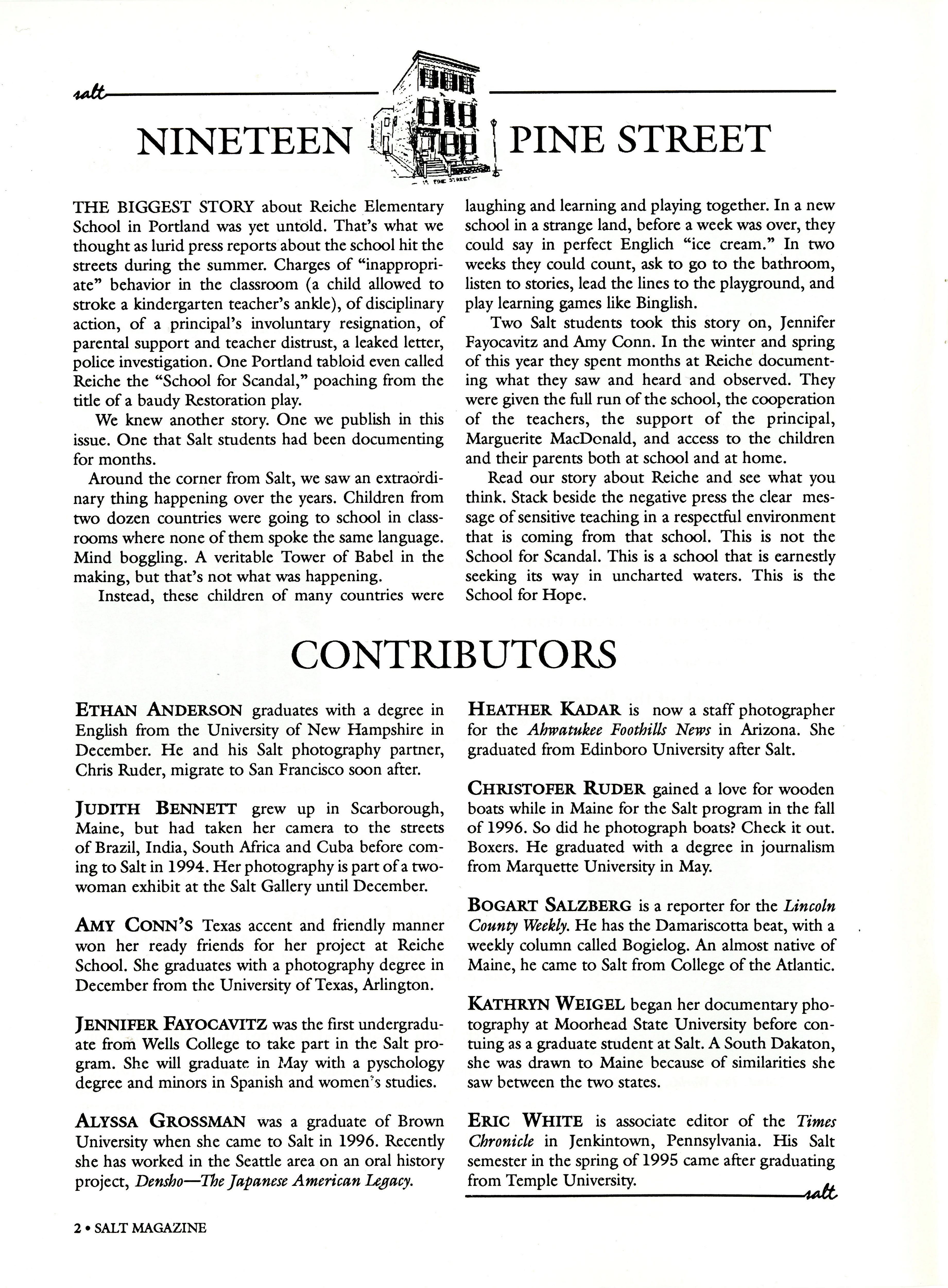 Bios of the contributors to the December 1997 Salt Magazine, with information on this issue.